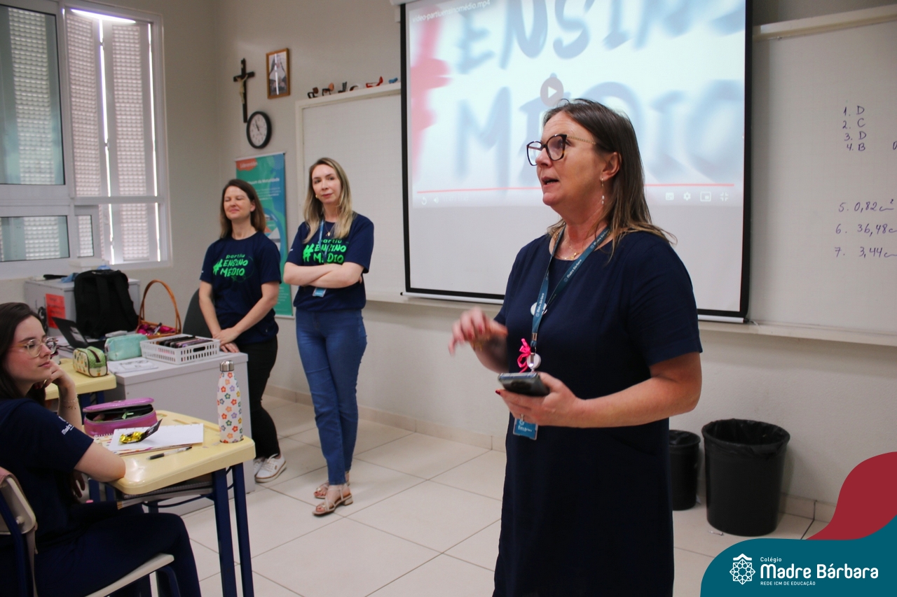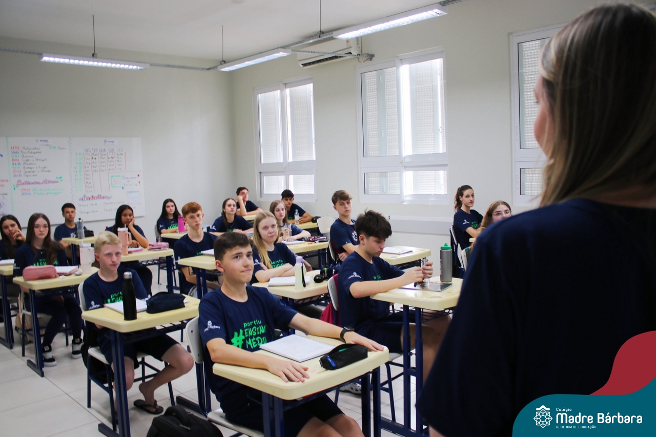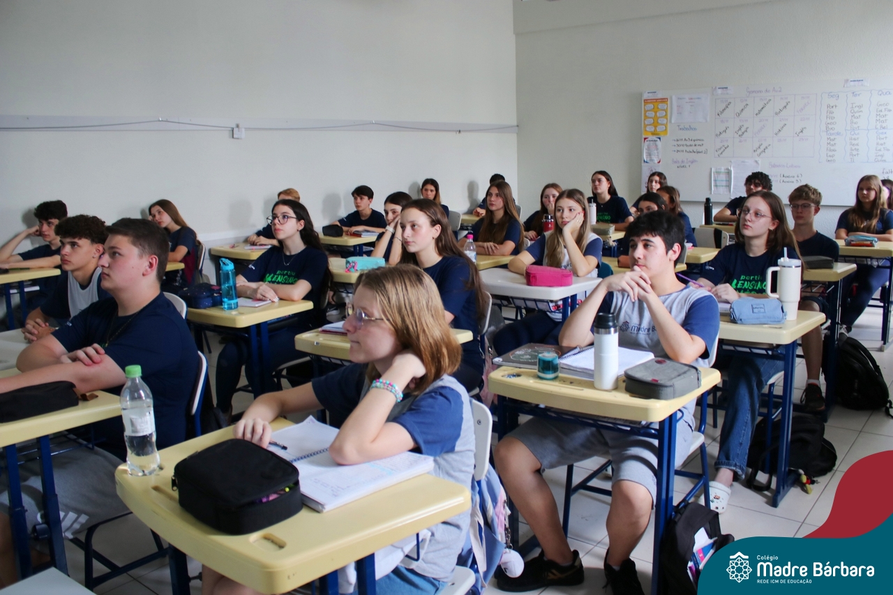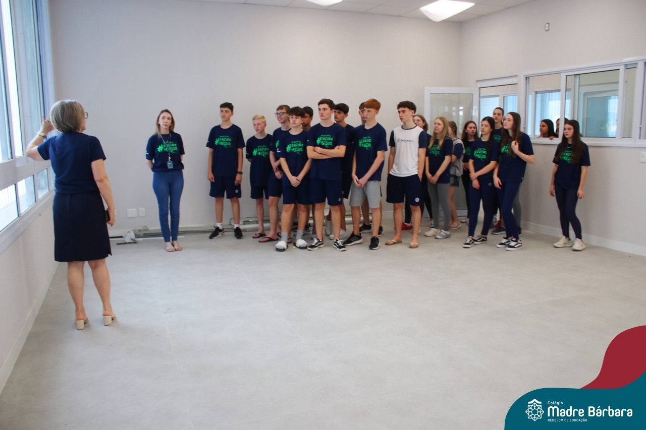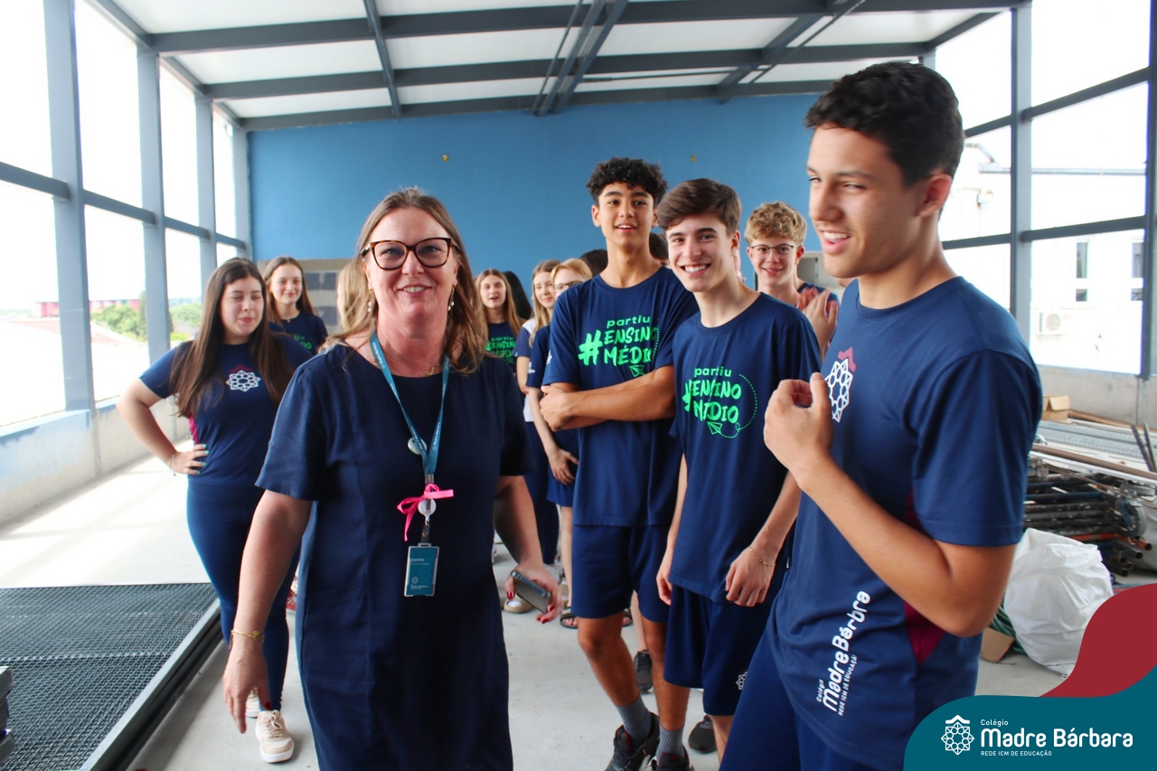 Nesta terça-feira (05.11) os estudantes dos 9ºs anos do Ensino Fundamental – Anos Finais puderam ter mais um “gostinho” de como será o Ensino Médio do Colégio. O Projeto “Partiu Ensino Médio” busca apresentar aos alunos a estrutura do Ensino Médio bem como as experiências que irão vivenciar em 2025. A ação é organizada pela coordenação pedagógica, marketing e psicologia escolar do Colégio Madre Bárbara – Rede ICM, proporcionou aos alunos um bate-papo com os alunos sobre a dedicação e foco nos estudos nesta reta final, valorizando a trajetória de cada um. Foi apresentado um vídeo, com depoimentos de alunos que já estão no Ensino Médio no qual compartilharam as expectativas, as oportunidades e os impactos na vida de cada um. Na ocasião, os estudantes foram convidados a conhecer as instalações do 4º pavimento onde serão as salas do Ensino Médio no próximo ano. Valeu galera. E aí, partiu Ensino Médio?
