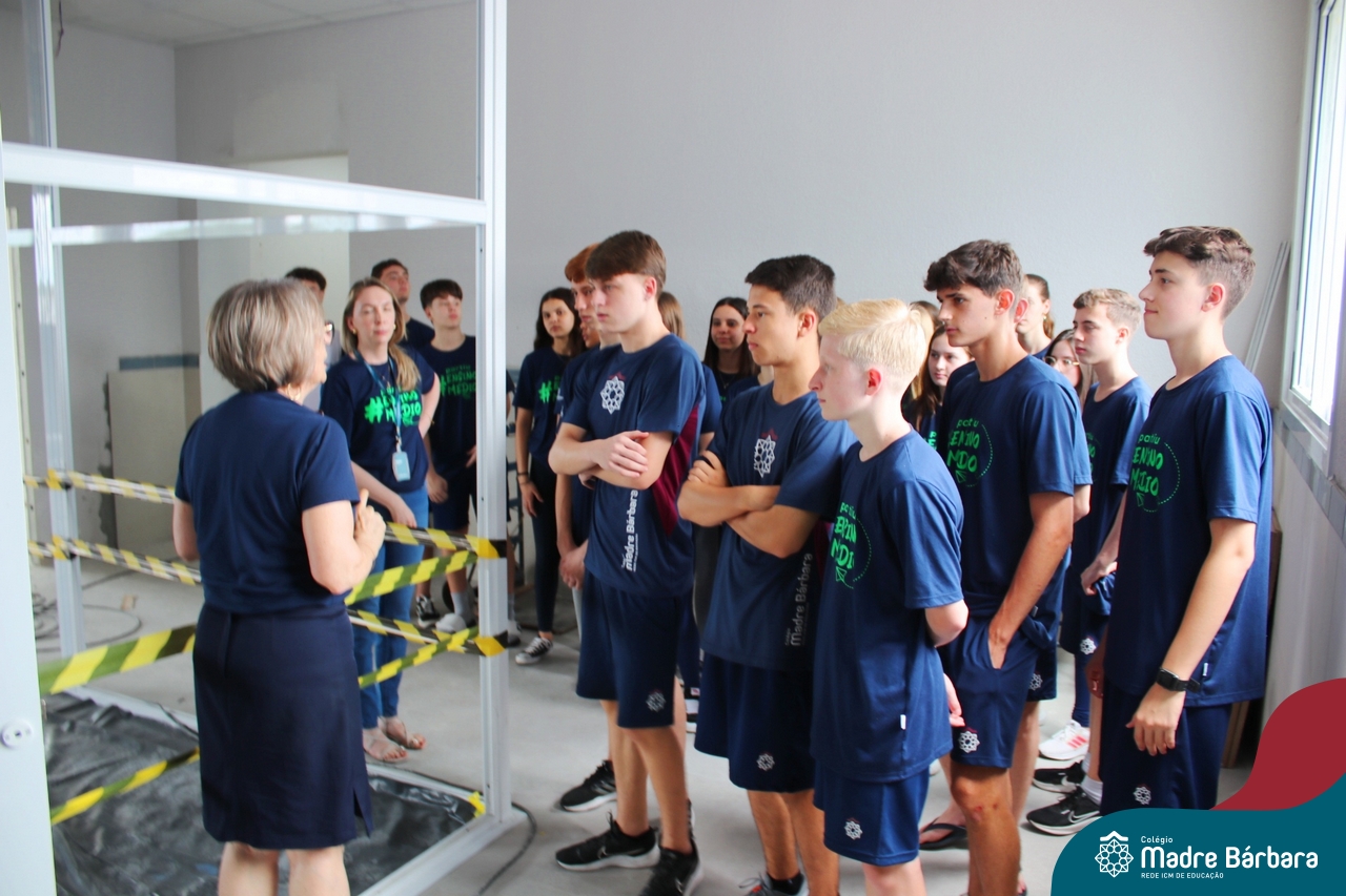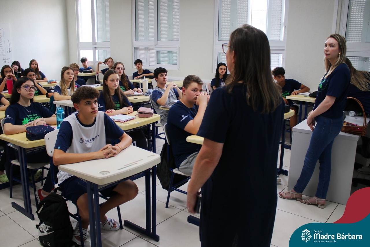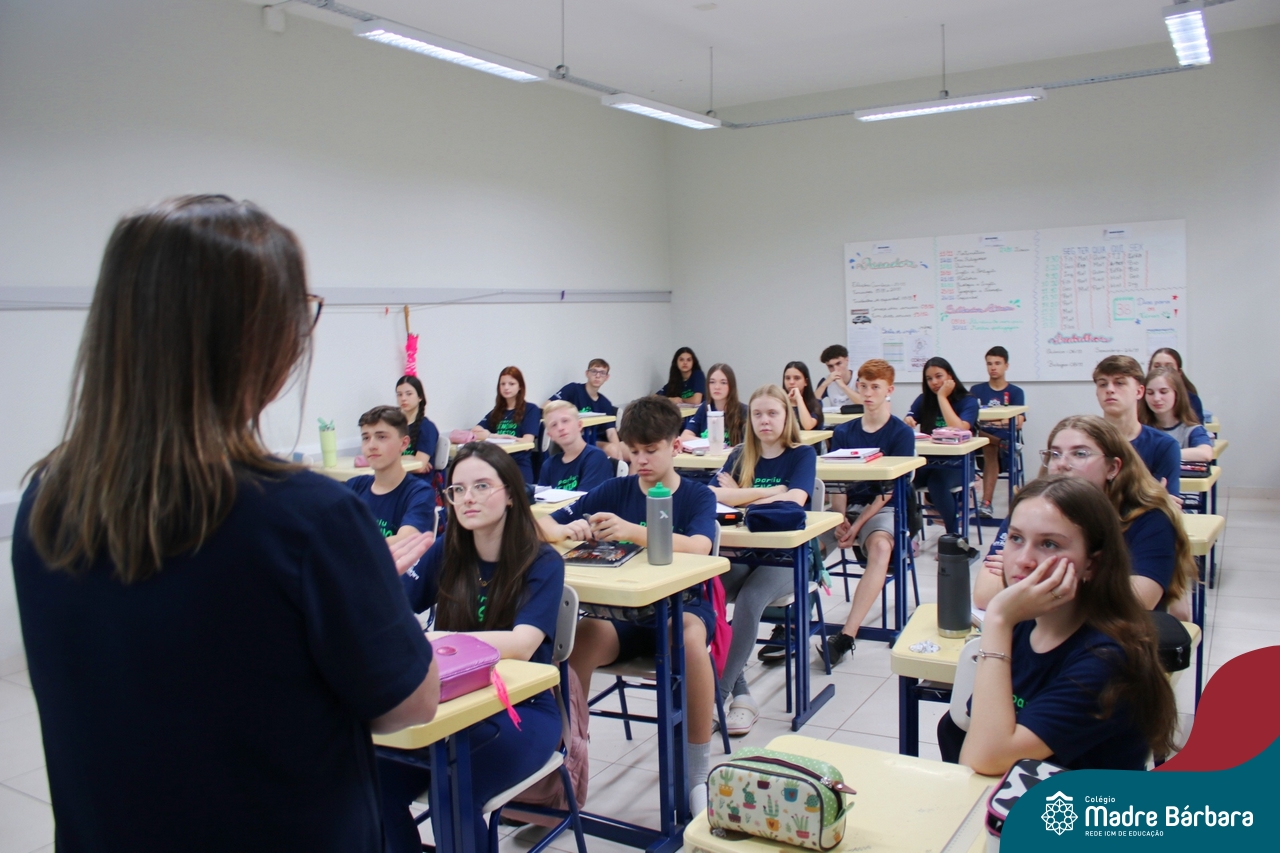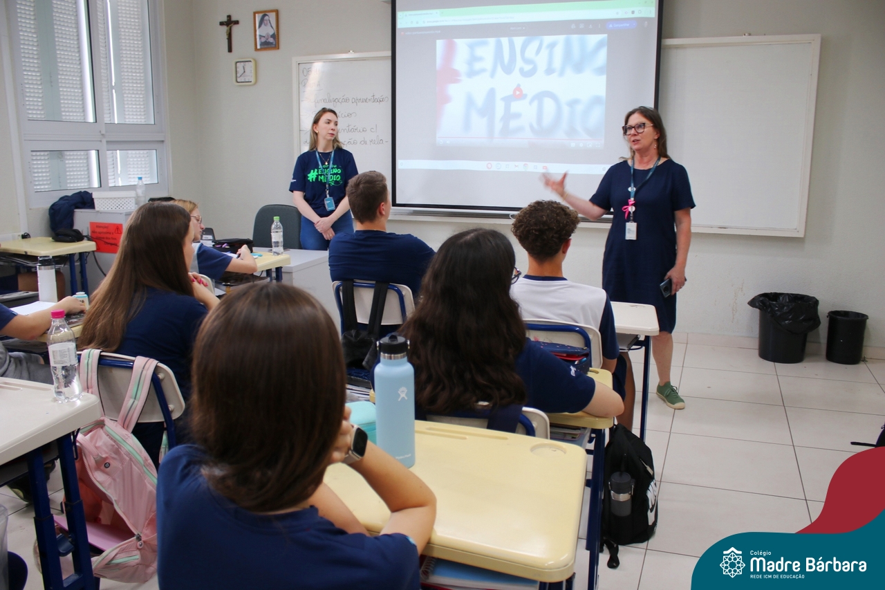 Nesta terça-feira (05.11) os estudantes dos 9ºs anos do Ensino Fundamental – Anos Finais puderam ter mais um “gostinho” de como será o Ensino Médio do Colégio. O Projeto “Partiu Ensino Médio” busca apresentar aos alunos a estrutura do Ensino Médio bem como as experiências que irão vivenciar em 2025. A ação é organizada pela coordenação pedagógica, marketing e psicologia escolar do Colégio Madre Bárbara – Rede ICM, proporcionou aos alunos um bate-papo com os alunos sobre a dedicação e foco nos estudos nesta reta final, valorizando a trajetória de cada um. Foi apresentado um vídeo, com depoimentos de alunos que já estão no Ensino Médio no qual compartilharam as expectativas, as oportunidades e os impactos na vida de cada um. Na ocasião, os estudantes foram convidados a conhecer as instalações do 4º pavimento onde serão as salas do Ensino Médio no próximo ano. Valeu galera. E aí, partiu Ensino Médio?