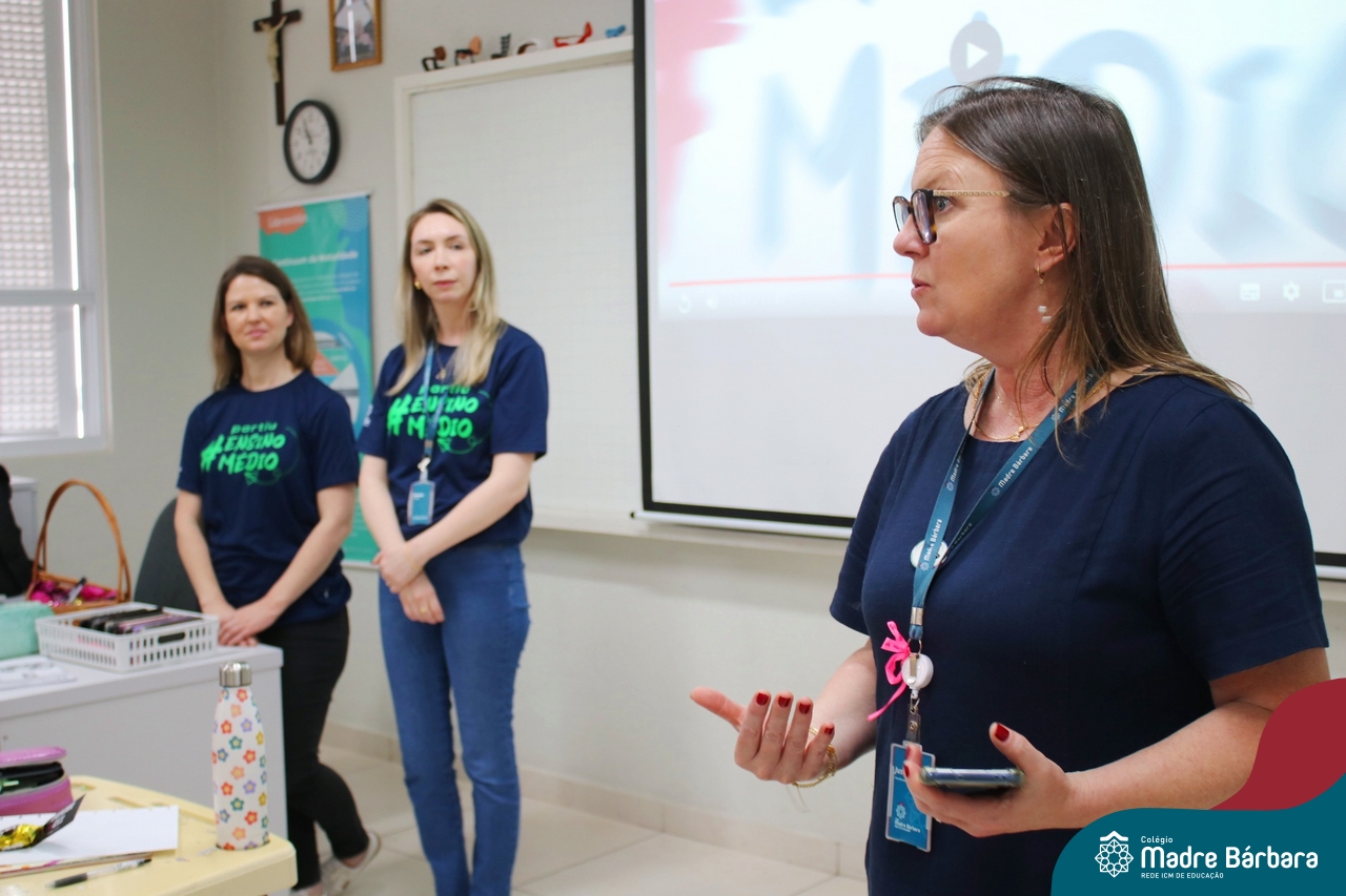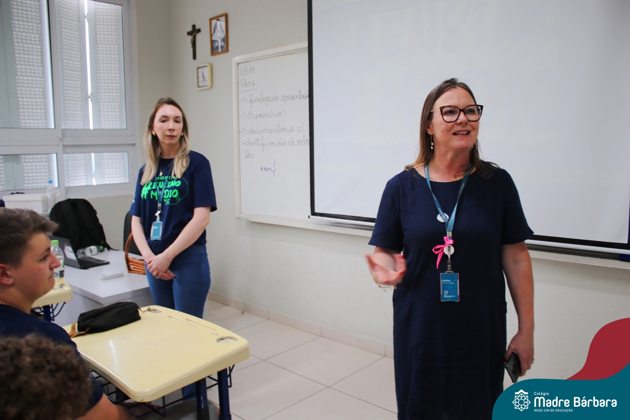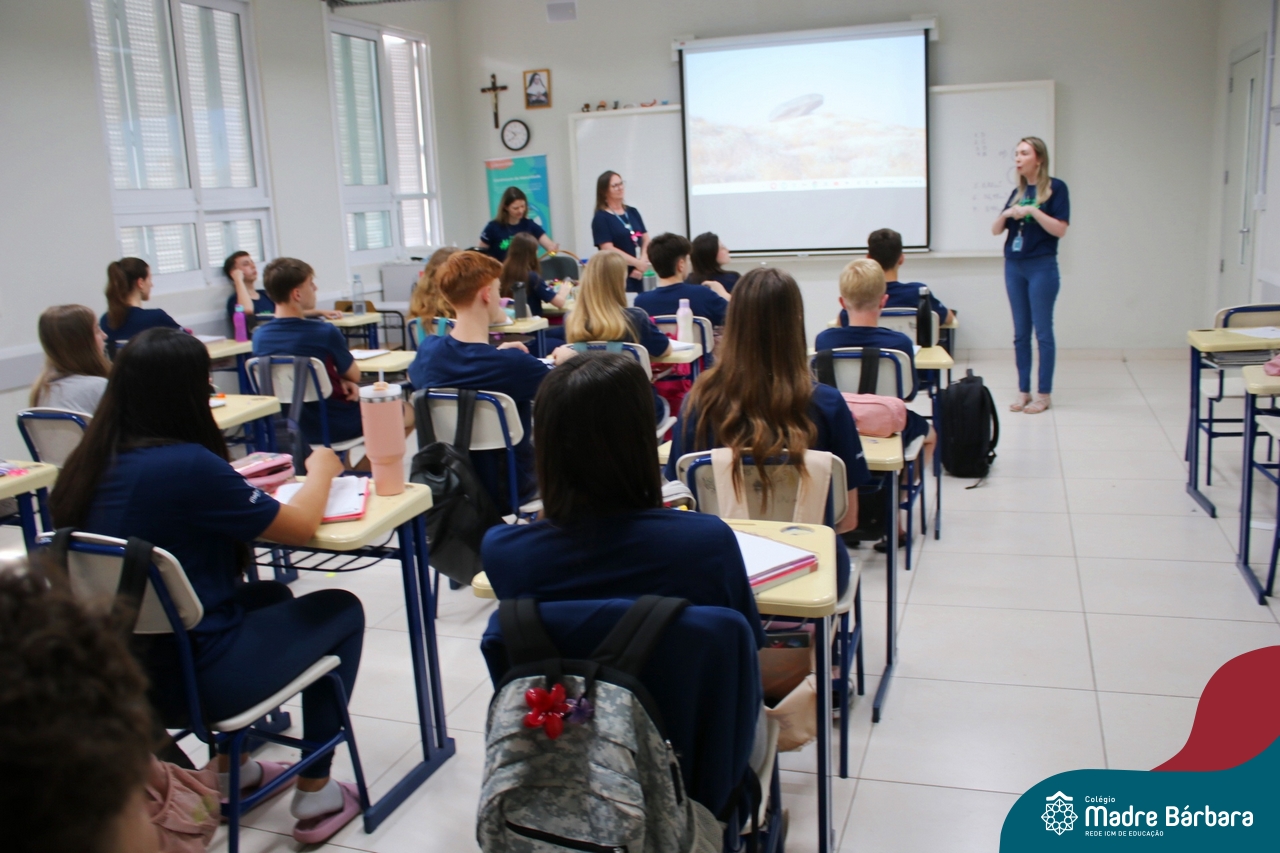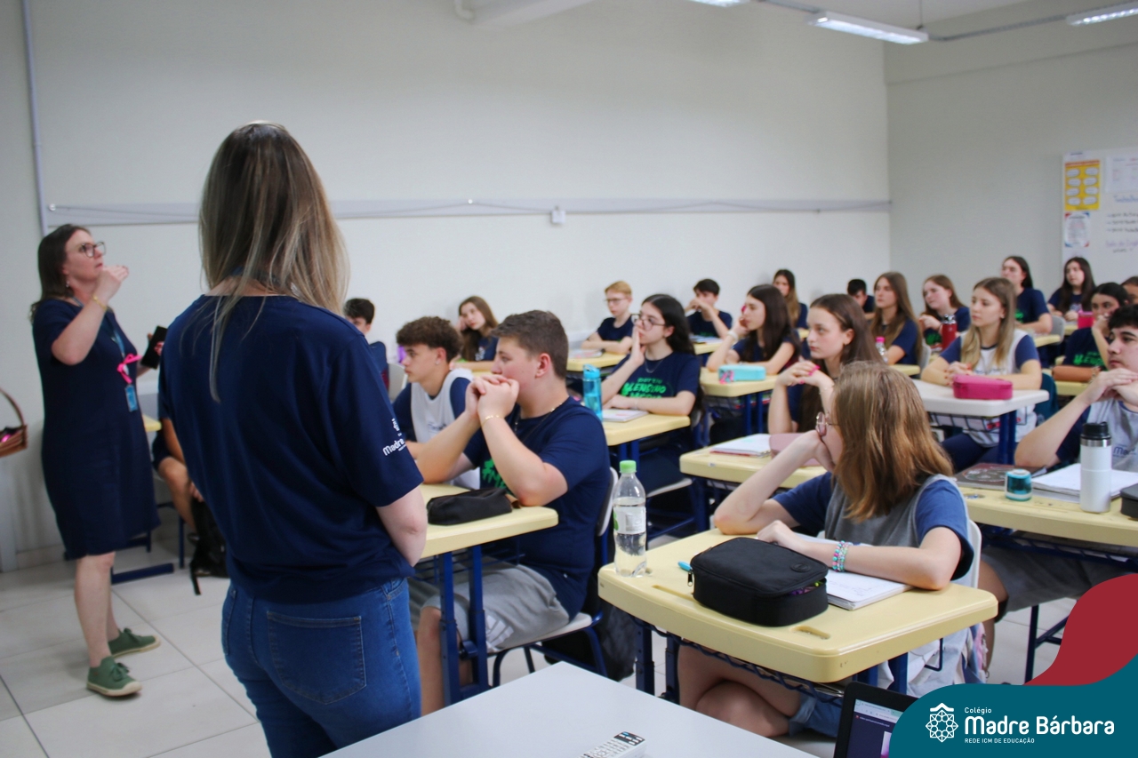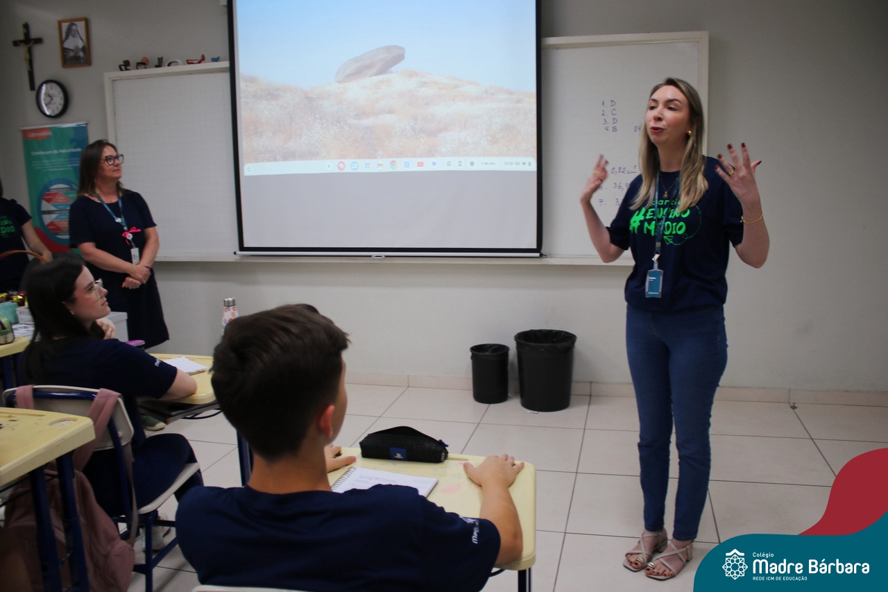 Nesta terça-feira (05.11) os estudantes dos 9ºs anos do Ensino Fundamental – Anos Finais puderam ter mais um “gostinho” de como será o Ensino Médio do Colégio. O Projeto “Partiu Ensino Médio” busca apresentar aos alunos a estrutura do Ensino Médio bem como as experiências que irão vivenciar em 2025. A ação é organizada pela coordenação pedagógica, marketing e psicologia escolar do Colégio Madre Bárbara – Rede ICM, proporcionou aos alunos um bate-papo com os alunos sobre a dedicação e foco nos estudos nesta reta final, valorizando a trajetória de cada um. Foi apresentado um vídeo, com depoimentos de alunos que já estão no Ensino Médio no qual compartilharam as expectativas, as oportunidades e os impactos na vida de cada um. Na ocasião, os estudantes foram convidados a conhecer as instalações do 4º pavimento onde serão as salas do Ensino Médio no próximo ano. Valeu galera. E aí, partiu Ensino Médio?