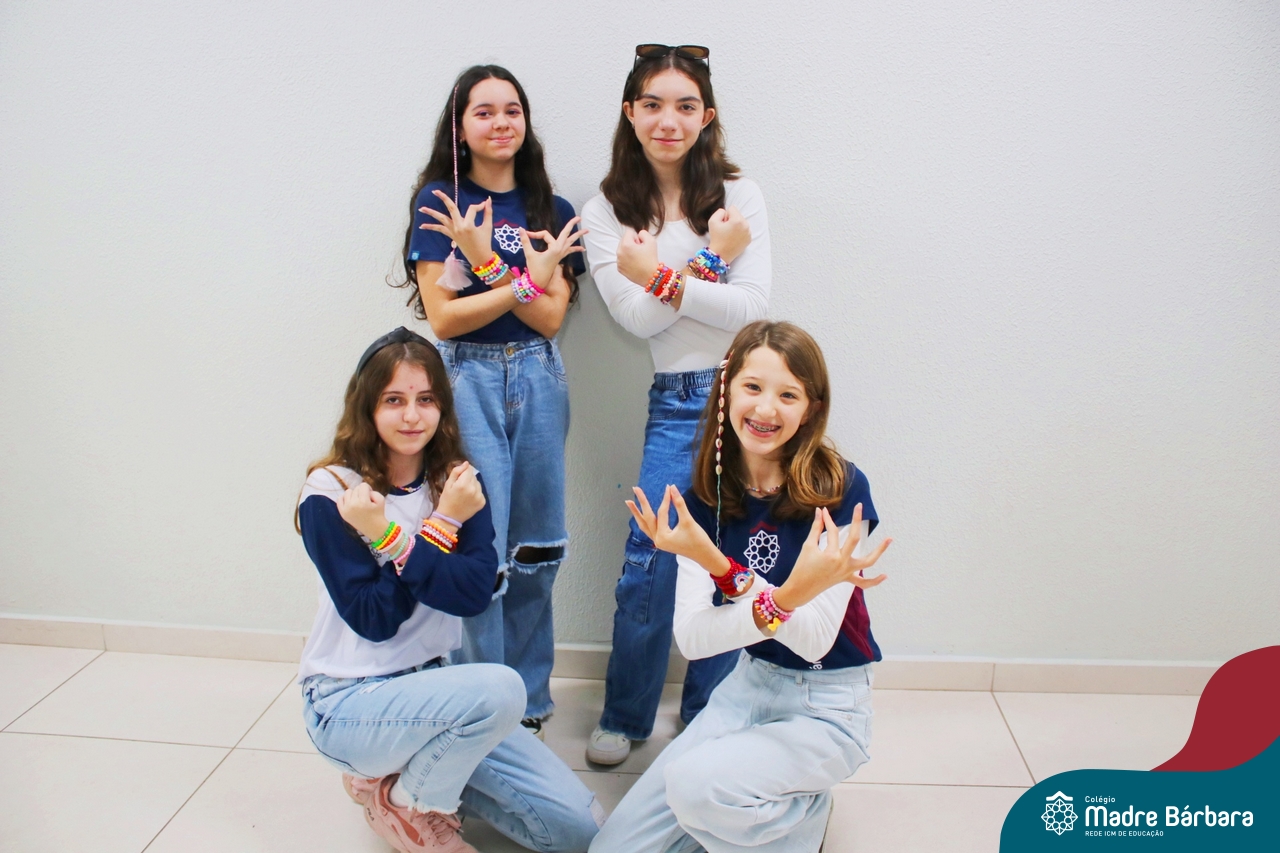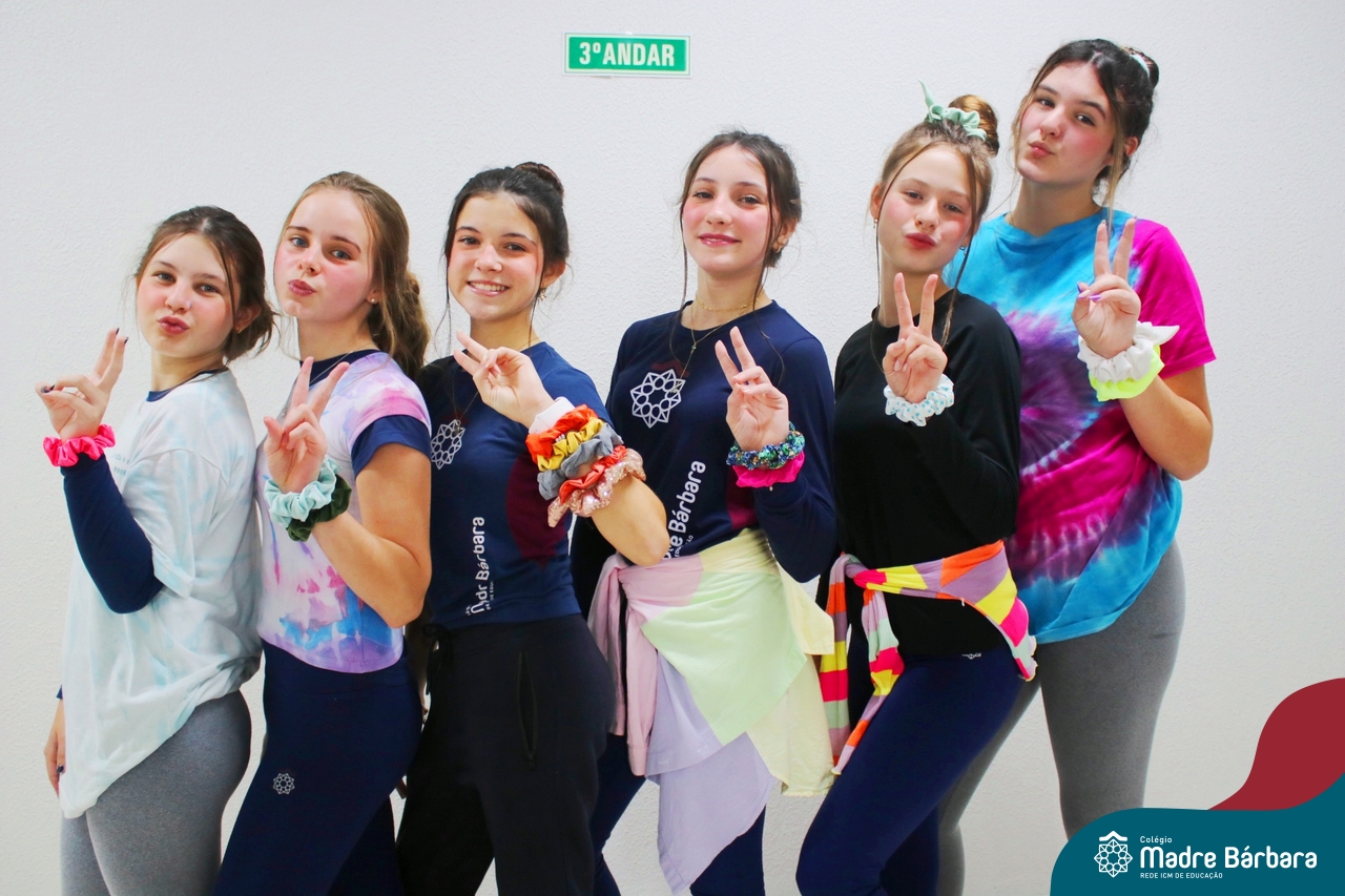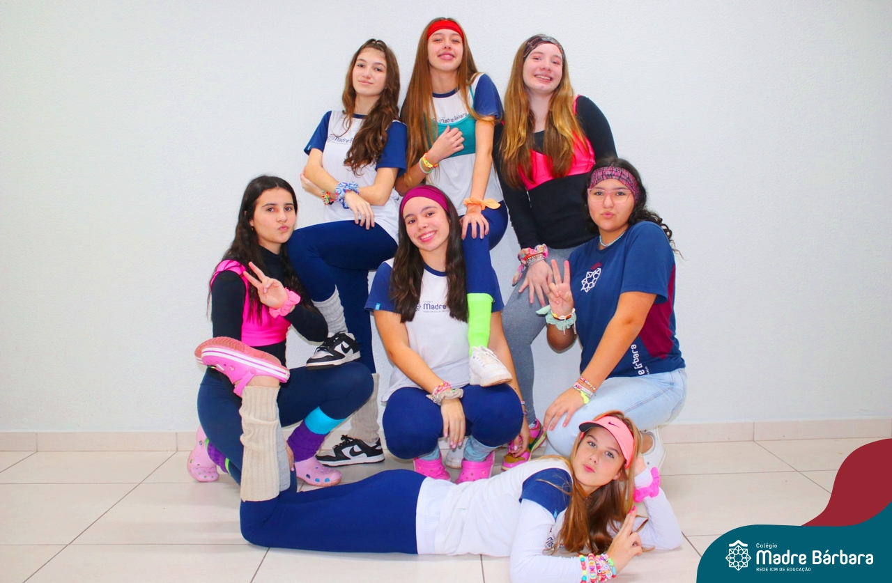 As turmas dos 8ºs anos trabalharam a música no decorrer das décadas, anos 60, 70, 80, 90, 2000 e 2010 e cada grupo ficou responsável por trazer figurinos de cada década, além de coreografias, acessórios e bandas que marcaram. Precisaram pesquisar para apresentar para os colegas. A atividade foi proposta pela professora Cristiane Schneider de arte.