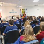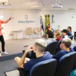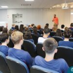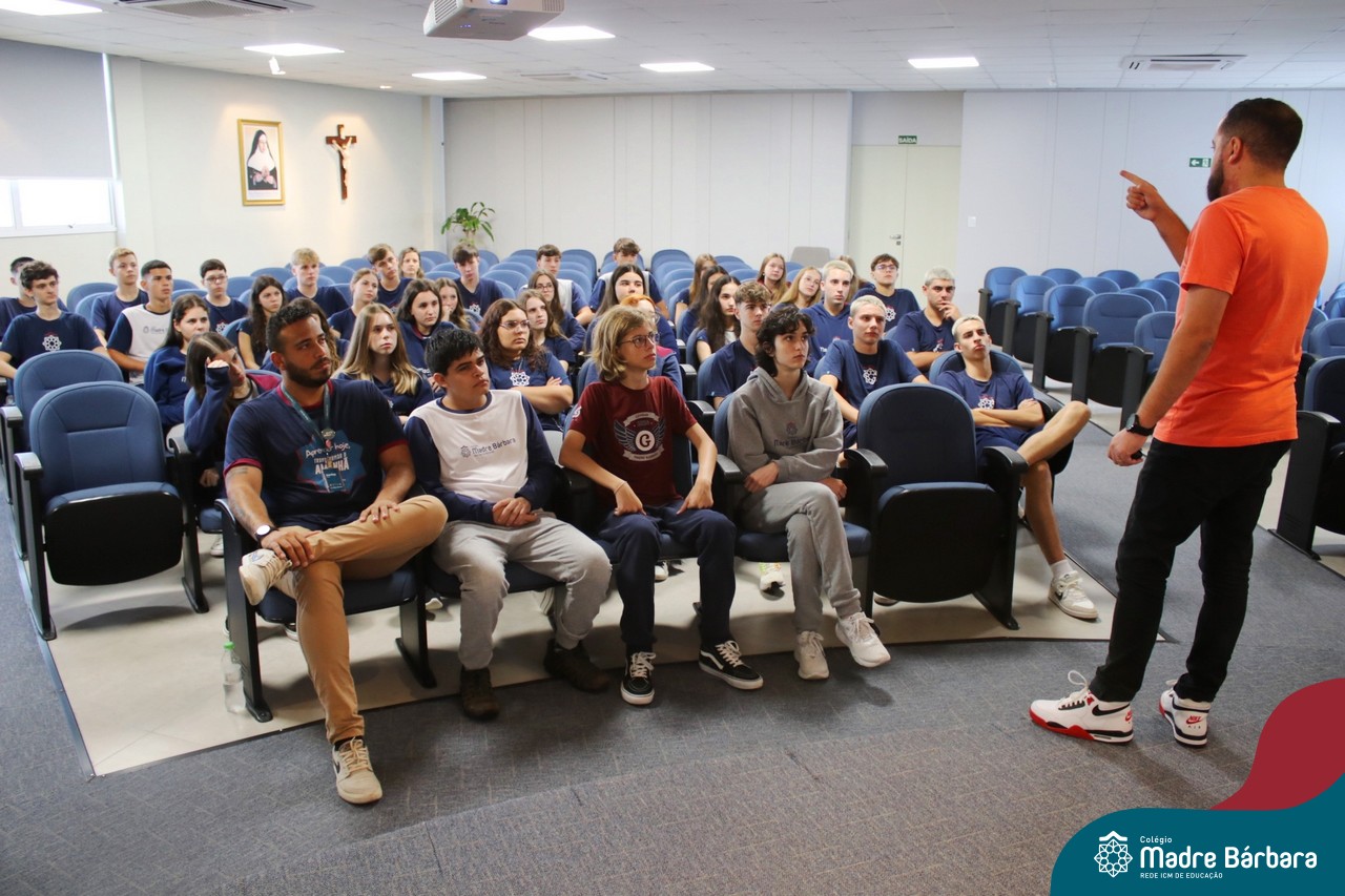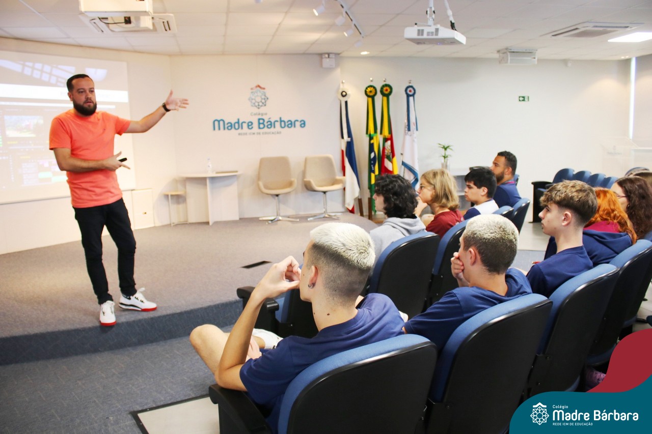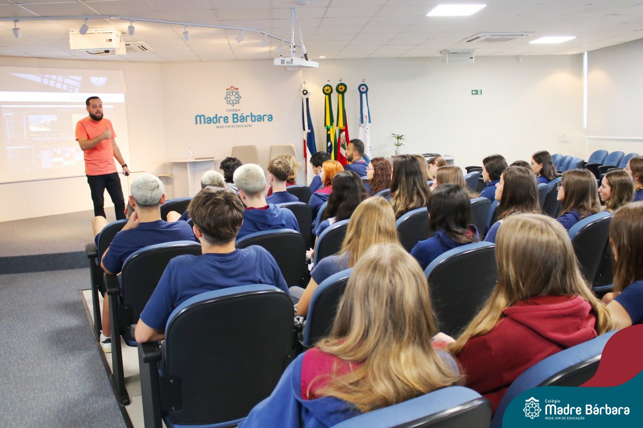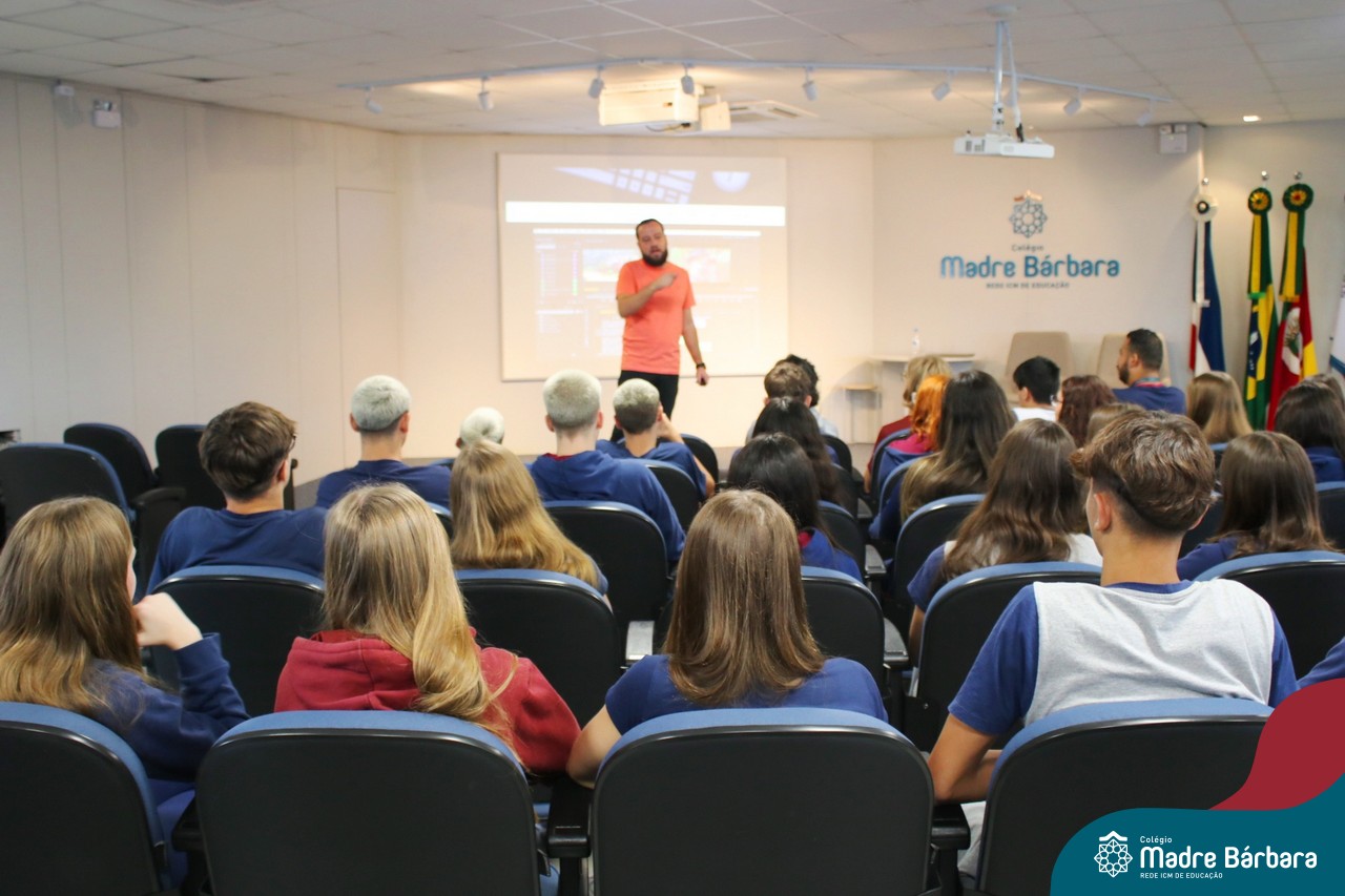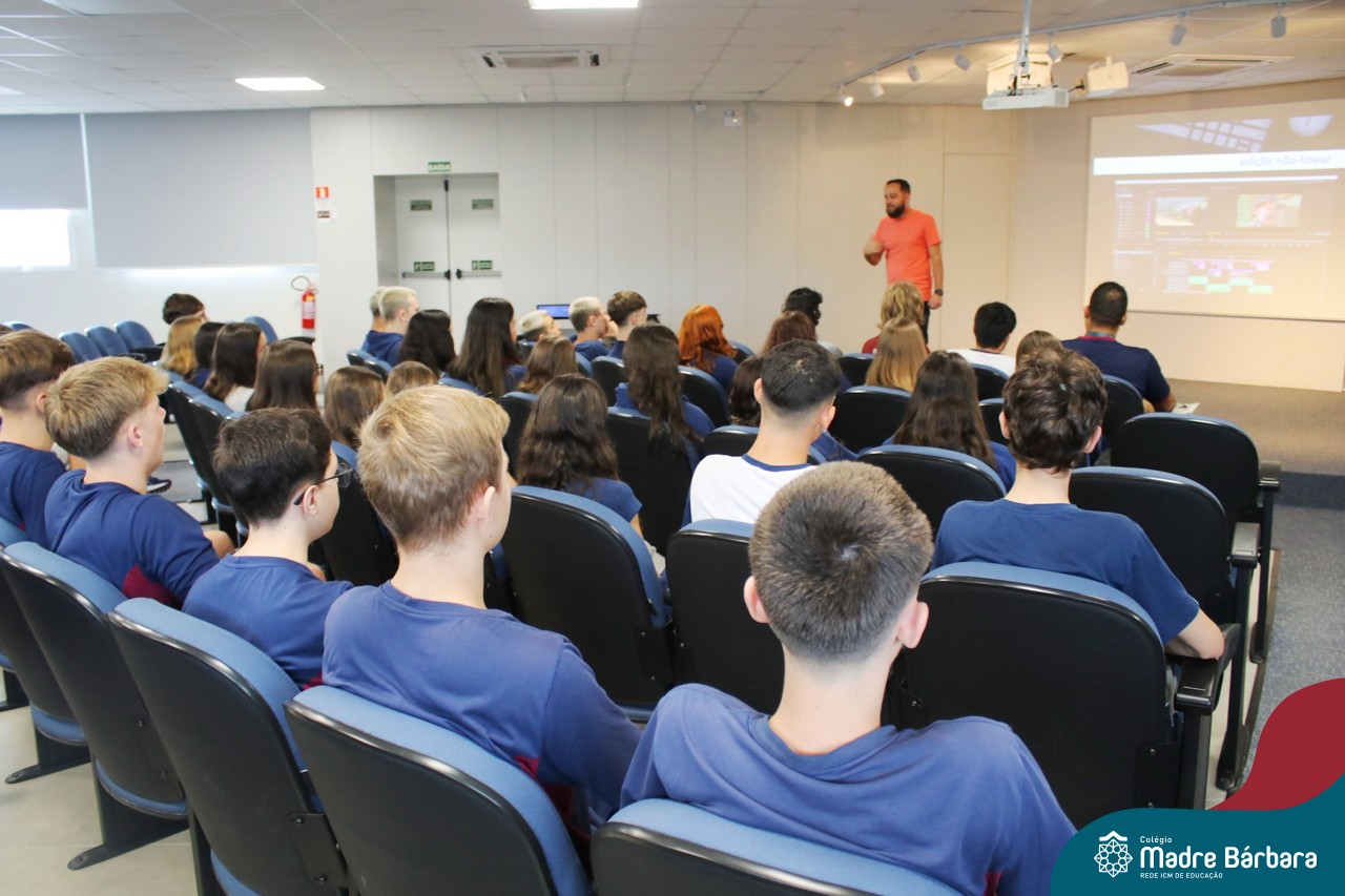 Na manhã de sexta-feira (28.03), os estudantes do 2º ano do Ensino Médio do Colégio Madre Bárbara – Rede ICM aprenderam mais sobre produção audiovisual e edição de vídeos com o professor do curso de Comunicação Social da Univates, Marcus Staudt. No encontro, os estudantes puderam entender o processo de produção, gravação e edição dos curtas cinematográficos para o XV Festival de Cinema, que terá como tema “Contos pré-modernos Adaptações de contos de Lima Barreto, Monteiro Lobato e Simões Lopes Neto”, coordenado pela professora Francieli Winck. Este ano, o Festival ocorre no mês de junho.