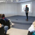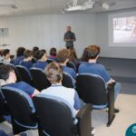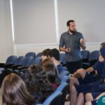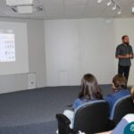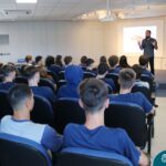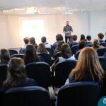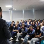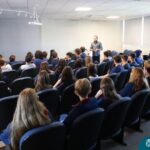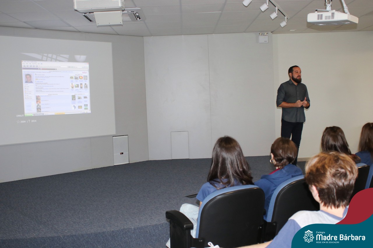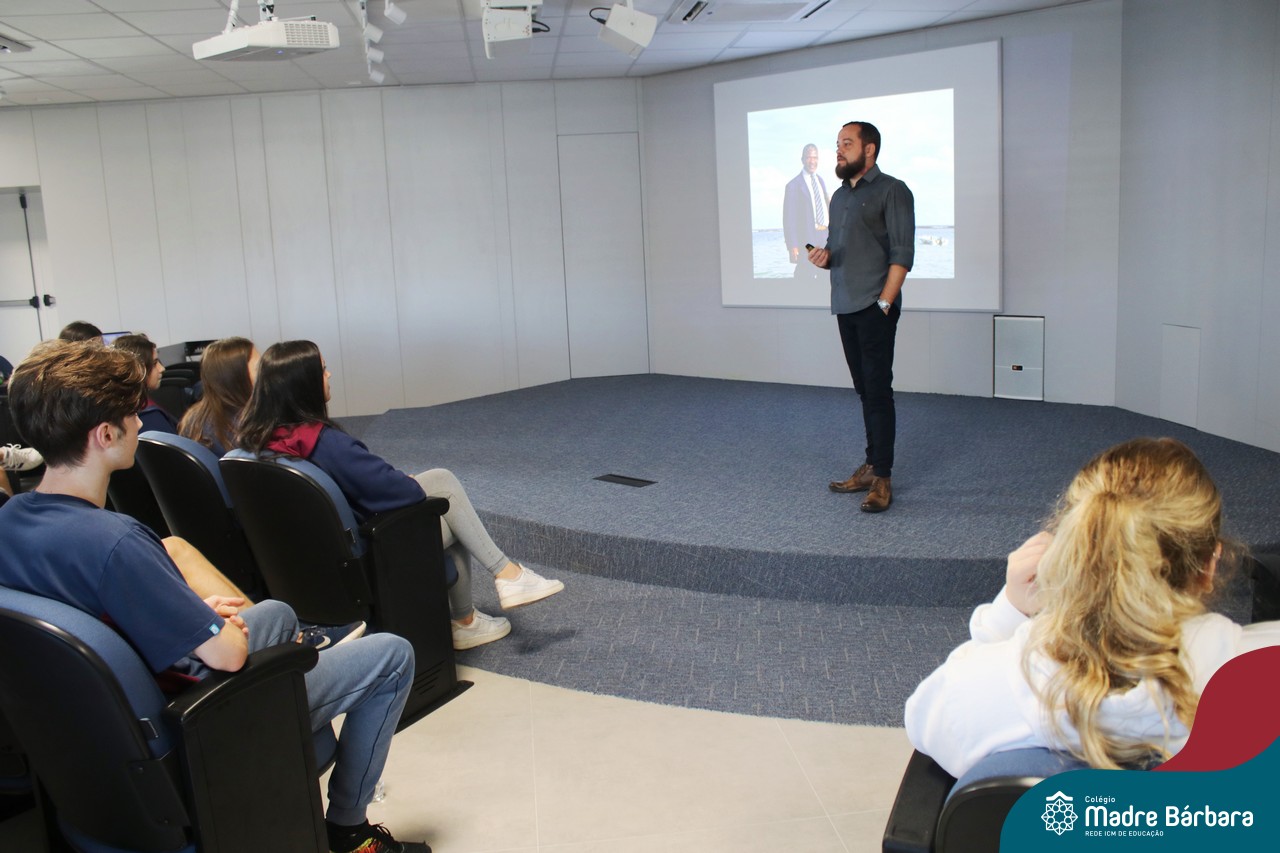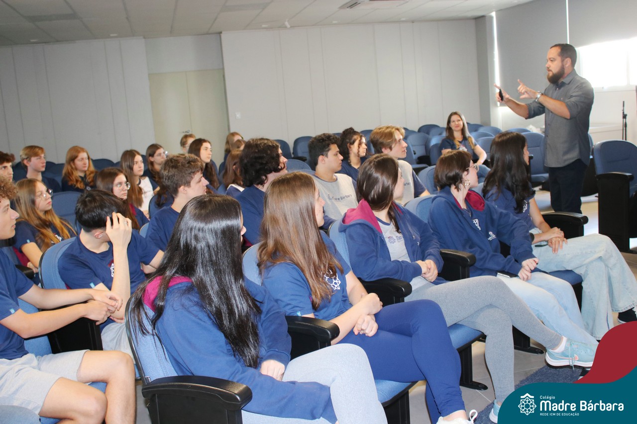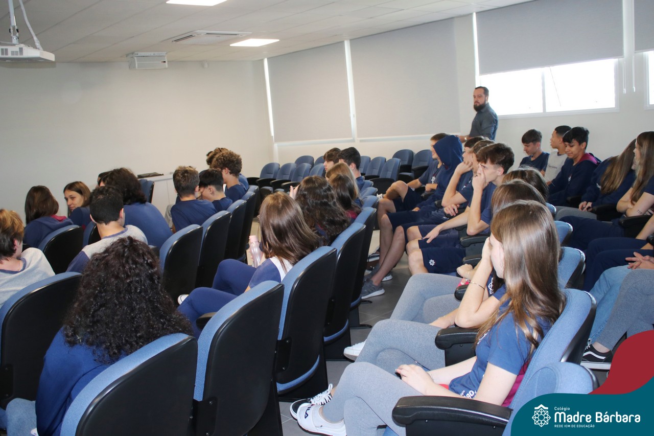Na manhã dessa segunda-feira (10.04), os estudantes das turmas 201 e 202 do Ensino Médio do Colégio Madre Bárbara – Rede ICM – participaram de um momento com o jornalista Marcus Staudt, professor do Curso de Comunicação Social da Univates, sobre produção audiovisual e edição de vídeos. Os estudantes puderam tirar dúvidas e entender sobre o processo de produção, gravação e edição dos curtas cinematográficos para o XIII  Festival de Cinema, que terá como tema “Comédias da vida real”. O Festival é coordenado pela professora Francieli Winck.