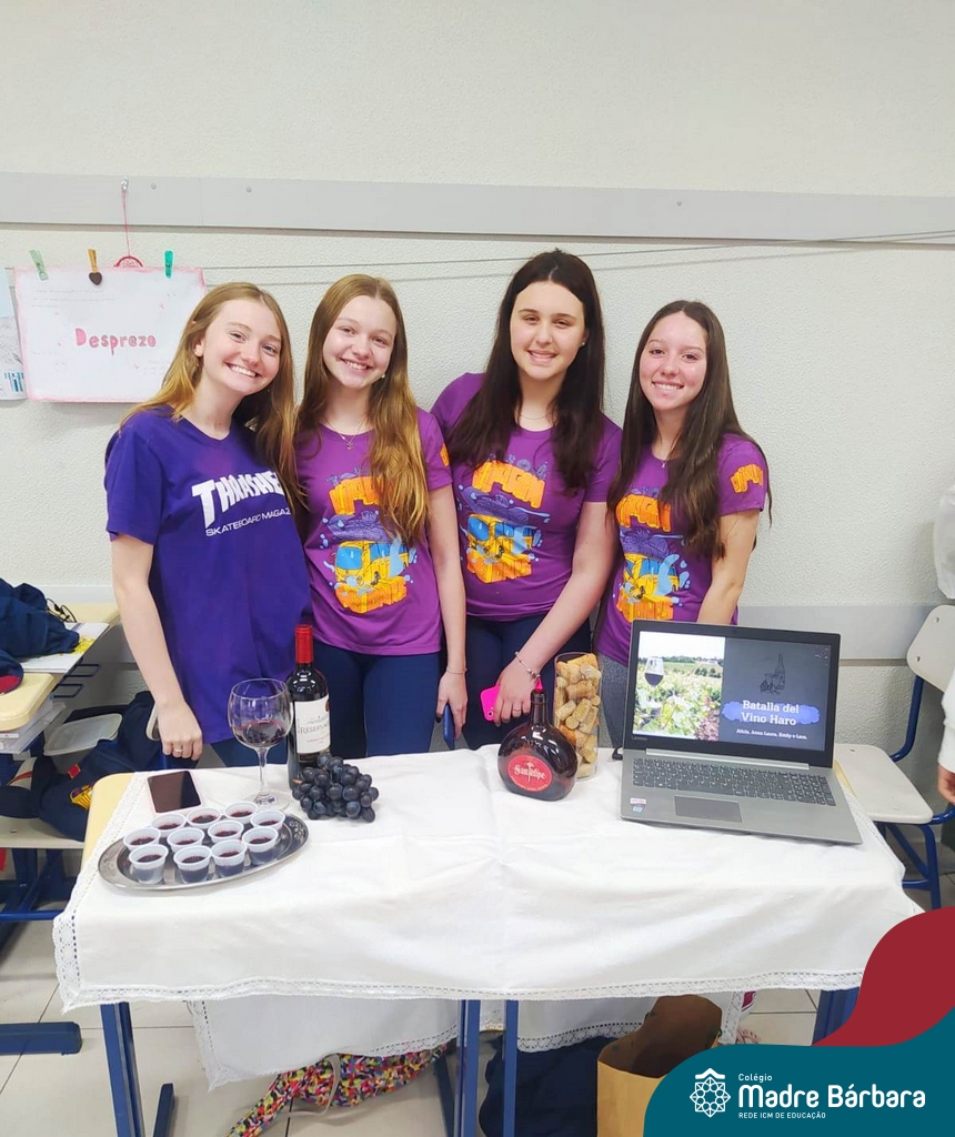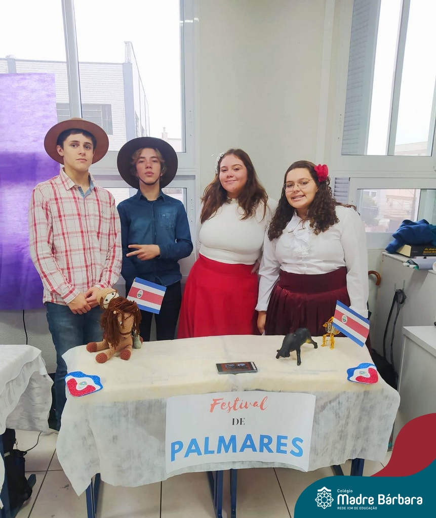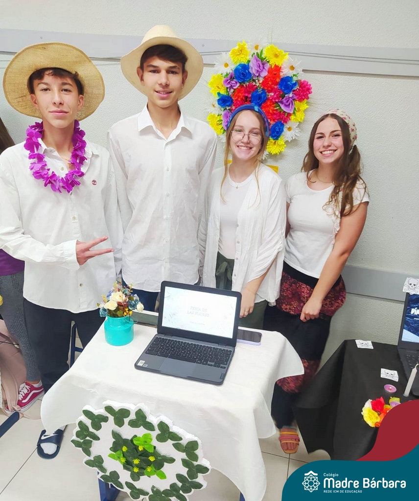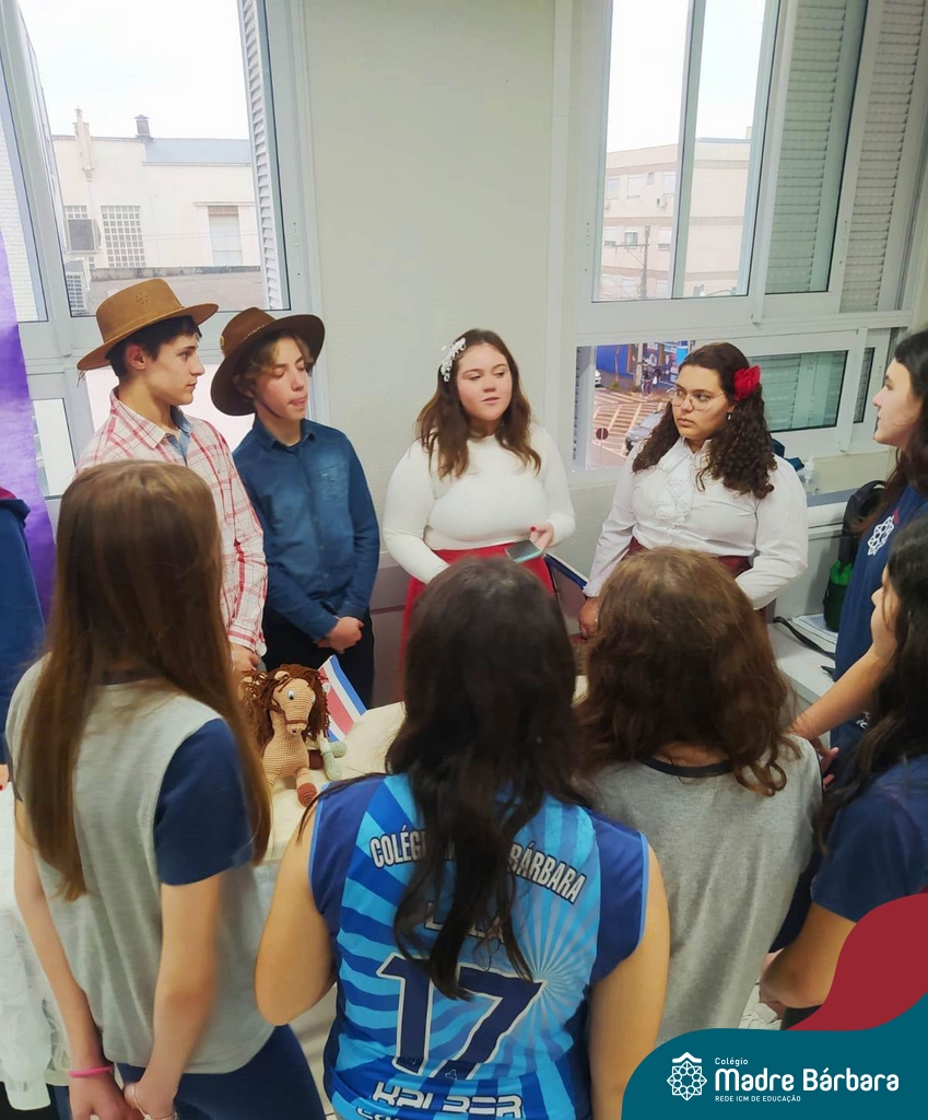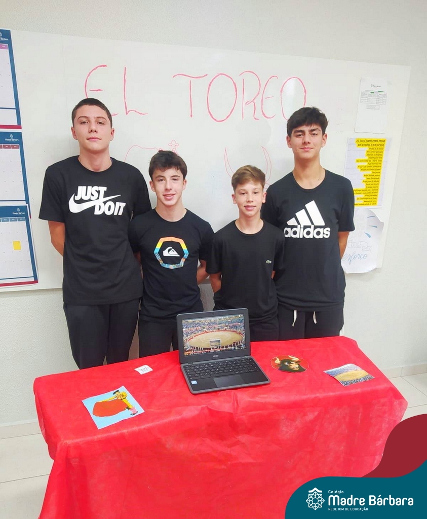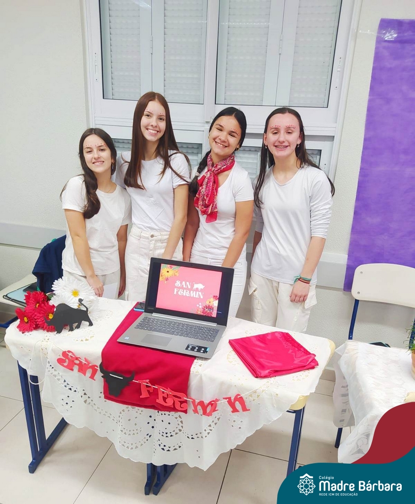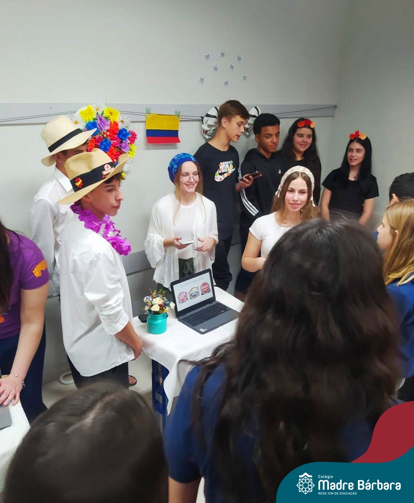 Na manhã de ontem (12.09) os estudantes da turma 91 realizaram uma apresentação, para a turma 71, de algumas das festas hispânicas. O trabalho foi elaborado a partir do estudo da cultura espanhola, na disciplina de espanhol, ministrada pela professora Beatriz Freire.
