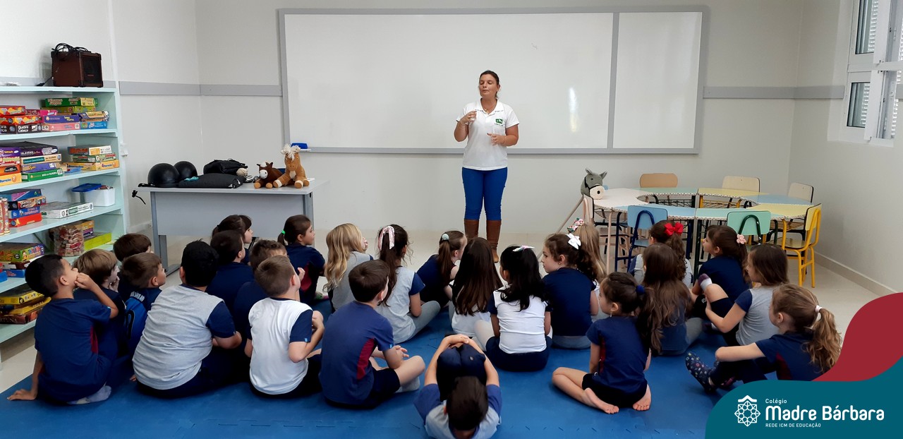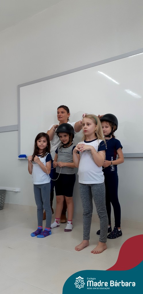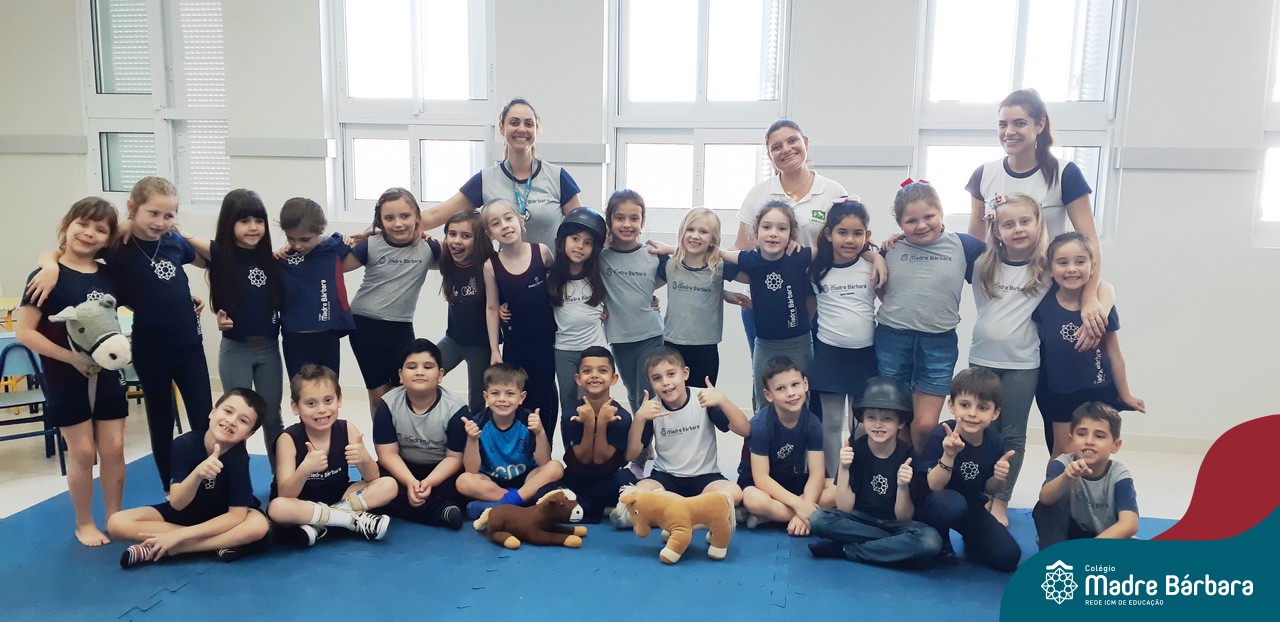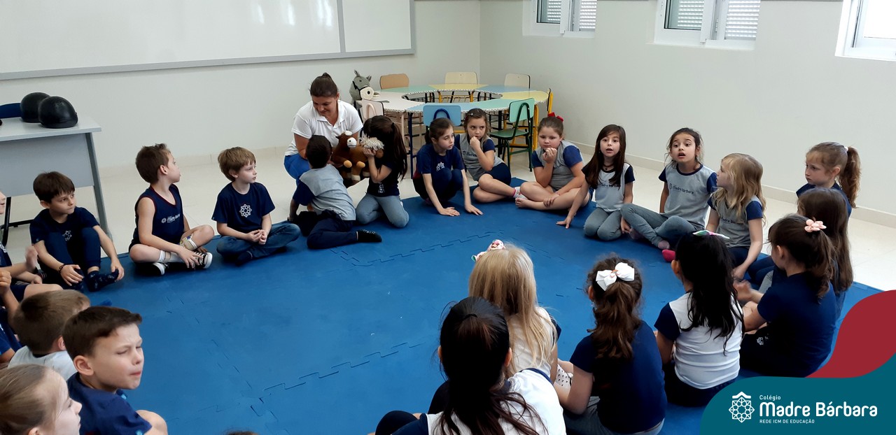 Na última quinta-feira (24.10) a turma 14 recebeu a visita da fisioterapeuta e equoterapeuta Olga Bonh Martins, que possui o Instituto Lado a Lado Equoterapia, localizado em Cruzeiro do Sul. Foi muito emocionante as técnicas utilizadas com os alunos que participaram ativamente fazendo muitos questionamentos e aprofundando seus conhecimentos já estudados em sala de aula com a professora Caroline Bozzetto e Monitora Júlia. A mensagem que mais nos inspirou foi: Equoterapia não é só montar. Aproximar, tocar e observar o cavalo, sempre acompanhado de um profissional, estimula a parte sensorial e desenvolve a confiança, o cérebro, a respiração, o cuidado, a paciência, o afeto, além de muitos outros benefícios.