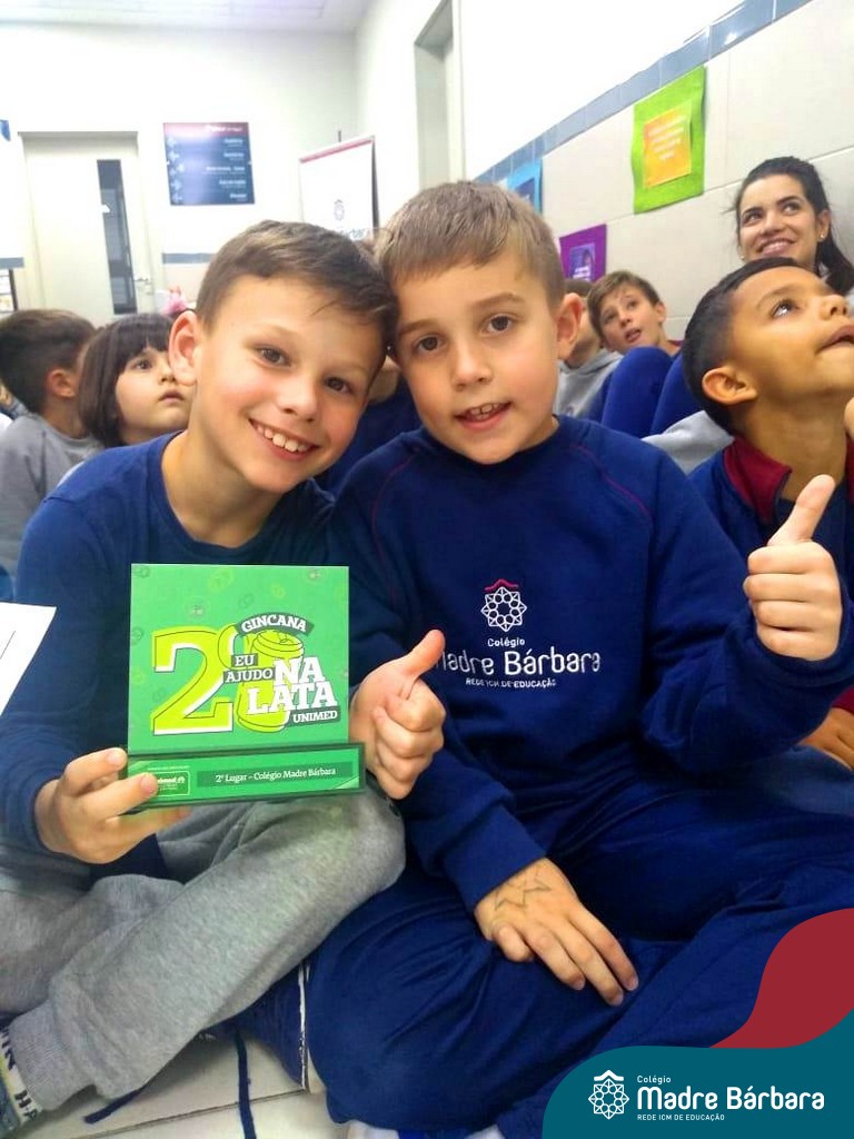 O Colégio Madre Bárbara – Rede ICM participou da Campanha “Eu ajudo na Lata” da Unimed Vale do Taquari e Rio Pardo (VTRP) e arrecadou 56.800 kg, ficando em segundo lugar no Vale. Ao todo, estiveram envolvidos 46 municípios do Vale do Taquari e Rio Pardo, sendo arrecadada mais de meia tonelada de alumínio. A ação dentro da escola faz parte do O Líder em Mim (OLEM Social) e os alunos dos Anos Iniciais foram os protagonistas e envolveram alunos de todo o Colégio. Parabéns a toda comunidade escolar que se dedicou à Campanha!