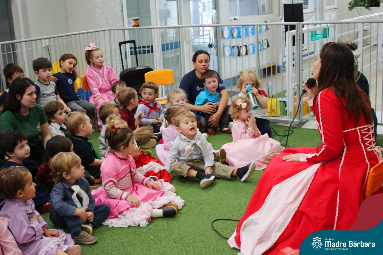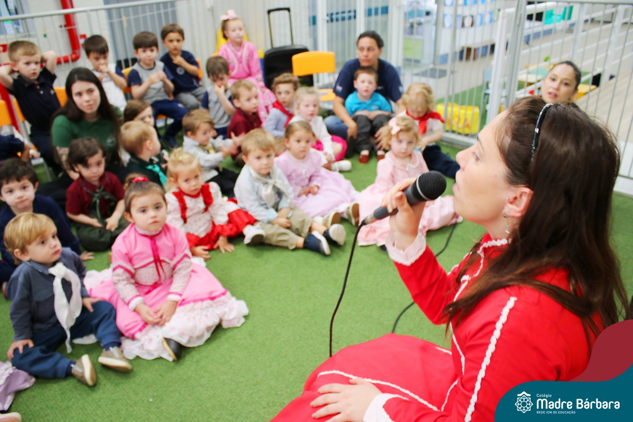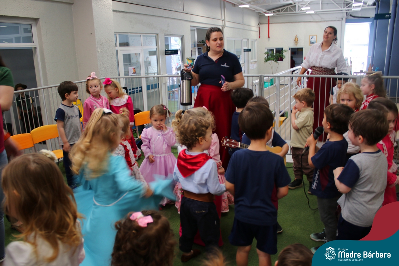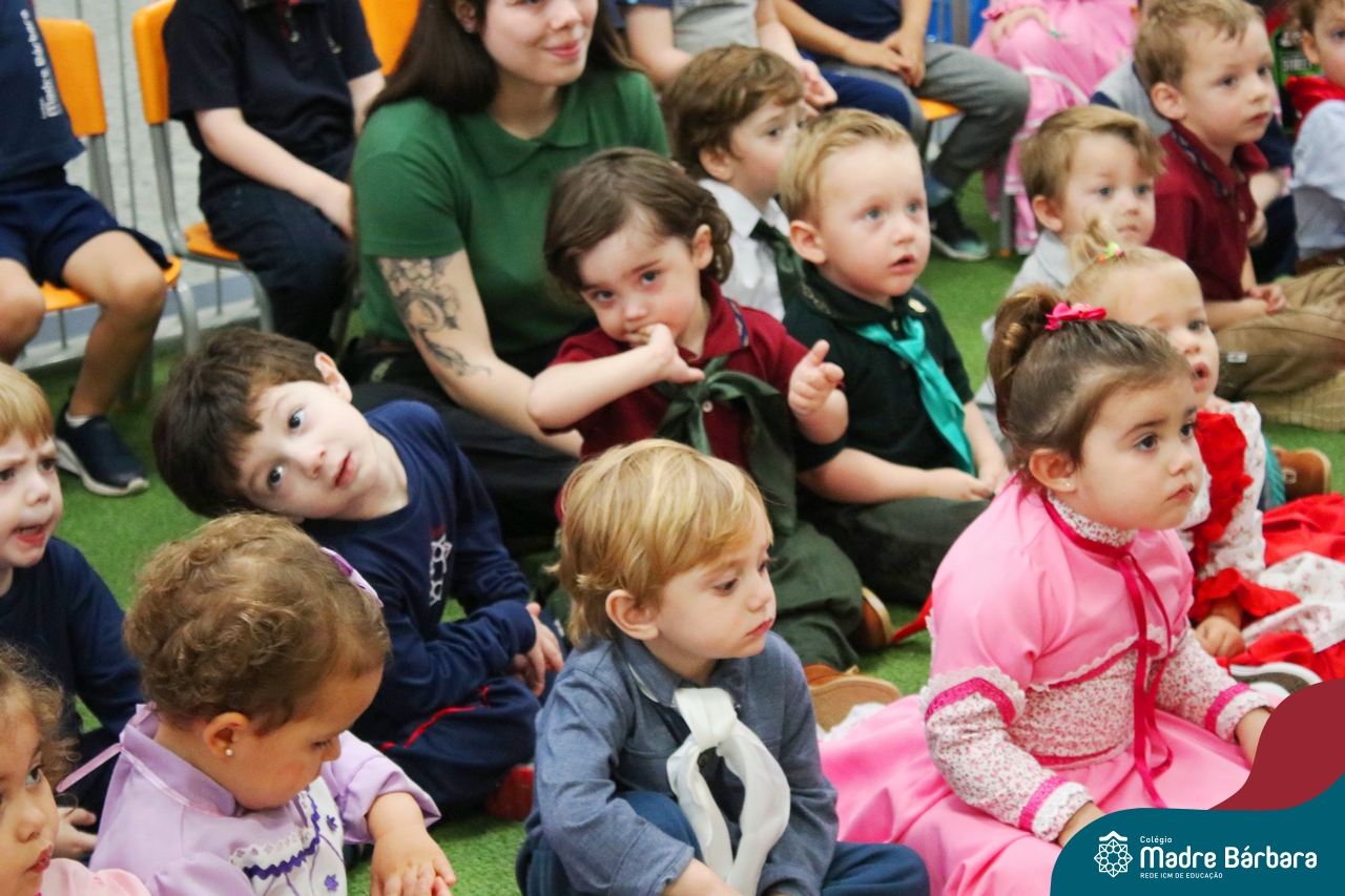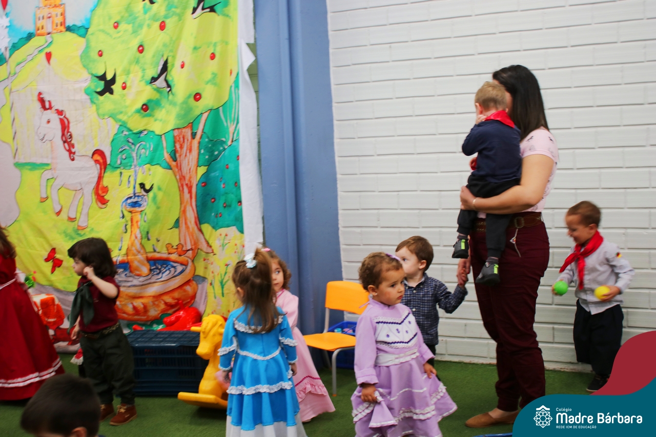 É importante que as crianças, desde pequenas, conheçam a história, os símbolos, curiosidades, lendas, ritmos e sabores do nosso amado estado do Rio Grande do Sul, para que compreendam o orgulho que o nosso povo sente. São dias para festejar a bravura, a força, a fibra e a coragem que corre em nossas veias. Desta forma, as crianças dos Níveis 1C, 1D, 2A, 2B e 3A tiveram uma hora do conto especial: a Lenda do Negrinho do Pastoreio. Em seguida, teve fandango e roda de chimarrão em comemoração à Semana Farroupilha!