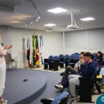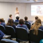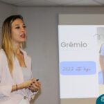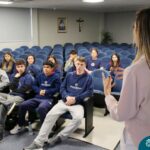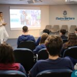 A jornalista Bárbara Assmann compartilhou, nesta manhã de quarta-feira, dia 04.10, suas experiências acadêmicas e profissionais com os alunos do Itinerário de Jornalismo Digital. Bárbara, ex-aluna do Colégio Madre Bárbara, relatou o quanto a sua paixão por esportes a conduziu ao curso de Jornalismo, além de relatar suas experiências na área de escrita de matérias jornalísticas, repórter, apresentadora de noticiário e assessora de comunicação. Atualmente, Bárbara é social media do Grêmio Futebol Clube. O momento se constituiu não só como uma oportunidade de conhecer o mundo do Jornalismo, como também de refletir sobre as escolhas profissionais de nossos alunos e aspectos a serem levados em consideração nesse momento.