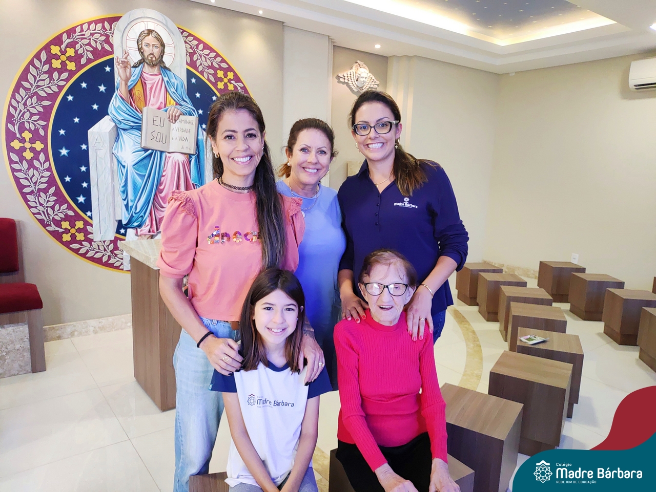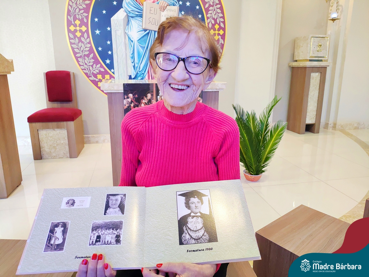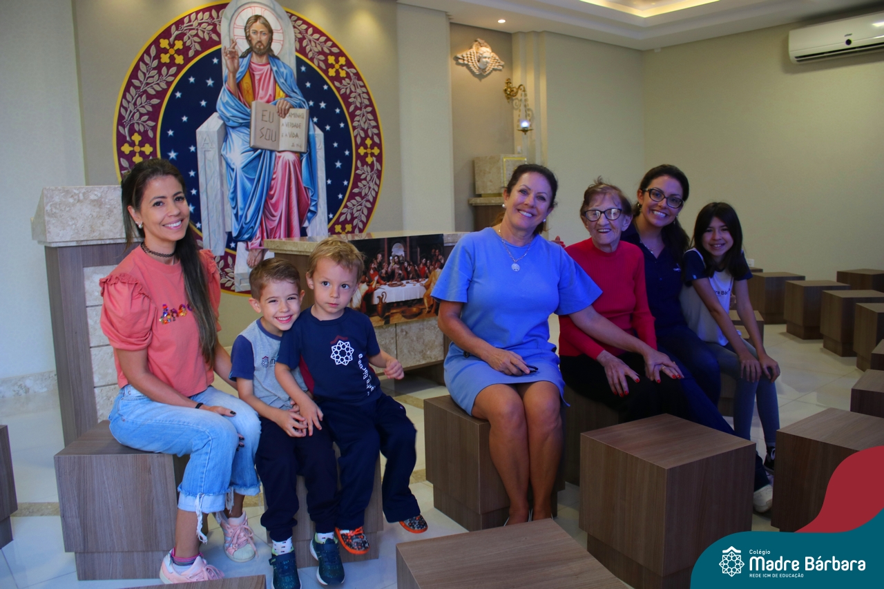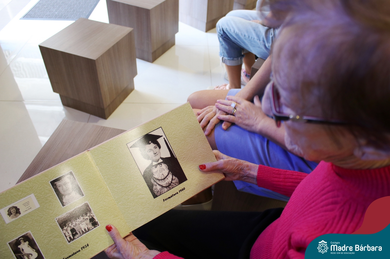 Na manhã dessa terça-feira (11.04) a ex-aluna Maria Laíre Ruchel de 86 anos, esteve visitando o Colégio Madre Bárbara – Rede ICM e relembrando os momentos que viveu na instituição, até a sua formatura no magistério, em 1960. Além de rever os espaços, dona Laíre, que veio acompanhada da filha Marilene, encontrou as netas Marília e Déborah e os bisnetos Amália (10), Miguel (6) e Teodoro (3). Todas as gerações estudaram e estudam no Madre Bárbara. Foi um momento especial para rever o local onde foi tão feliz e também estar reunida com a família, recordando e vendo as netas e os bisnetos, que tanto ama. A diretora Maria Elena Jacques e a Irmã Íris fizeram uma acolhida calorosa a Laíre, revendo um álbum com fotos da formatura no Colégio. A ex-aluna é avó da professora do 1º ano do Ensino Fundamental – Anos Iniciais, Marília Junqueira Marmitt. Foi especial sua visita e alegria, dona Laíre, volte sempre!