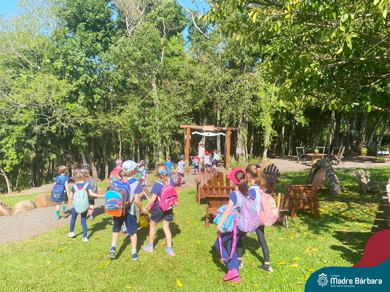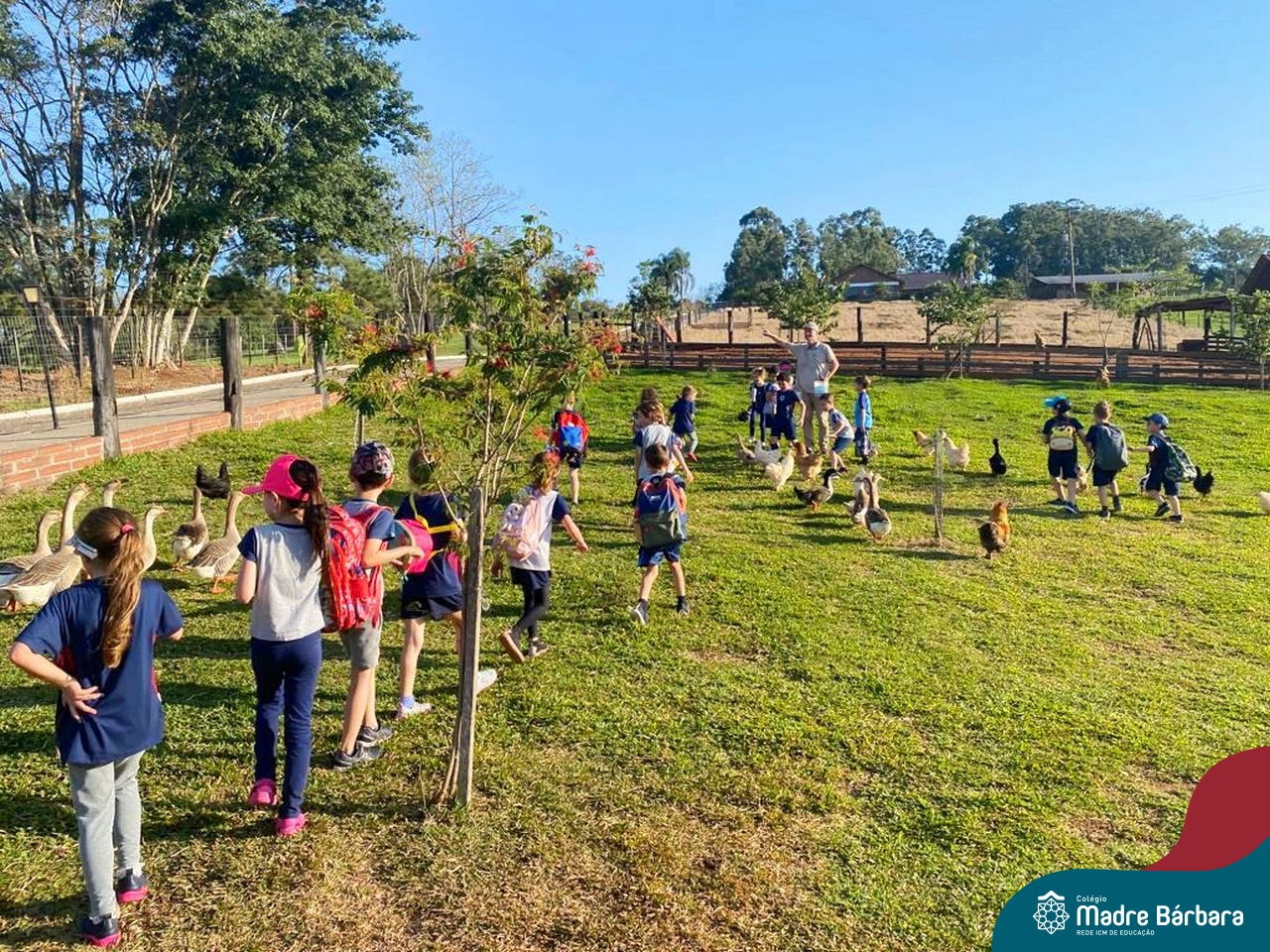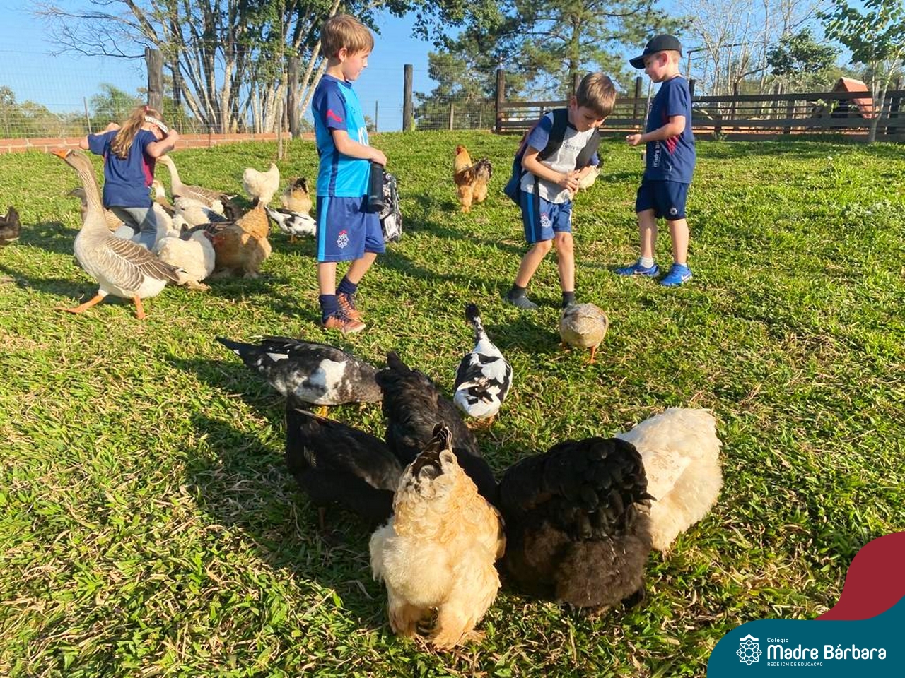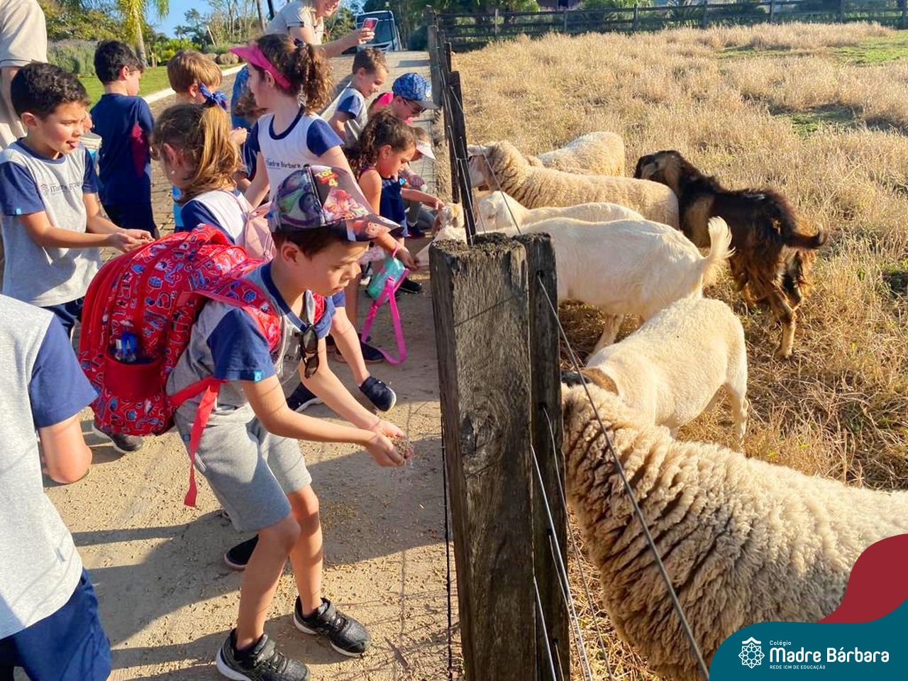 No último dia 17, a sala de aula da turma 16 do Colégio Madre Bárbara – Rede ICM, mudou de endereço. A turma, acompanhada por suas professoras, foi até o Duas Meninas Garden, na cidade de Arroio do Meio. Durante a tarde, os alunos puderam viver uma experiência de contato com a natureza: balanços, fazendinha, recanto e morada do Vovô com interação alimentando, acariciando e brincando com os animais. Entre tantas descobertas, na fábrica de mel, foi retomado os estudos sobre as abelhas, observando-as de perto e provando o mel, direto da colmeia. Foi uma vivência incrível!