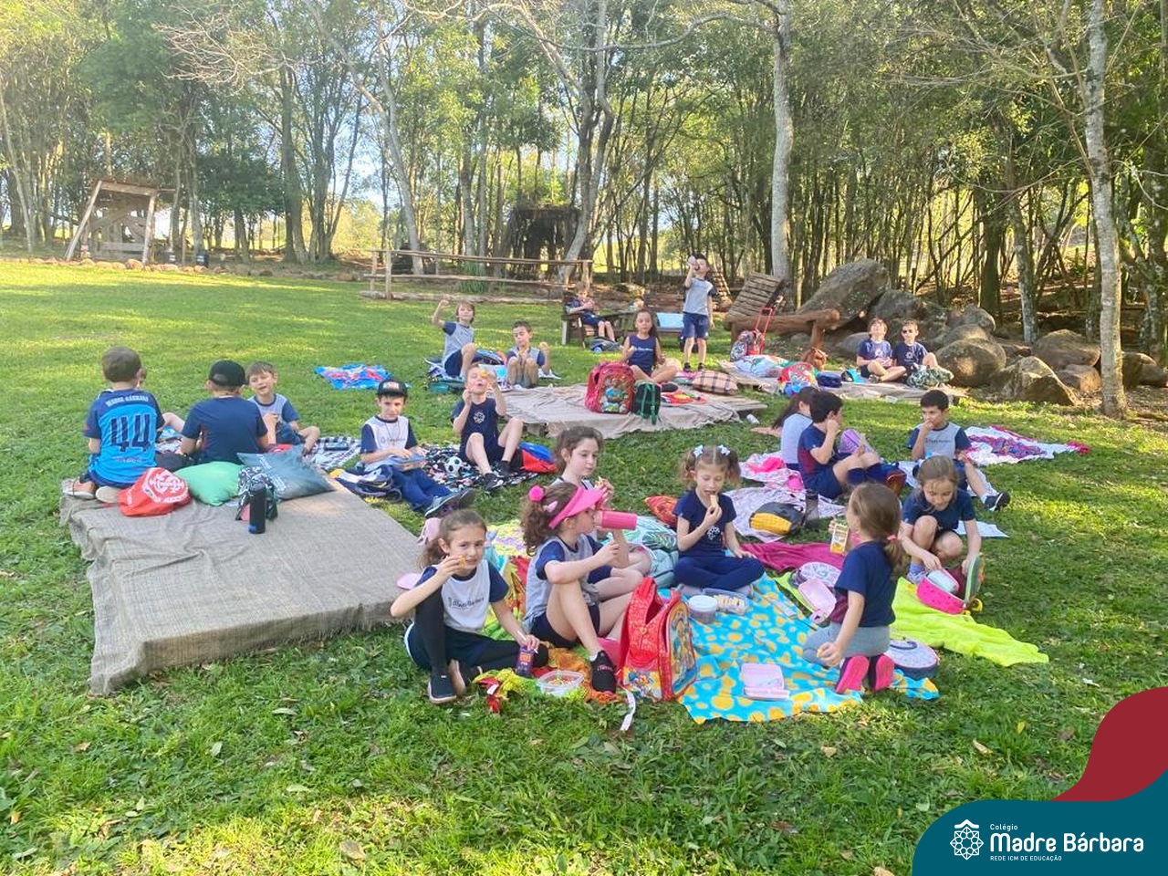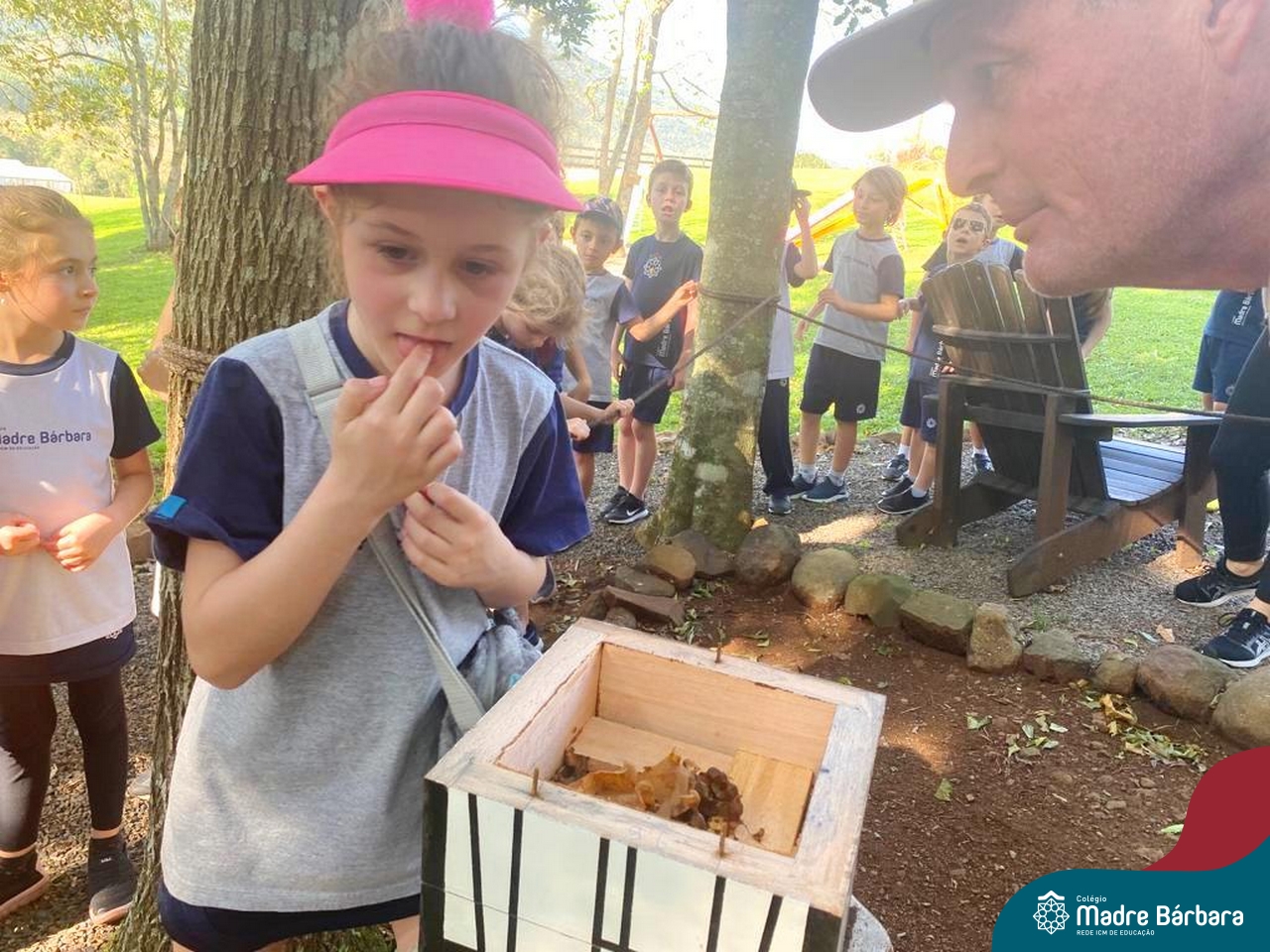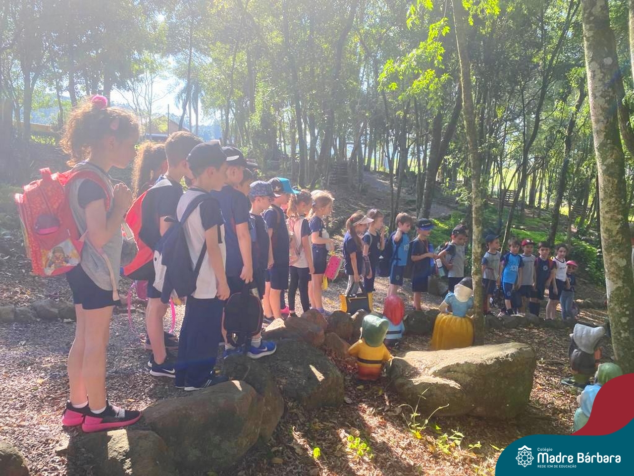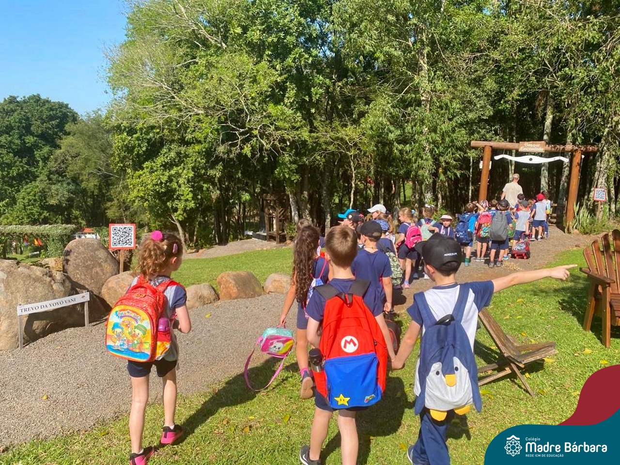 No último dia 17, a sala de aula da turma 16 do Colégio Madre Bárbara – Rede ICM, mudou de endereço. A turma, acompanhada por suas professoras, foi até o Duas Meninas Garden, na cidade de Arroio do Meio. Durante a tarde, os alunos puderam viver uma experiência de contato com a natureza: balanços, fazendinha, recanto e morada do Vovô com interação alimentando, acariciando e brincando com os animais. Entre tantas descobertas, na fábrica de mel, foi retomado os estudos sobre as abelhas, observando-as de perto e provando o mel, direto da colmeia. Foi uma vivência incrível!