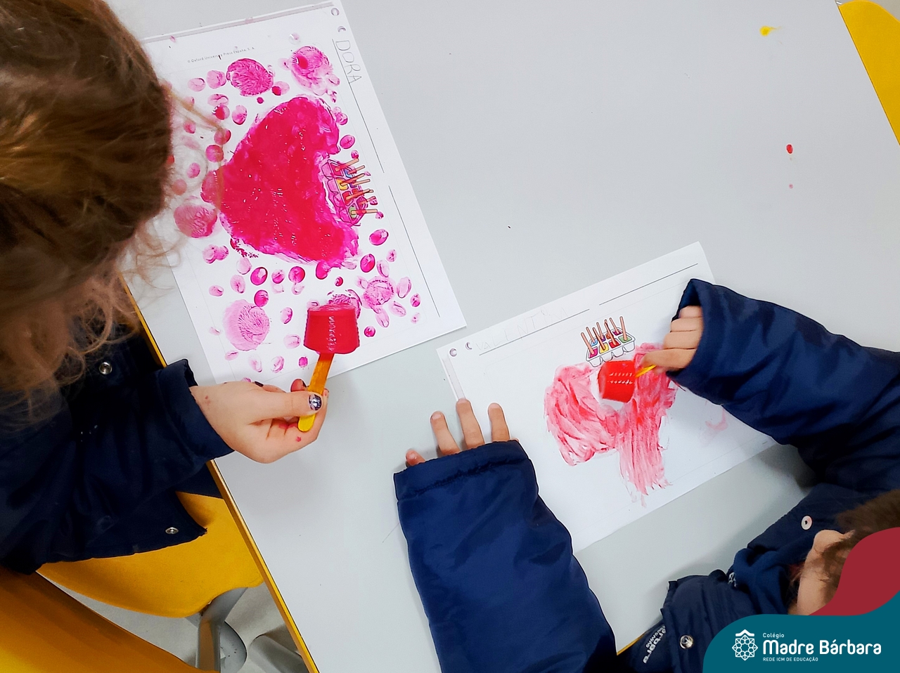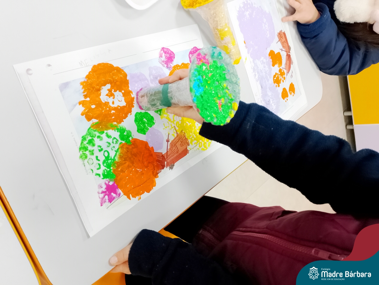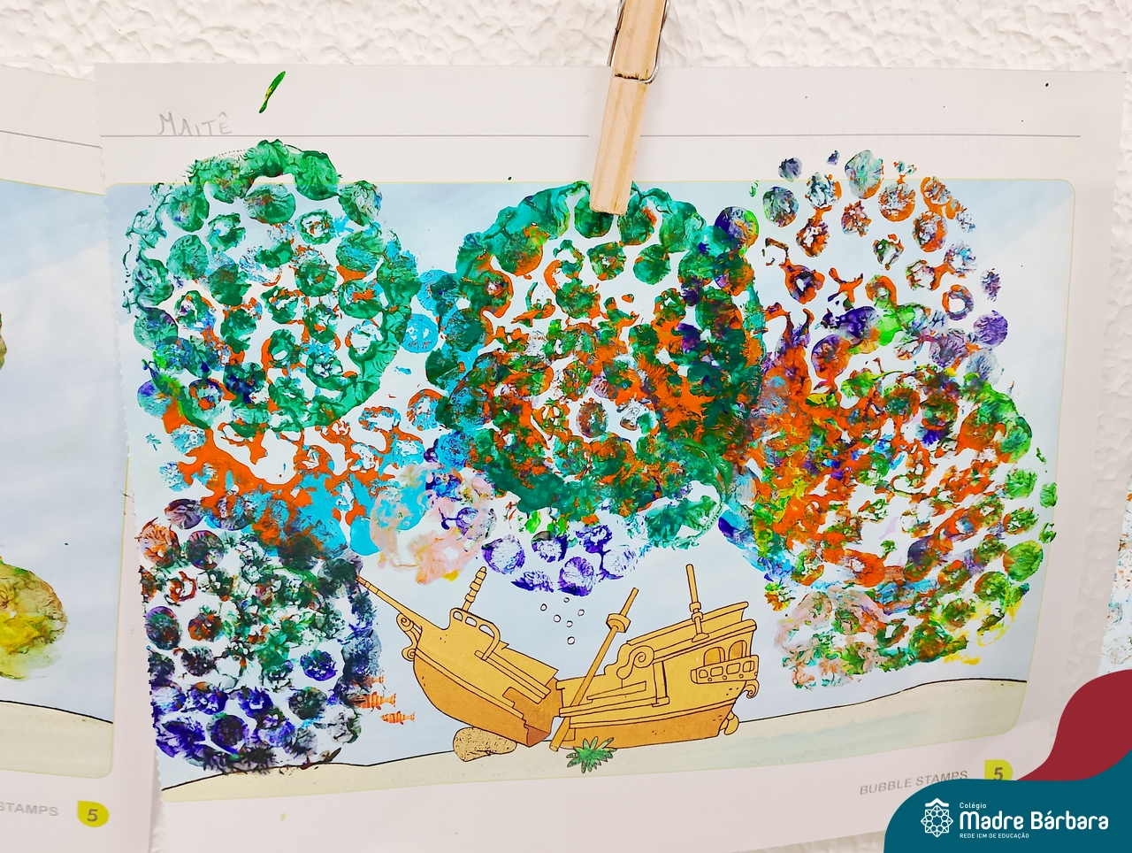 As aulas de língua inglesa do Programa Bilíngue no Colégio Madre Bárbara contam este ano, com práticas de artes através das atividades do livro Little Artists. Os alunos dos níveis 4 e 5, experienciam muitas atividades com estilos diferentes, como bubble painting, shape play, frozen ice paints, collages, car painting, bubble stamps, play dough sculptures, reflection, traces e textures. As aulas têm sido muito coloridas, divertidas e cheias de descobertas e sensações diferentes que as artes nos proporcionam. Seguem abaixo alguns registros.