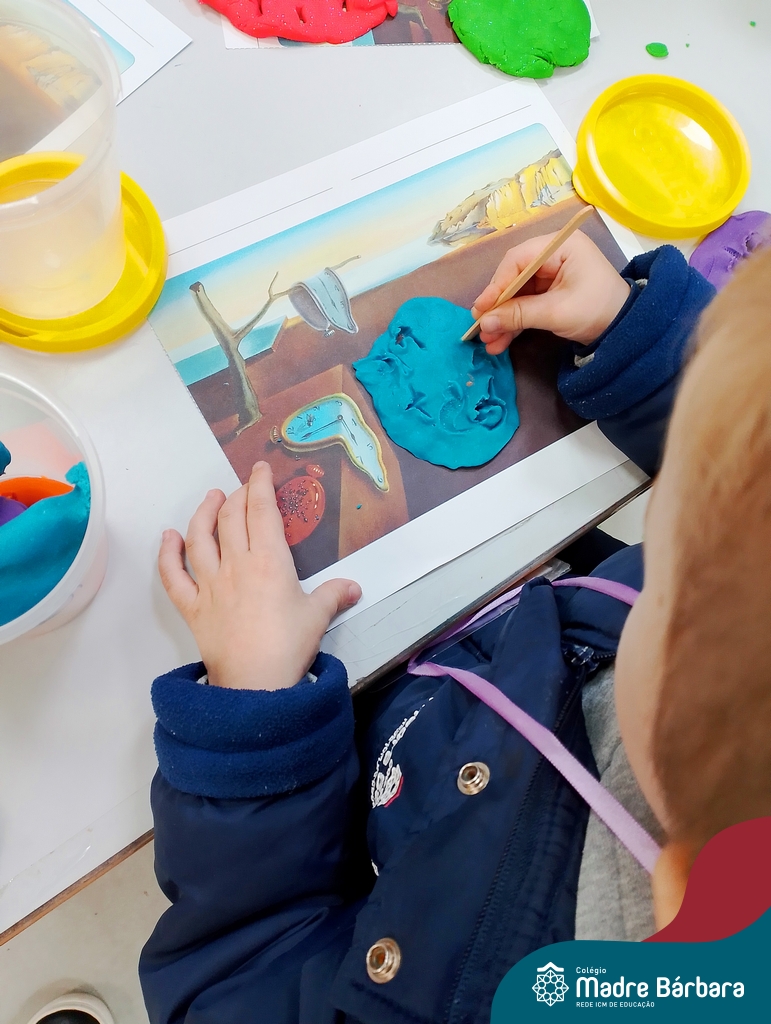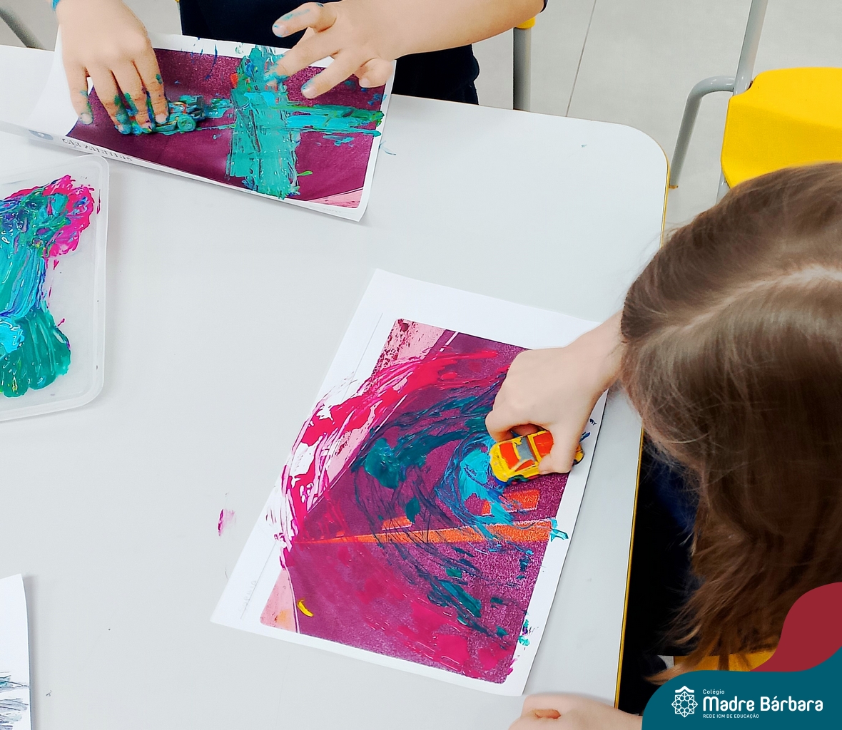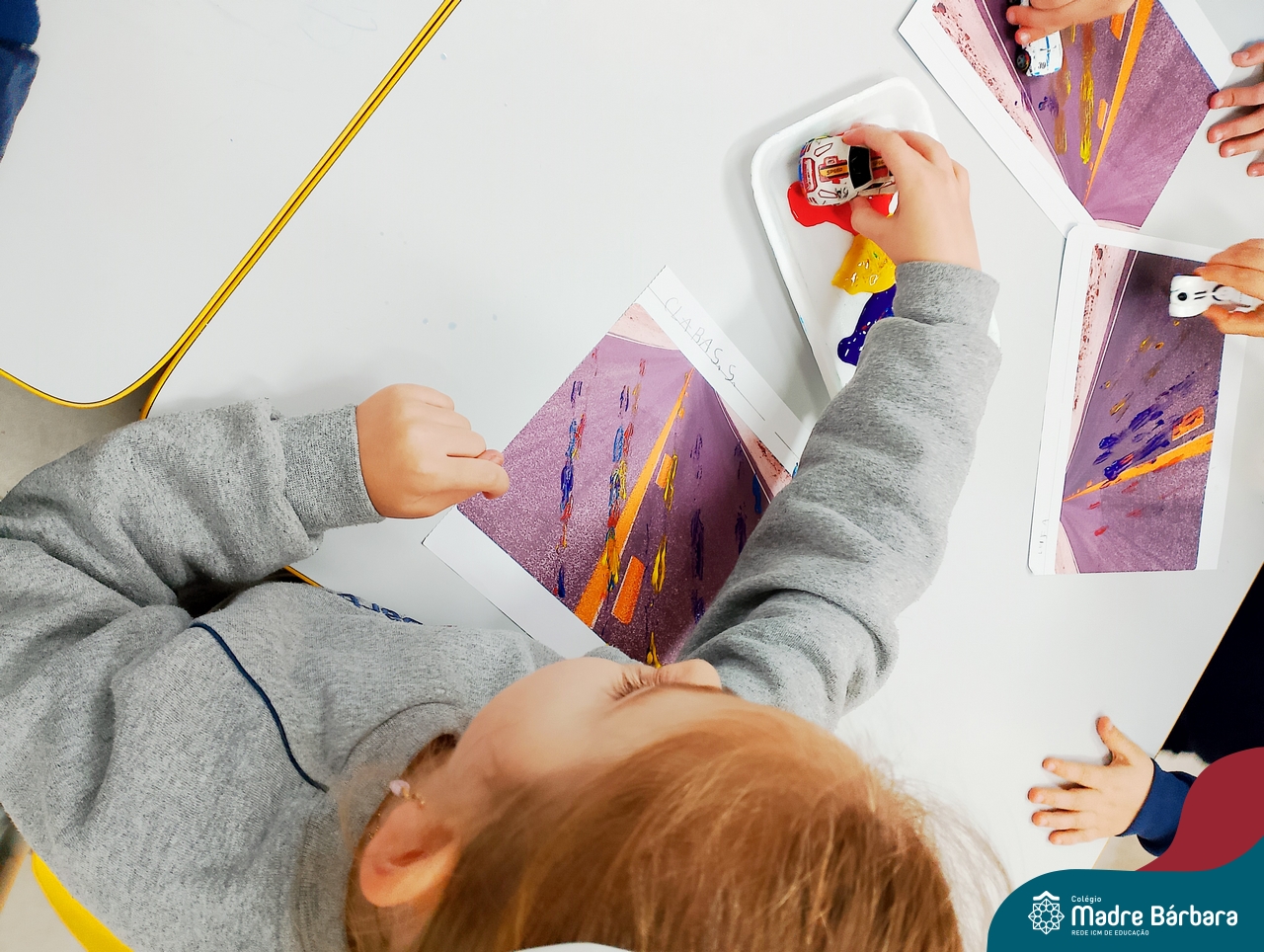 As aulas de língua inglesa do Programa Bilíngue no Colégio Madre Bárbara contam este ano, com práticas de artes através das atividades do livro Little Artists. Os alunos dos níveis 4 e 5, experienciam muitas atividades com estilos diferentes, como bubble painting, shape play, frozen ice paints, collages, car painting, bubble stamps, play dough sculptures, reflection, traces e textures. As aulas têm sido muito coloridas, divertidas e cheias de descobertas e sensações diferentes que as artes nos proporcionam. Seguem abaixo alguns registros.