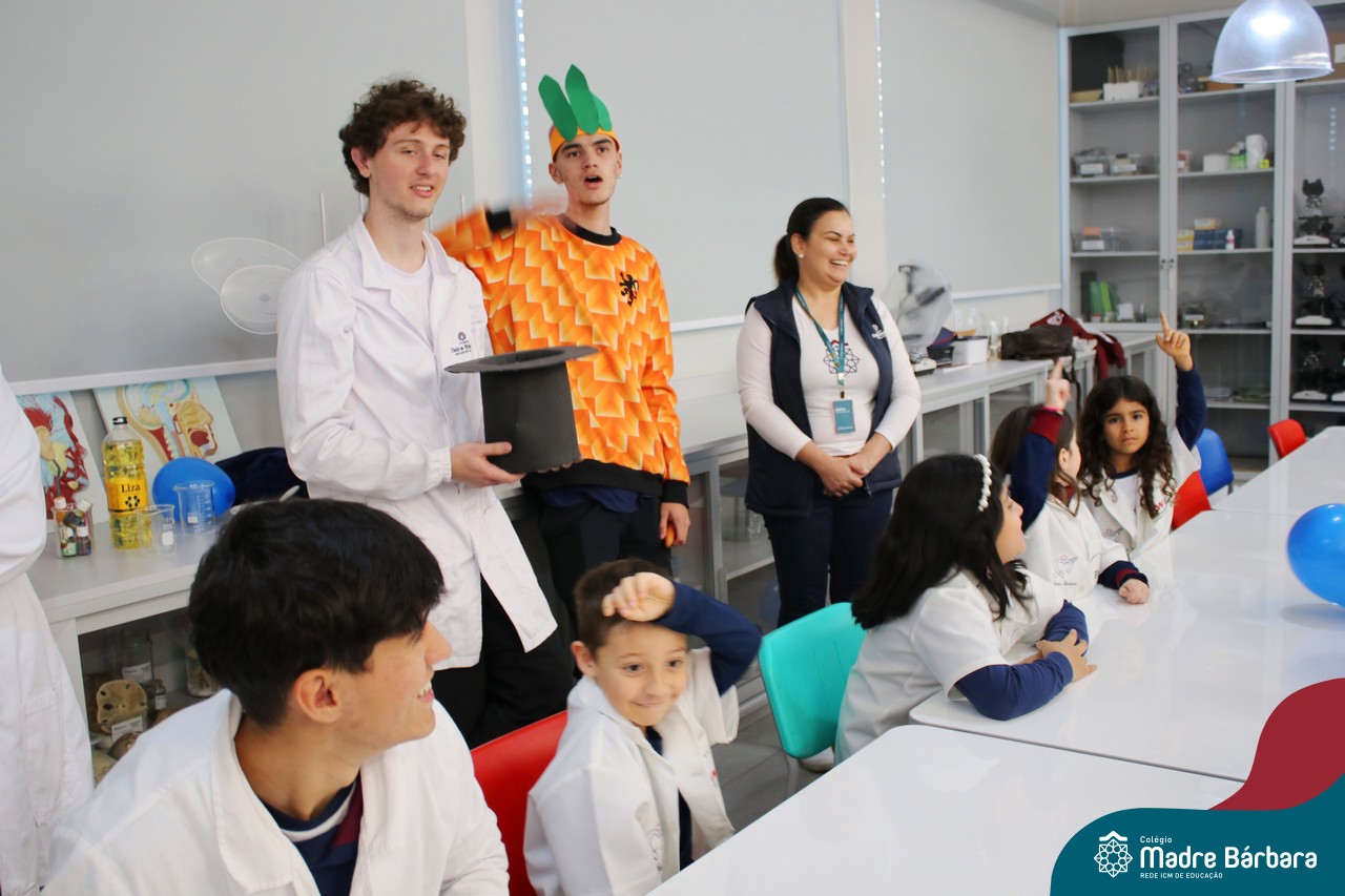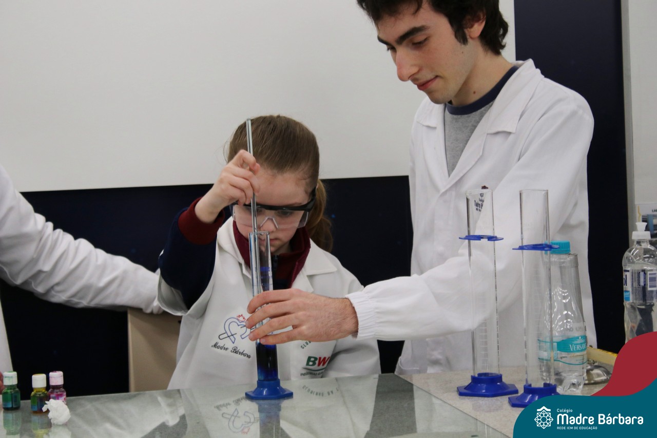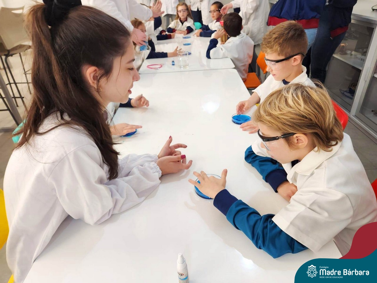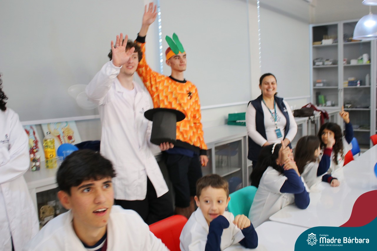A segunda-feira (25.09) contou com história, interpretação, urso de pelúcia, carinho e acompanhado de todos os itens, experiências divertidíssimas para integrar os dindos e afilhados do Laços Afetivos no Laboratório de Ciências. Com a coordenação do professor Aliar Jung, os estudantes do Terceirão realizaram experiências criativas como: uma pasta de dentes para um elefante e um urso, slimes, mágicas e práticas com cores e texturas. O encontro foi planejado pelo Serviço de Orientação Educacional (SOE). Foi um momento especial! Que venha o próximo!