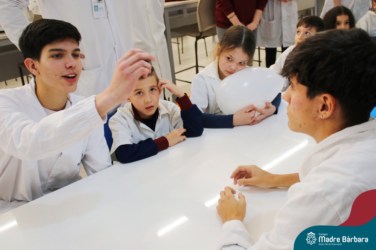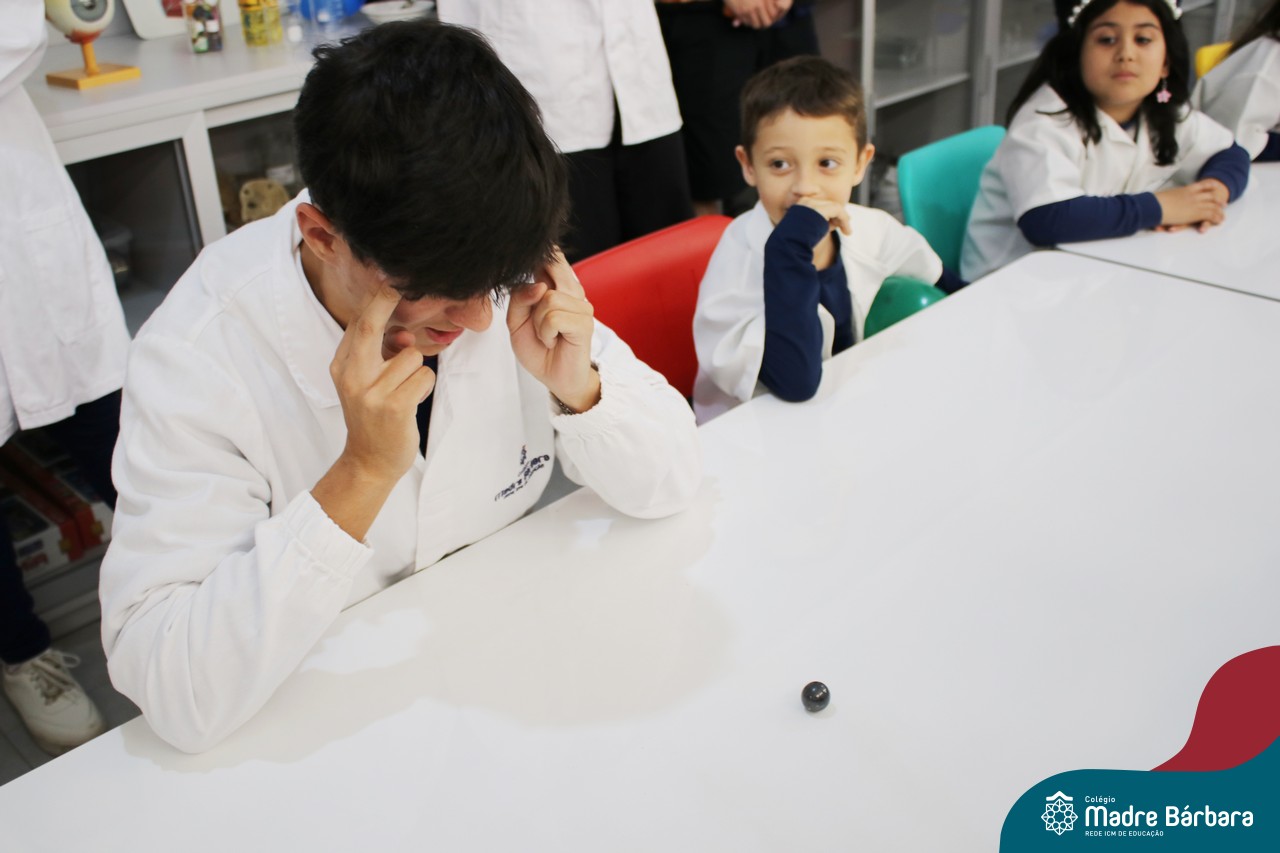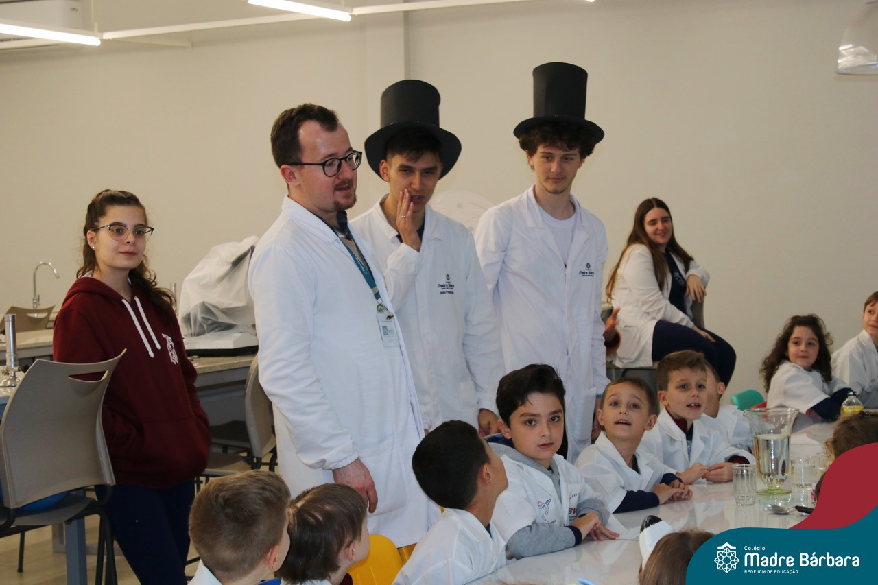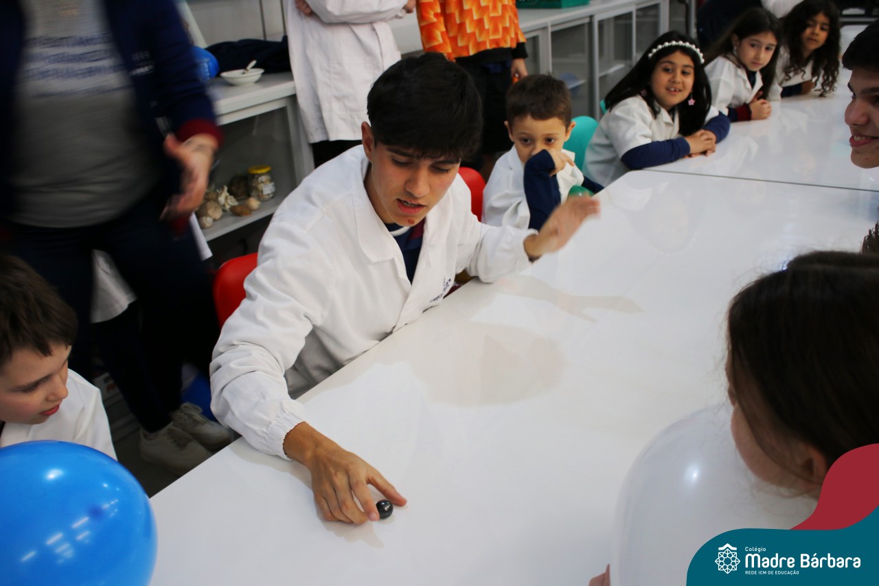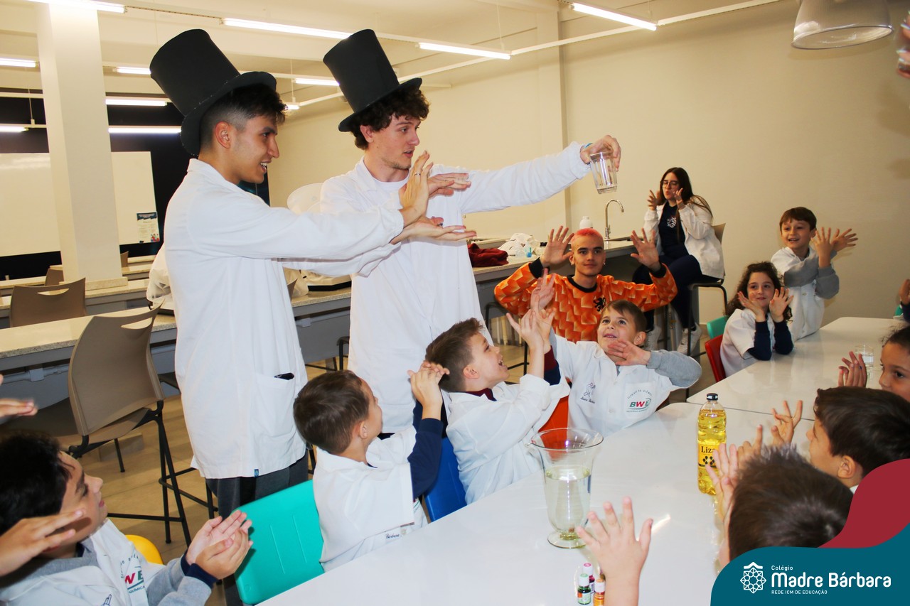 A segunda-feira (25.09) contou com história, interpretação, urso de pelúcia, carinho e acompanhado de todos os itens, experiências divertidíssimas para integrar os dindos e afilhados do Laços Afetivos no Laboratório de Ciências. Com a coordenação do professor Aliar Jung, os estudantes do Terceirão realizaram experiências criativas como: uma pasta de dentes para um elefante e um urso, slimes, mágicas e práticas com cores e texturas. O encontro foi planejado pelo Serviço de Orientação Educacional (SOE). Foi um momento especial! Que venha o próximo!