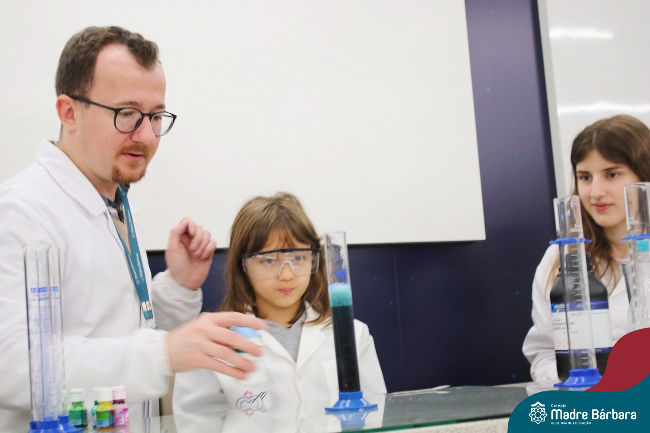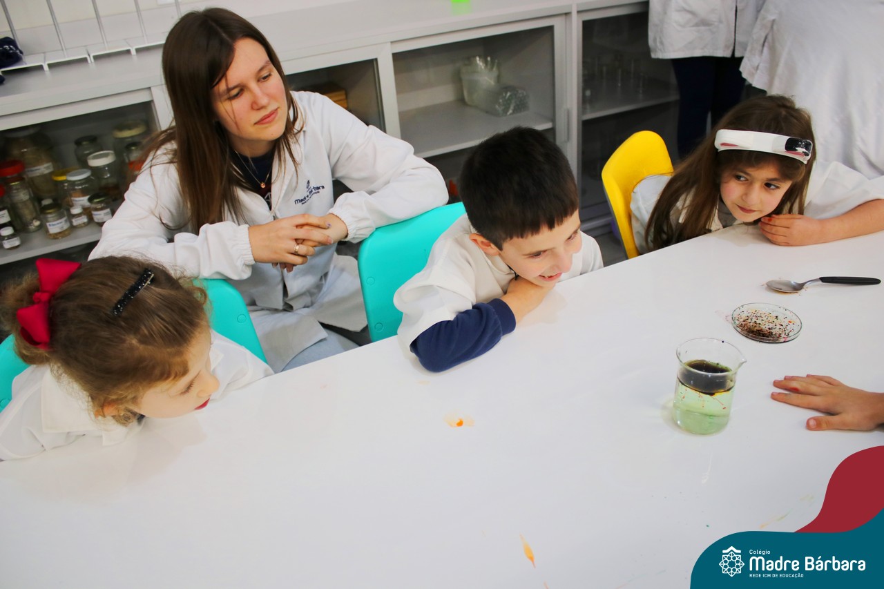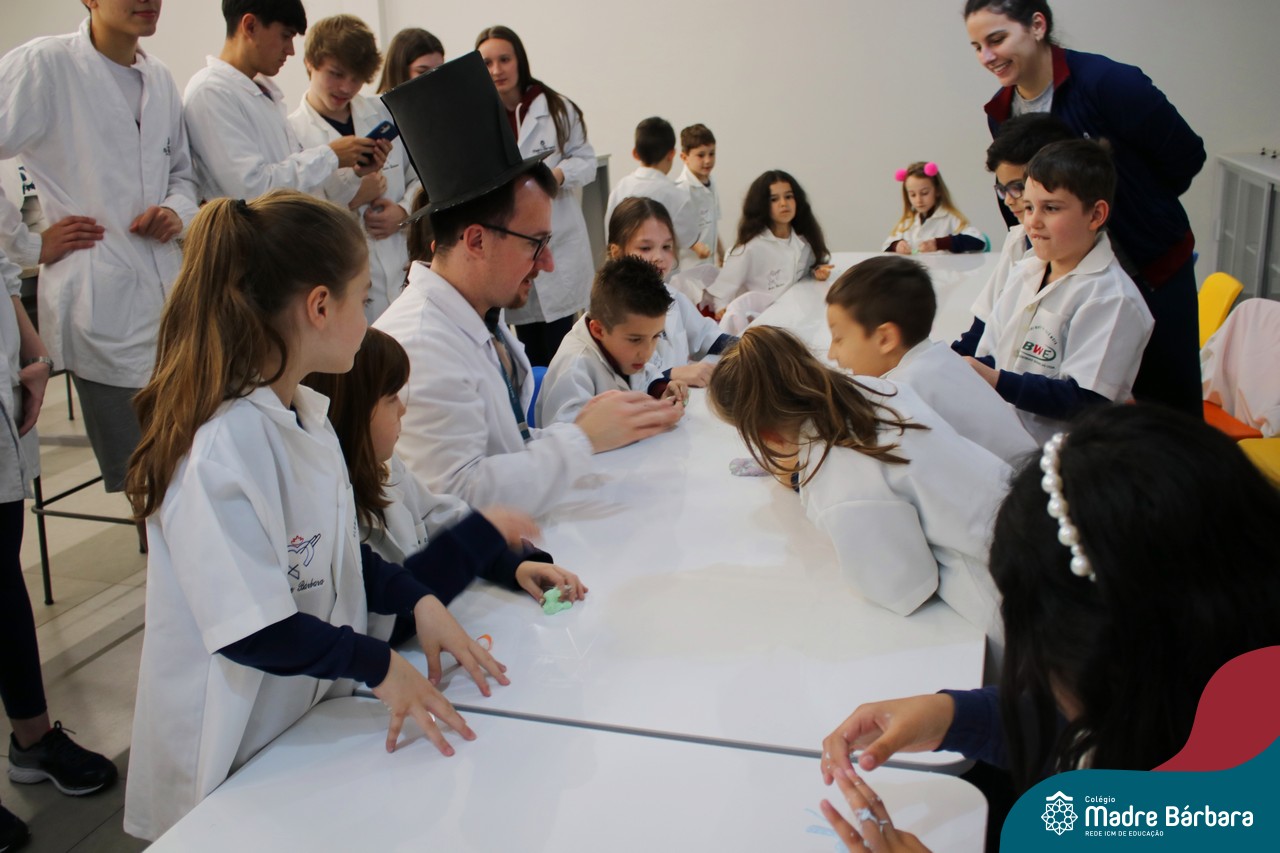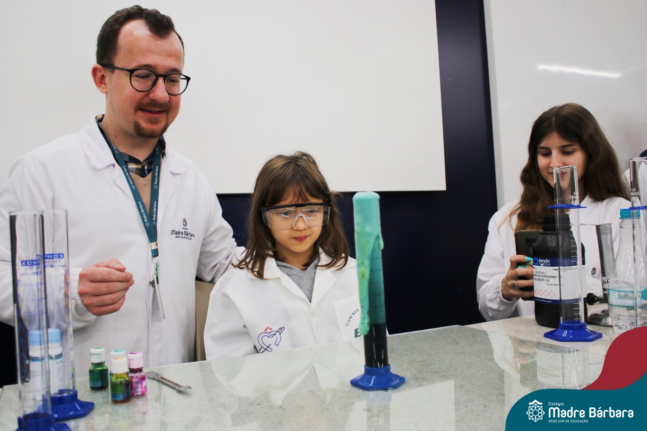 A segunda-feira (25.09) contou com história, interpretação, urso de pelúcia, carinho e acompanhado de todos os itens, experiências divertidíssimas para integrar os dindos e afilhados do Laços Afetivos no Laboratório de Ciências. Com a coordenação do professor Aliar Jung, os estudantes do Terceirão realizaram experiências criativas como: uma pasta de dentes para um elefante e um urso, slimes, mágicas e práticas com cores e texturas. O encontro foi planejado pelo Serviço de Orientação Educacional (SOE). Foi um momento especial! Que venha o próximo!