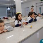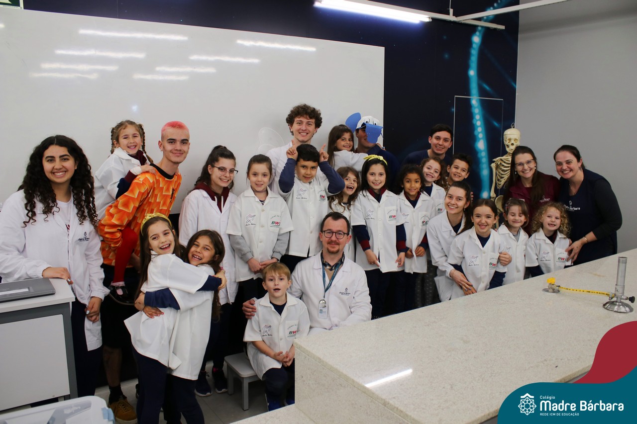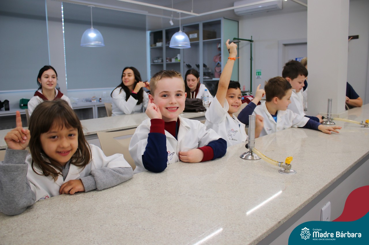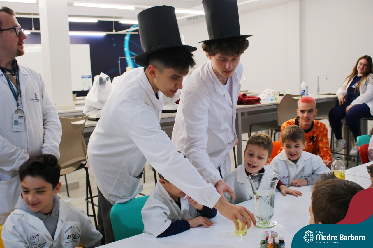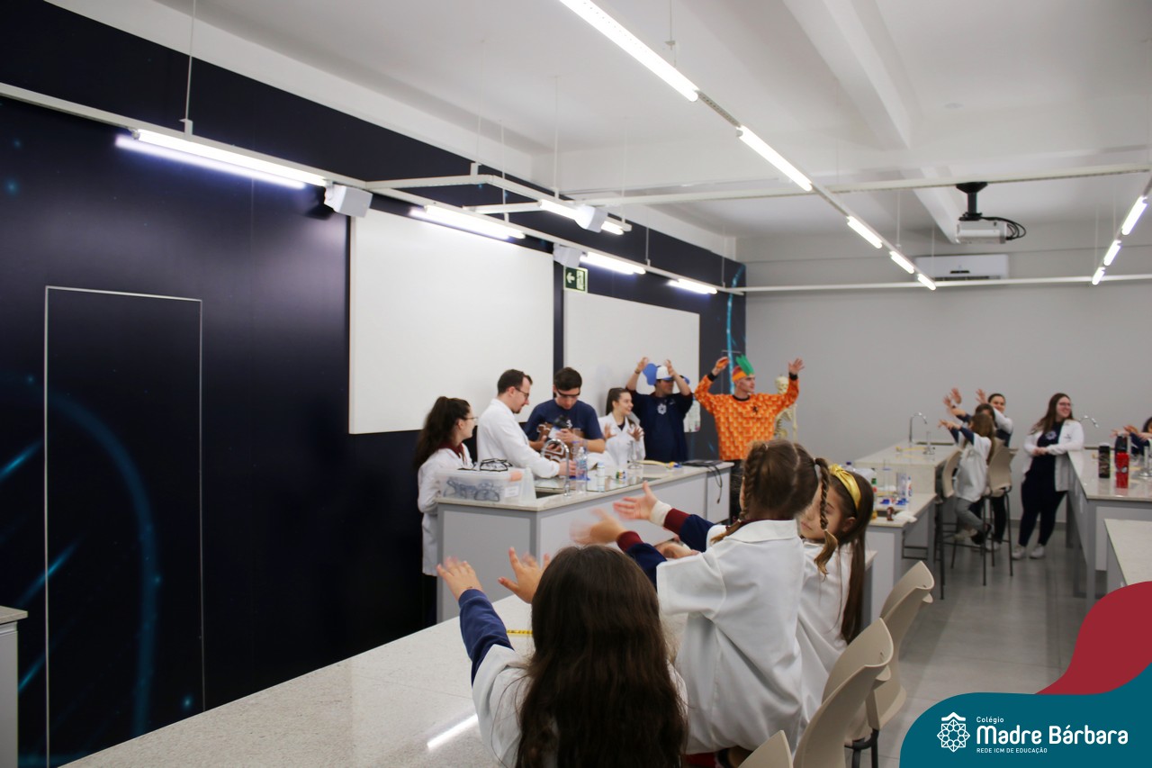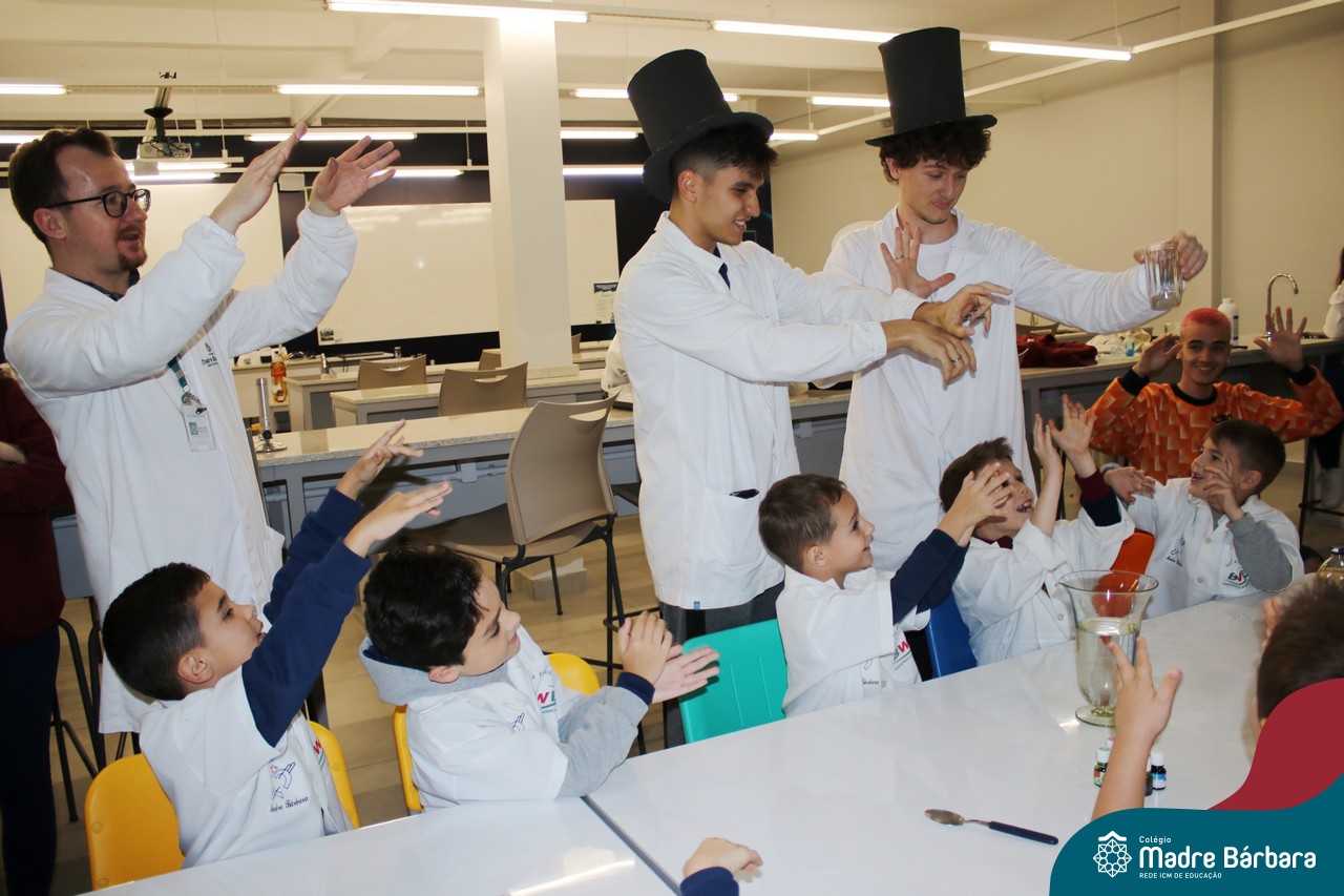 A segunda-feira (25.09) contou com história, interpretação, urso de pelúcia, carinho e acompanhado de todos os itens, experiências divertidíssimas para integrar os dindos e afilhados do Laços Afetivos no Laboratório de Ciências. Com a coordenação do professor Aliar Jung, os estudantes do Terceirão realizaram experiências criativas como: uma pasta de dentes para um elefante e um urso, slimes, mágicas e práticas com cores e texturas. O encontro foi planejado pelo Serviço de Orientação Educacional (SOE). Foi um momento especial! Que venha o próximo!