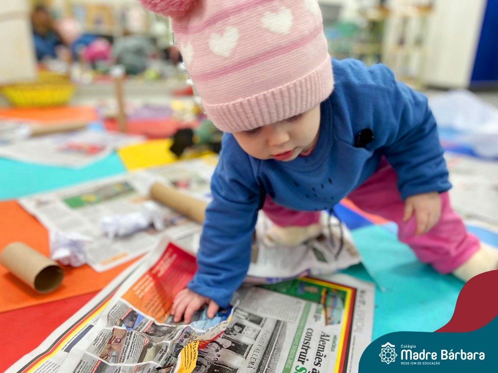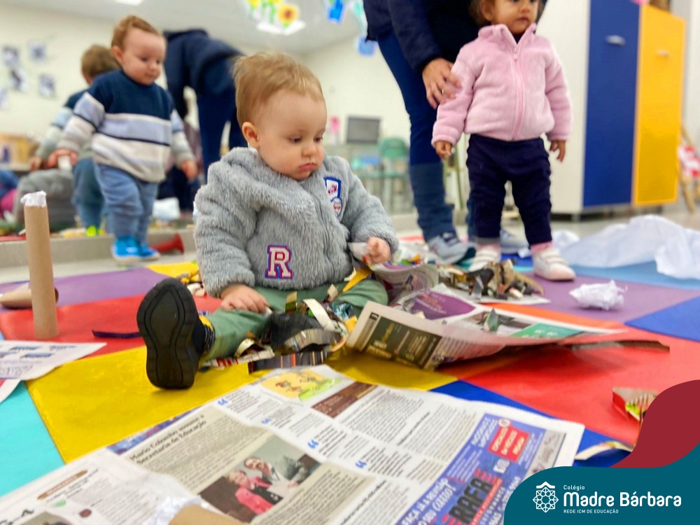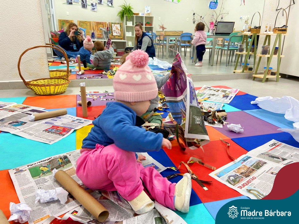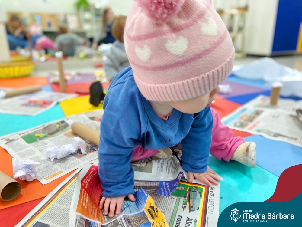 No projeto sobre texturas, as professoras propuseram situações de aprendizagem no espaço do ateliê! As crianças exploraram primeiramente o local e, aos poucos, foram se aproximando dos materiais propostos, criando possibilidades de interação. “Ser criança é ter um mundo que ela mesma constrói, um mundo cheio de sonhos e criação”. (Ocinéia)