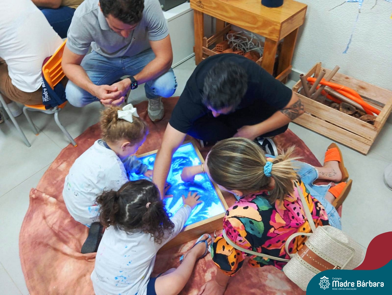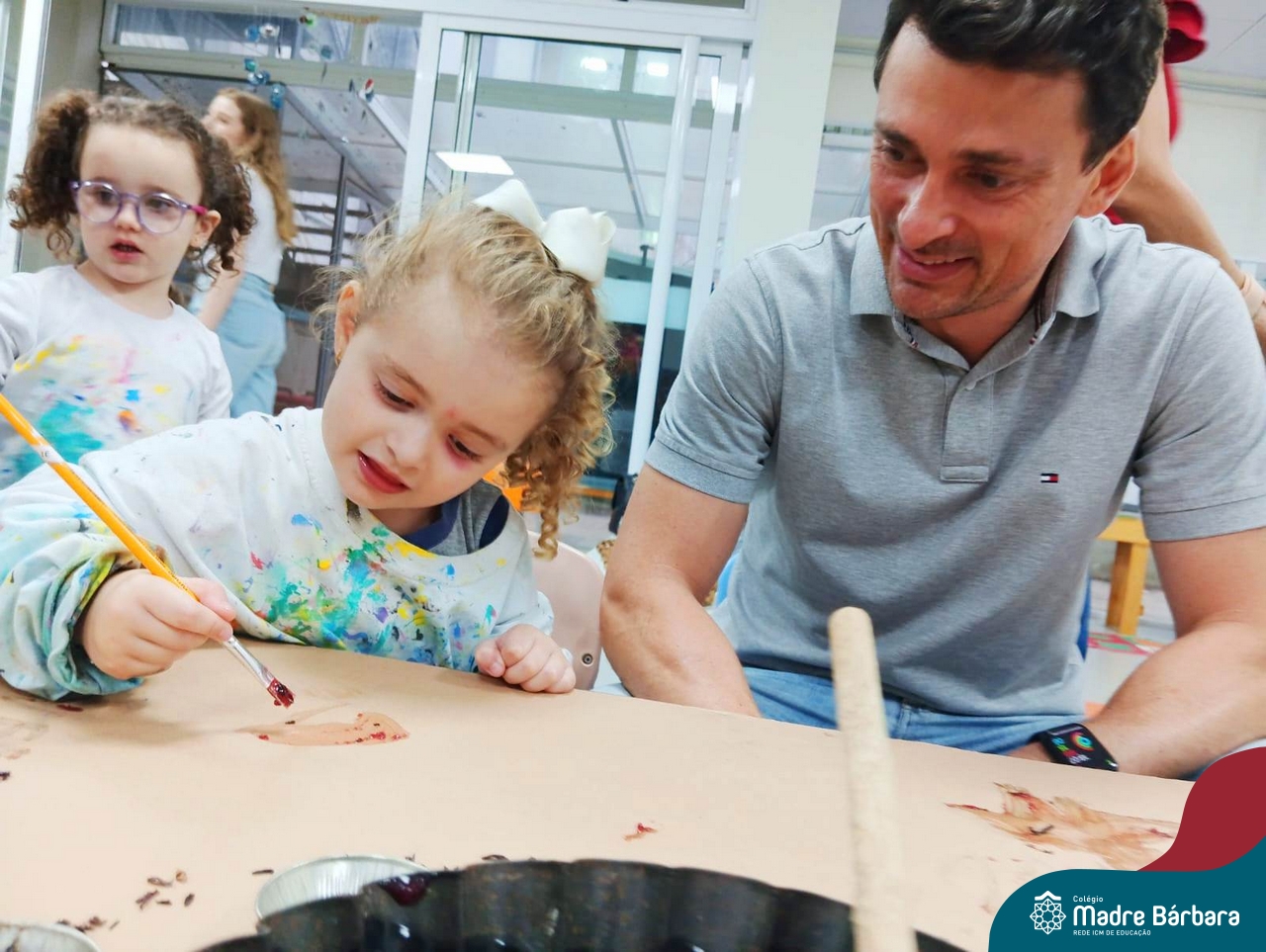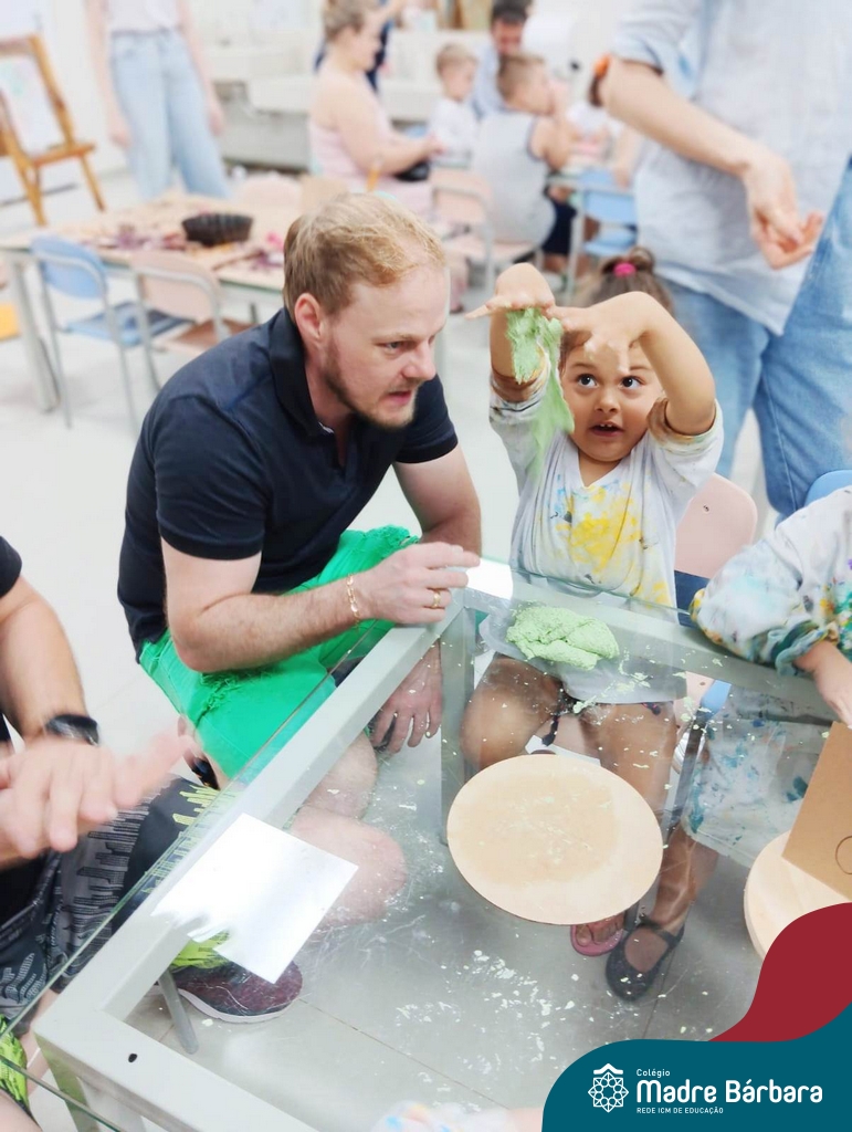 No final da tarde do dia 11 de novembro, ocorreu um encontro especial entre as famílias e as crianças do nível 3C no Ateliê da escola a partir do nosso projeto “Explorar, experienciar e criar”! Foi uma oportunidade única para que os pais mergulhassem nos contextos artísticos e nas situações de experimentação que as crianças exploraram ao projeto. Durante a vivência, pais e filhos compartilharam momentos ricos em cores, formas, texturas e expressões, explorando juntos as situações preparadas pelas professoras Magali e Vitória e pela atelierista Camila. Foi lindo ver a interação, o aprendizado compartilhado e a alegria de cada família em descobrir o mundo da arte pelos olhos das crianças.