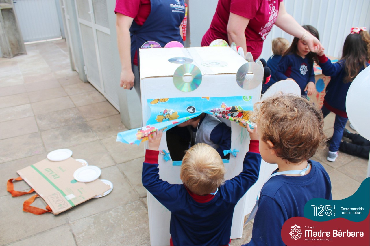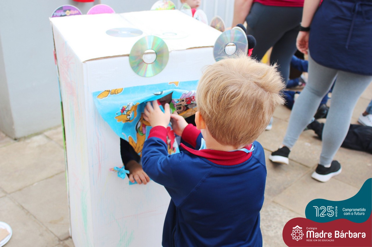 No último dia 04.11, as turmas dos Níveis 1C, 1D, 3A e 3C, realizaram uma linda exposição de “esculturas” construídas em parceria com as famílias. A situação surgiu a partir da contação da história “O Homem que amava caixas” e todos se envolveram muito, culminando nesta exposição encantadora!!!
