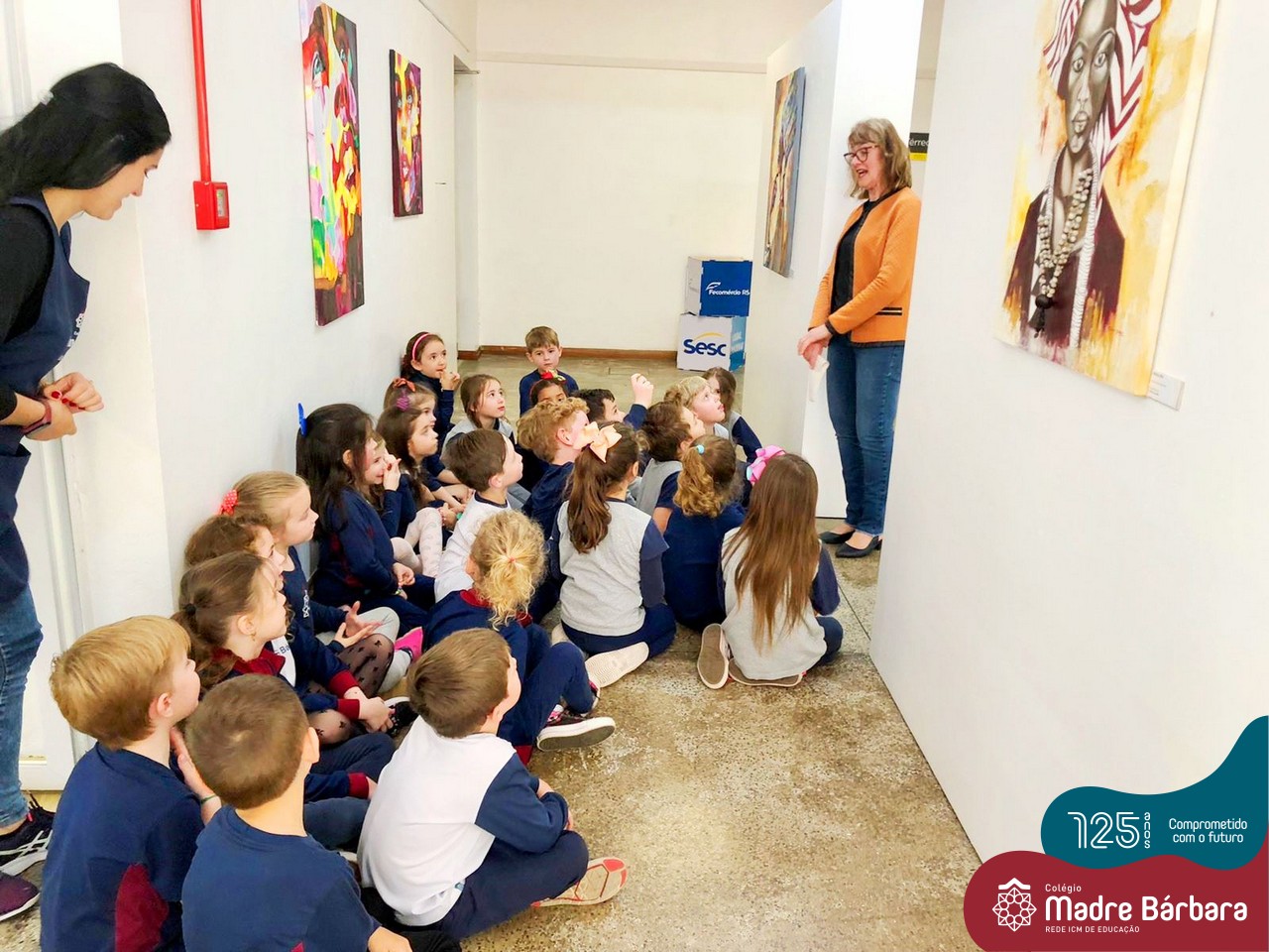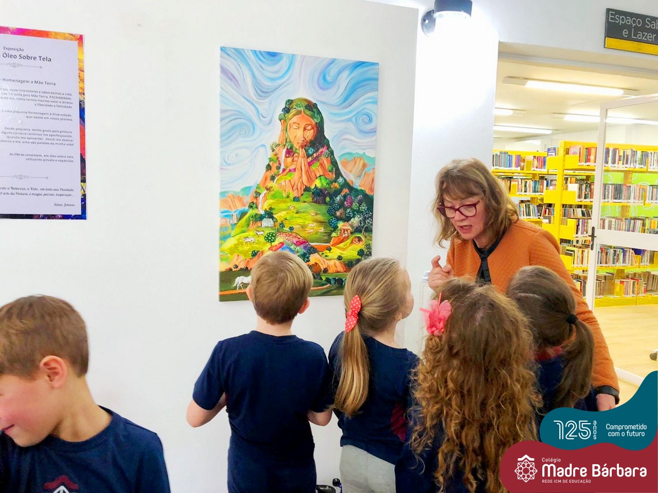 Na segunda-feira (26.09), a turma do Nível 5D acompanhadas da professora Jéssica e monitora Talia, realizaram uma visitação ao Sesc na Exposição de Pintura Óleo sobre Tela da artista e avó de uma criança, Sônia Johann. A exposição tem por objetivo principal realizar uma homenagem à diversidade – homenagem à Mãe Terra!