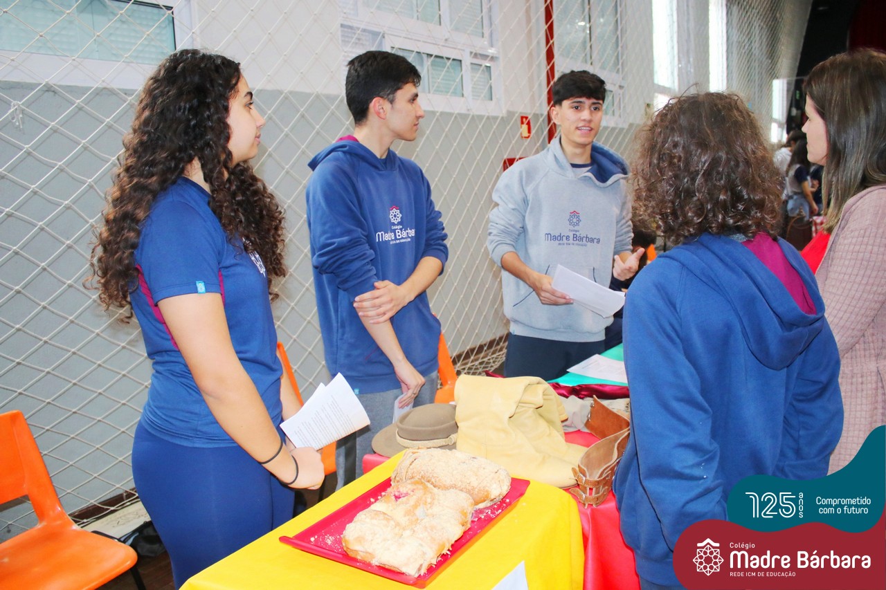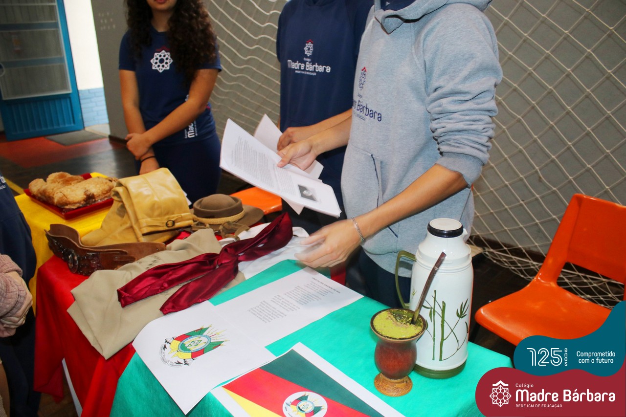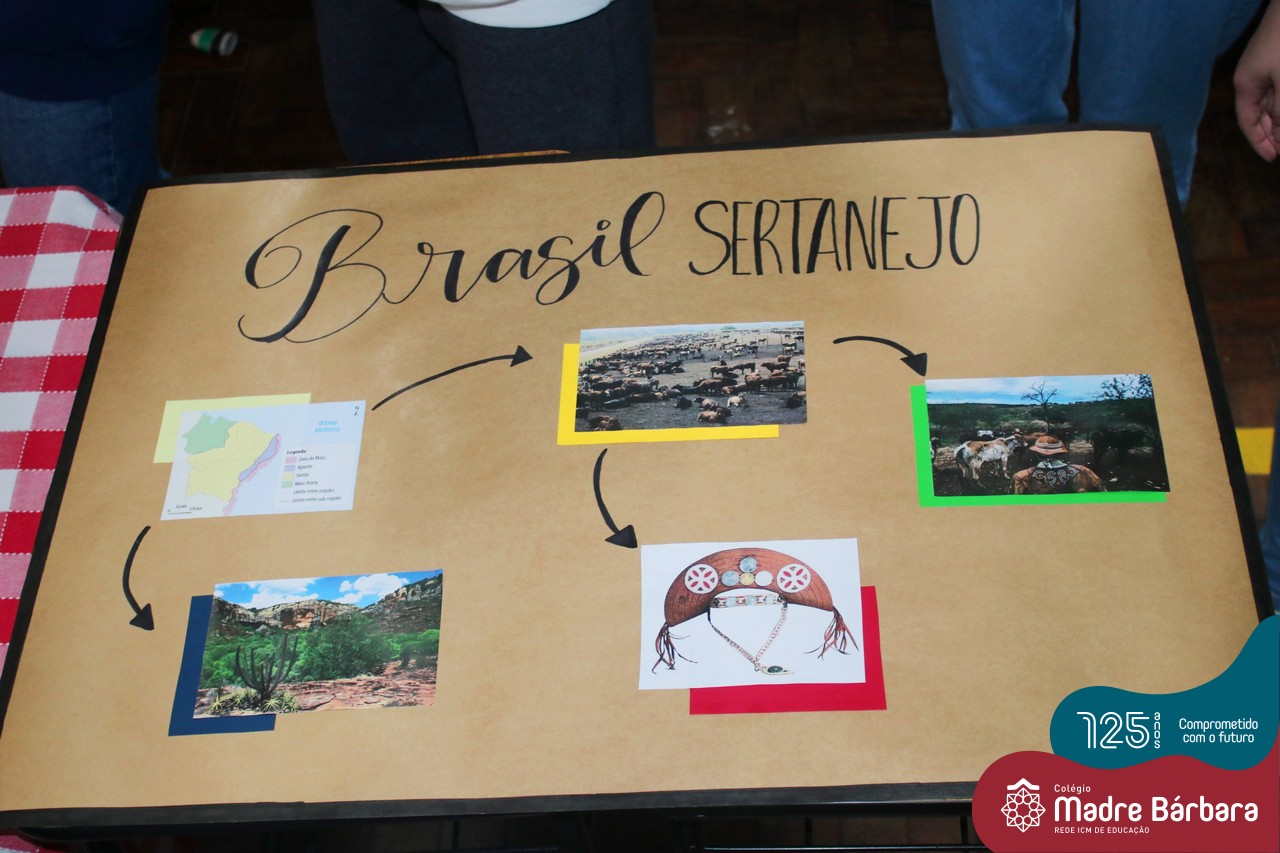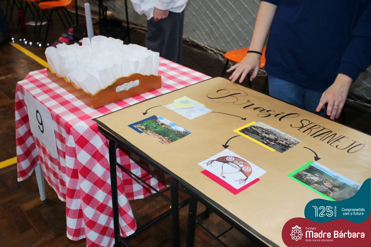 Na última sexta-feira (02.09), dentro da programação da Semana da Pátria, ocorreu a exposição “Os Brasis de Darcy Ribeiro”. A partir da obra do autor e orientados pelo professor Lucas Schneider, os alunos do segundo ano do ensino médio realizaram uma mostra de elementos das culturas regionais que integram a densa teia de histórias, saberes e hábitos que compõem a cultura brasileira. Foi um momento de muitas aprendizagens para os estudantes que, trabalhando em coletivo, deveriam buscar as origens das características da cultura regional que apresentaram e tornar atrativas e compreensíveis aos alunos do ensino fundamental e médio, que visitaram a exposição.
