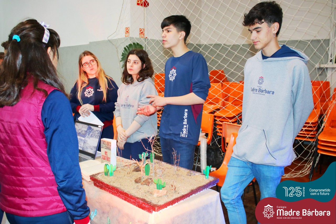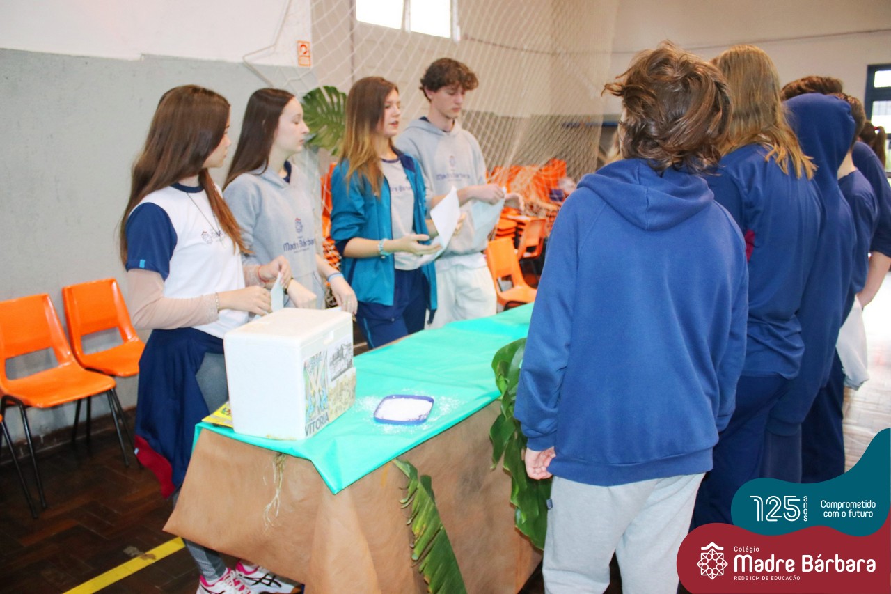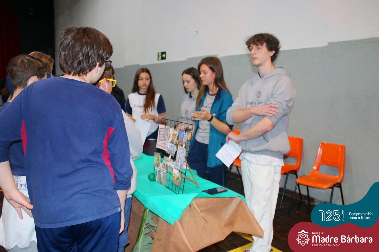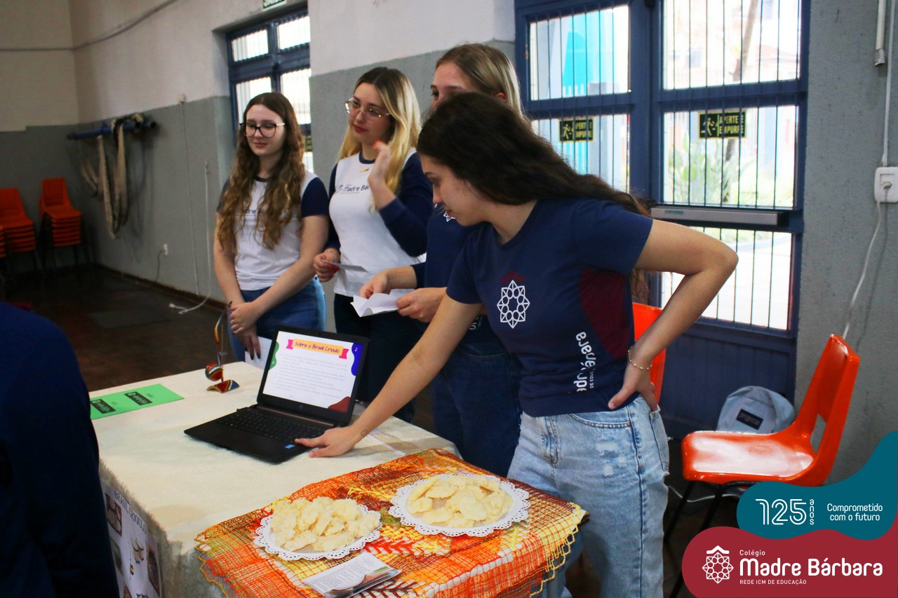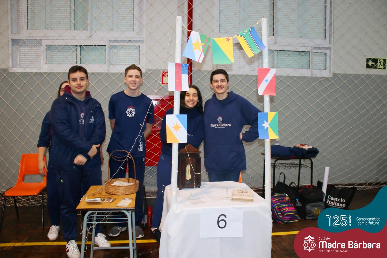 Na última sexta-feira (02.09), dentro da programação da Semana da Pátria, ocorreu a exposição “Os Brasis de Darcy Ribeiro”. A partir da obra do autor e orientados pelo professor Lucas Schneider, os alunos do segundo ano do ensino médio realizaram uma mostra de elementos das culturas regionais que integram a densa teia de histórias, saberes e hábitos que compõem a cultura brasileira. Foi um momento de muitas aprendizagens para os estudantes que, trabalhando em coletivo, deveriam buscar as origens das características da cultura regional que apresentaram e tornar atrativas e compreensíveis aos alunos do ensino fundamental e médio, que visitaram a exposição.