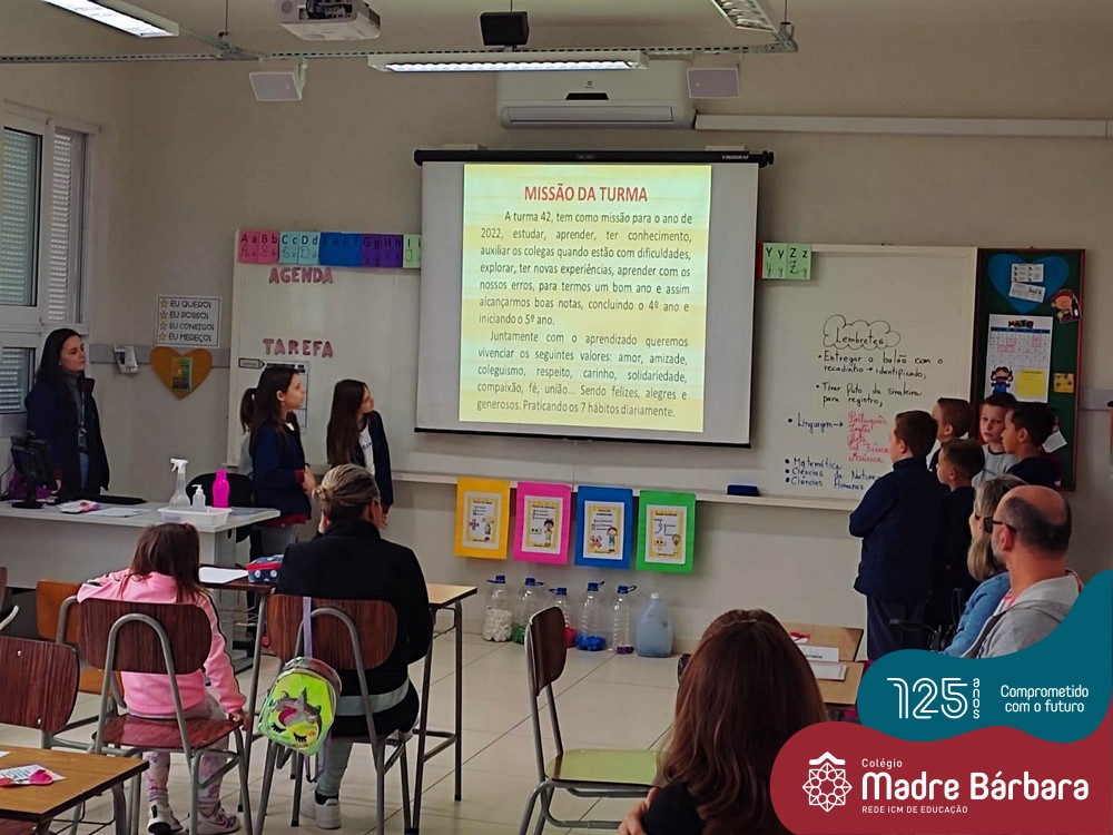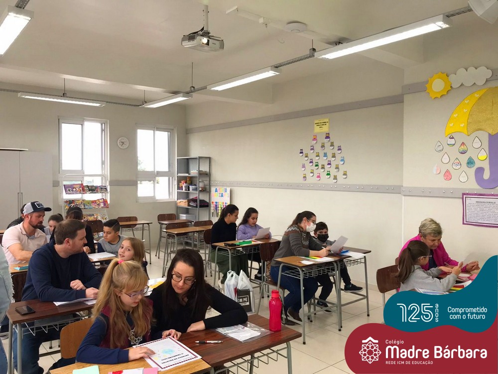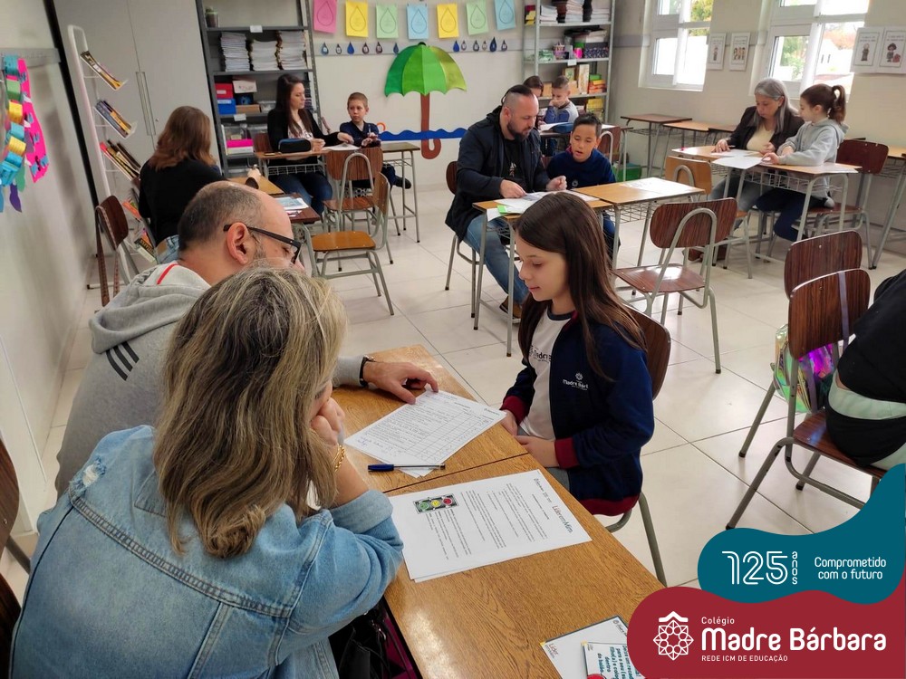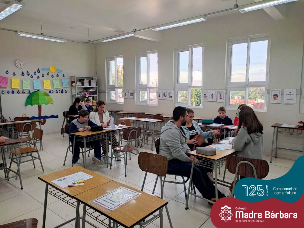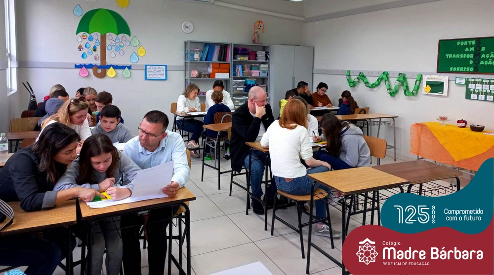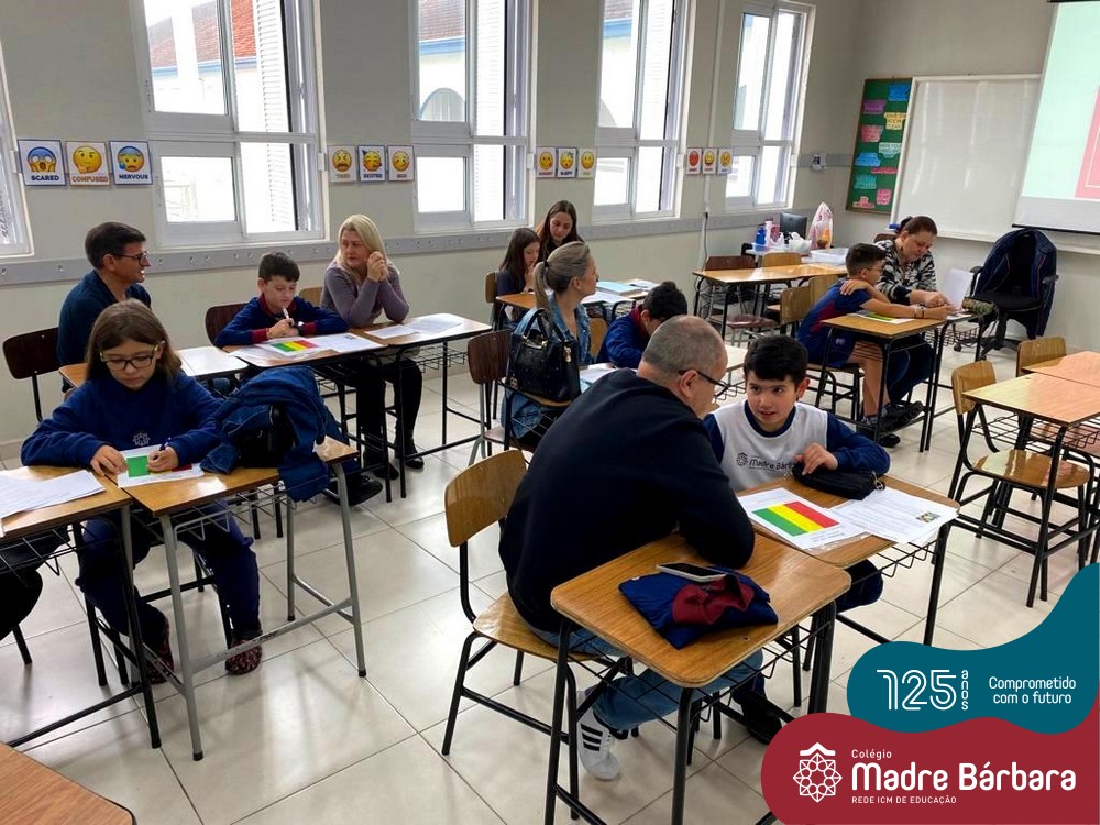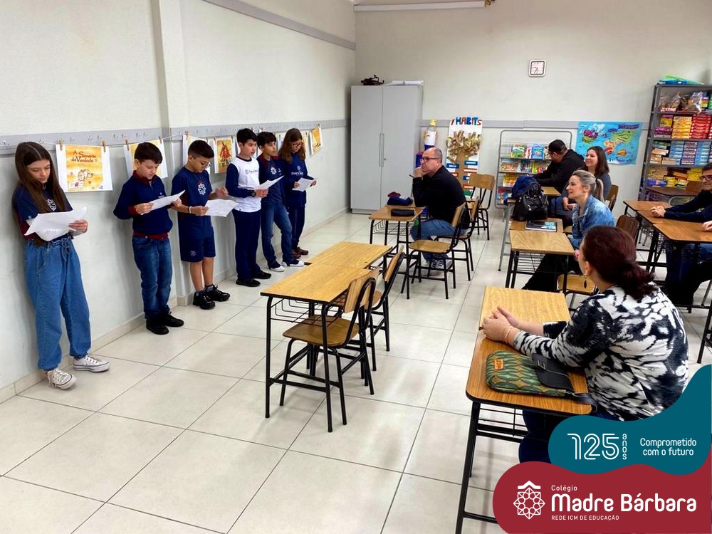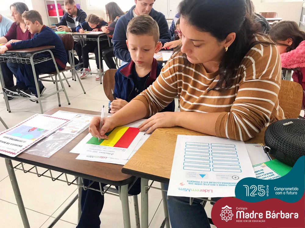 No sábado, dia 28.05, ocorreu no Colégio Madre Bárbara – Rede ICM um momento muito especial, envolvendo os alunos e pais dos 4º e 5º anos, onde refletiu-se sobre a caminhada de cada aluno ao longo do primeiro trimestre, compreendendo o avaliar como uma forma de pensar de maneira crítica sobre algo para então formarmos uma opinião ou tomarmos uma decisão. Foi apresentado pelos alunos sua autoavaliação, que é uma reflexão crítica que recai sobre a forma que pensam, sentem, agem e vem o mundo.