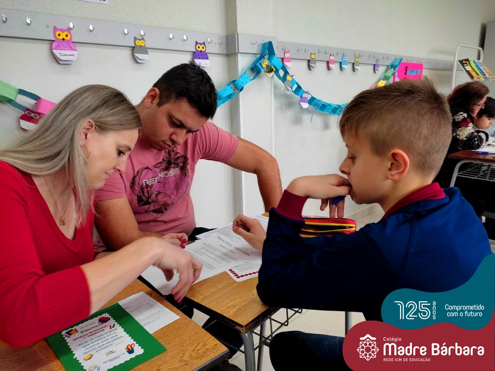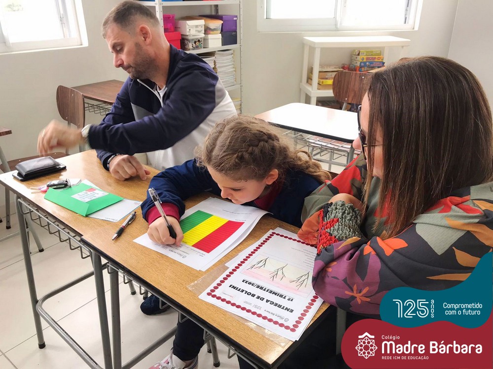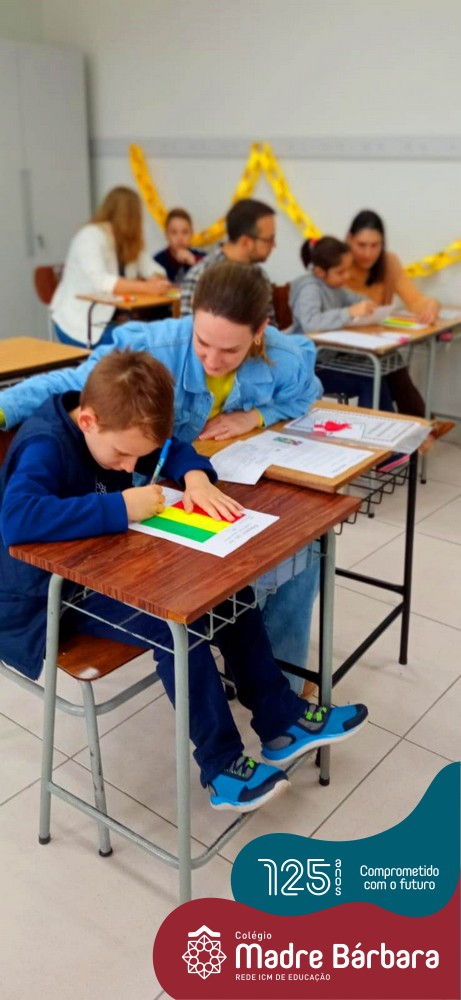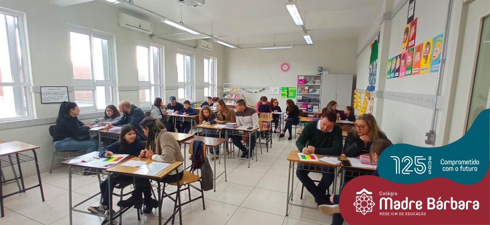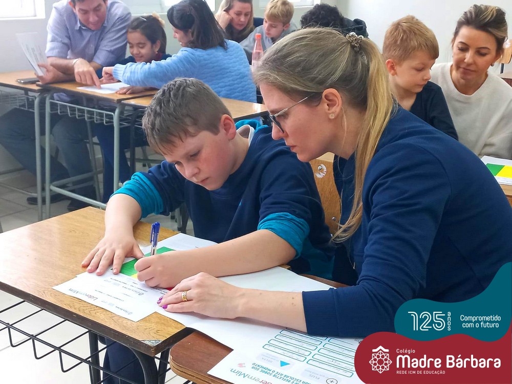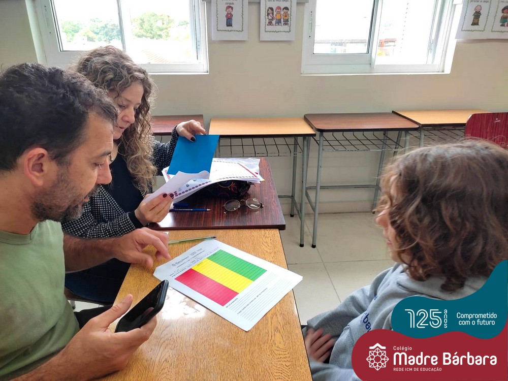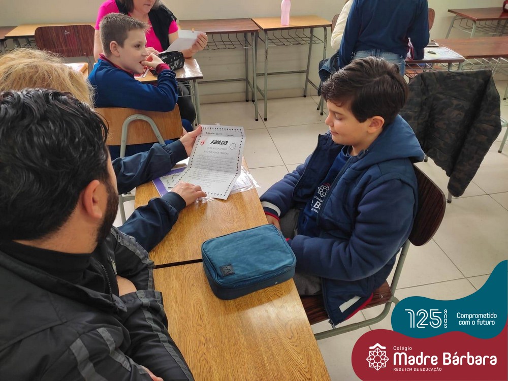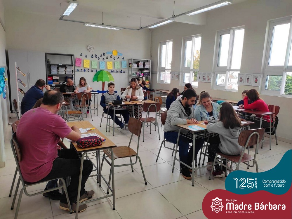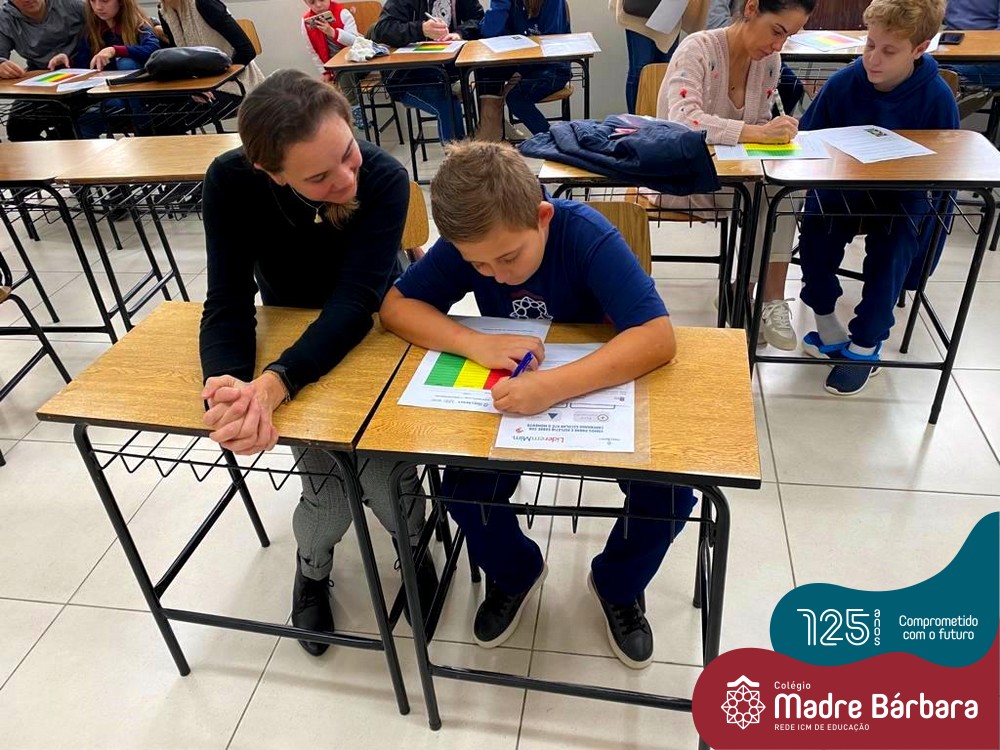 No sábado, dia 28.05, ocorreu no Colégio Madre Bárbara – Rede ICM um momento muito especial, envolvendo os alunos e pais dos 4º e 5º anos, onde refletiu-se sobre a caminhada de cada aluno ao longo do primeiro trimestre, compreendendo o avaliar como uma forma de pensar de maneira crítica sobre algo para então formarmos uma opinião ou tomarmos uma decisão. Foi apresentado pelos alunos sua autoavaliação, que é uma reflexão crítica que recai sobre a forma que pensam, sentem, agem e vem o mundo.