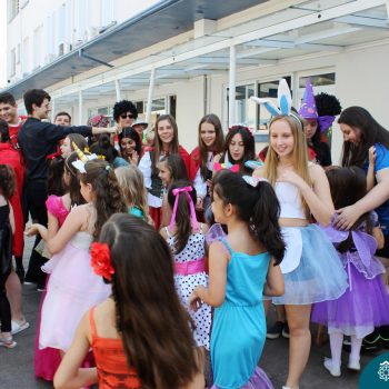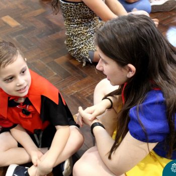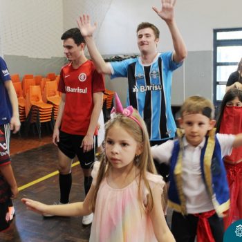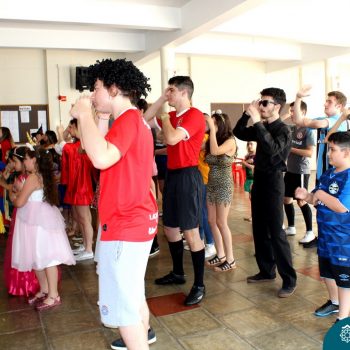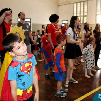 A despedida do Programa Laços Afetivos 2019 não poderia ser mais divertida! Os dindos do Terceirão e os afilhados do 1º ano do Ensino Fundamental – Anos Iniciais podiam ser aquilo que quisessem nessa segunda-feira (25.11). Foi realizada no turno da manhã e da tarde a Festa à Fantasia com desfile, muita música e dança para animar todos! As atividades do Laços Afetivos encerraram, mas ainda tem diversos dias antes do término das aulas para esmagar o afilhado e curtir muito o dindo. O Programa Laços Afetivos é realizado pelo Serviço de Orientação Educacional (SOE). Ano que vem tem mais!