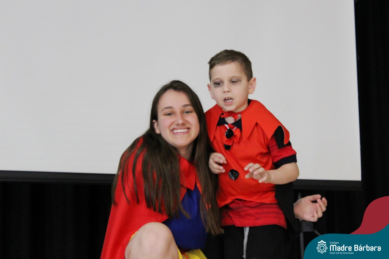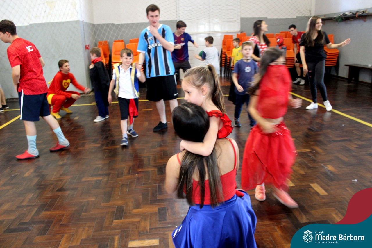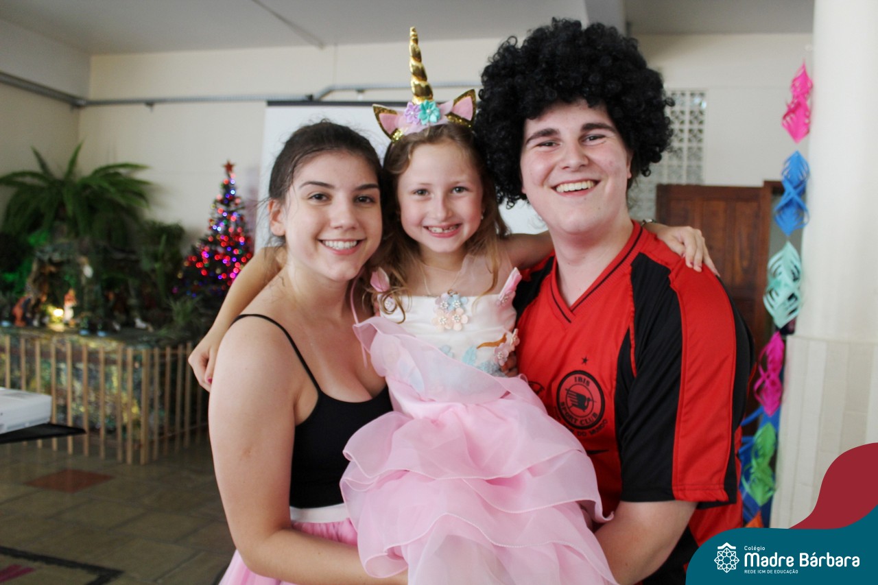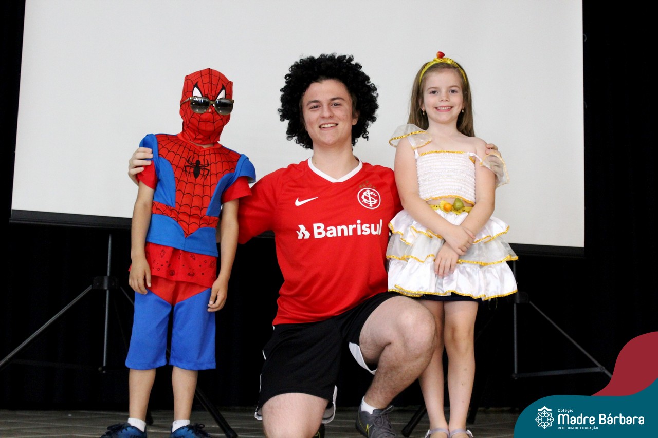 A despedida do Programa Laços Afetivos 2019 não poderia ser mais divertida! Os dindos do Terceirão e os afilhados do 1º ano do Ensino Fundamental – Anos Iniciais podiam ser aquilo que quisessem nessa segunda-feira (25.11). Foi realizada no turno da manhã e da tarde a Festa à Fantasia com desfile, muita música e dança para animar todos! As atividades do Laços Afetivos encerraram, mas ainda tem diversos dias antes do término das aulas para esmagar o afilhado e curtir muito o dindo. O Programa Laços Afetivos é realizado pelo Serviço de Orientação Educacional (SOE). Ano que vem tem mais!