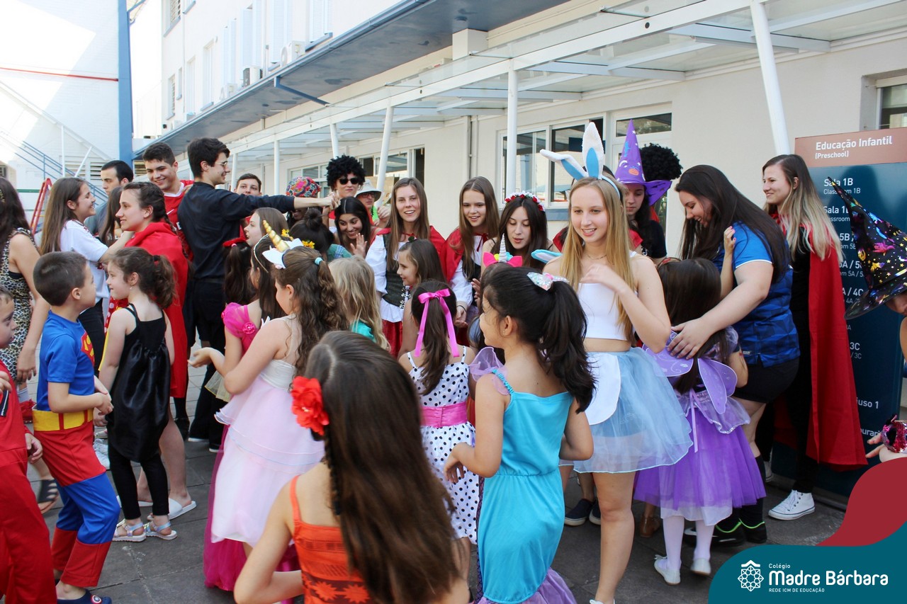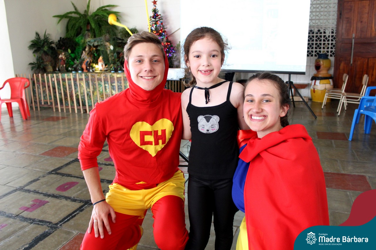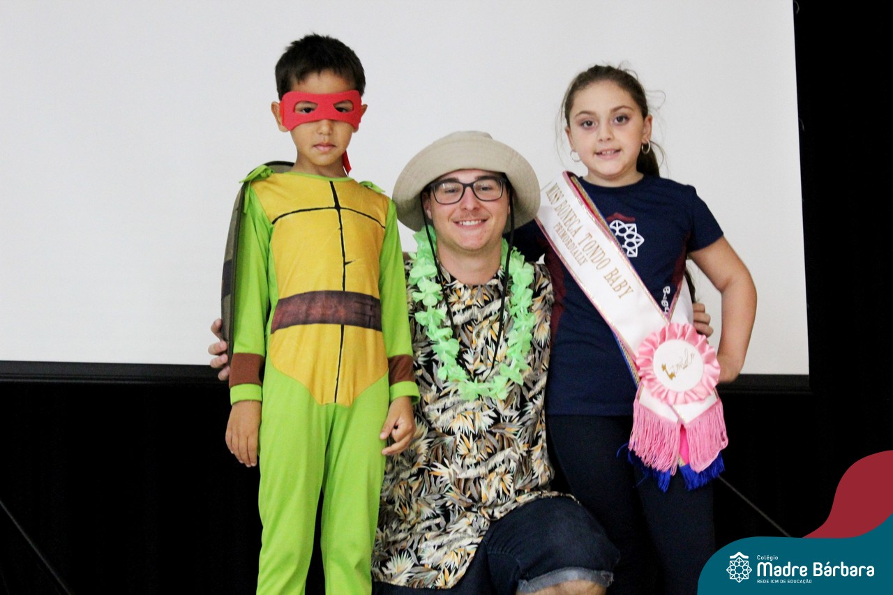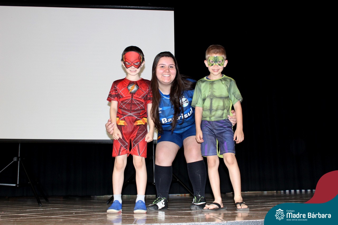 A despedida do Programa Laços Afetivos 2019 não poderia ser mais divertida! Os dindos do Terceirão e os afilhados do 1º ano do Ensino Fundamental – Anos Iniciais podiam ser aquilo que quisessem nessa segunda-feira (25.11). Foi realizada no turno da manhã e da tarde a Festa à Fantasia com desfile, muita música e dança para animar todos! As atividades do Laços Afetivos encerraram, mas ainda tem diversos dias antes do término das aulas para esmagar o afilhado e curtir muito o dindo. O Programa Laços Afetivos é realizado pelo Serviço de Orientação Educacional (SOE). Ano que vem tem mais!