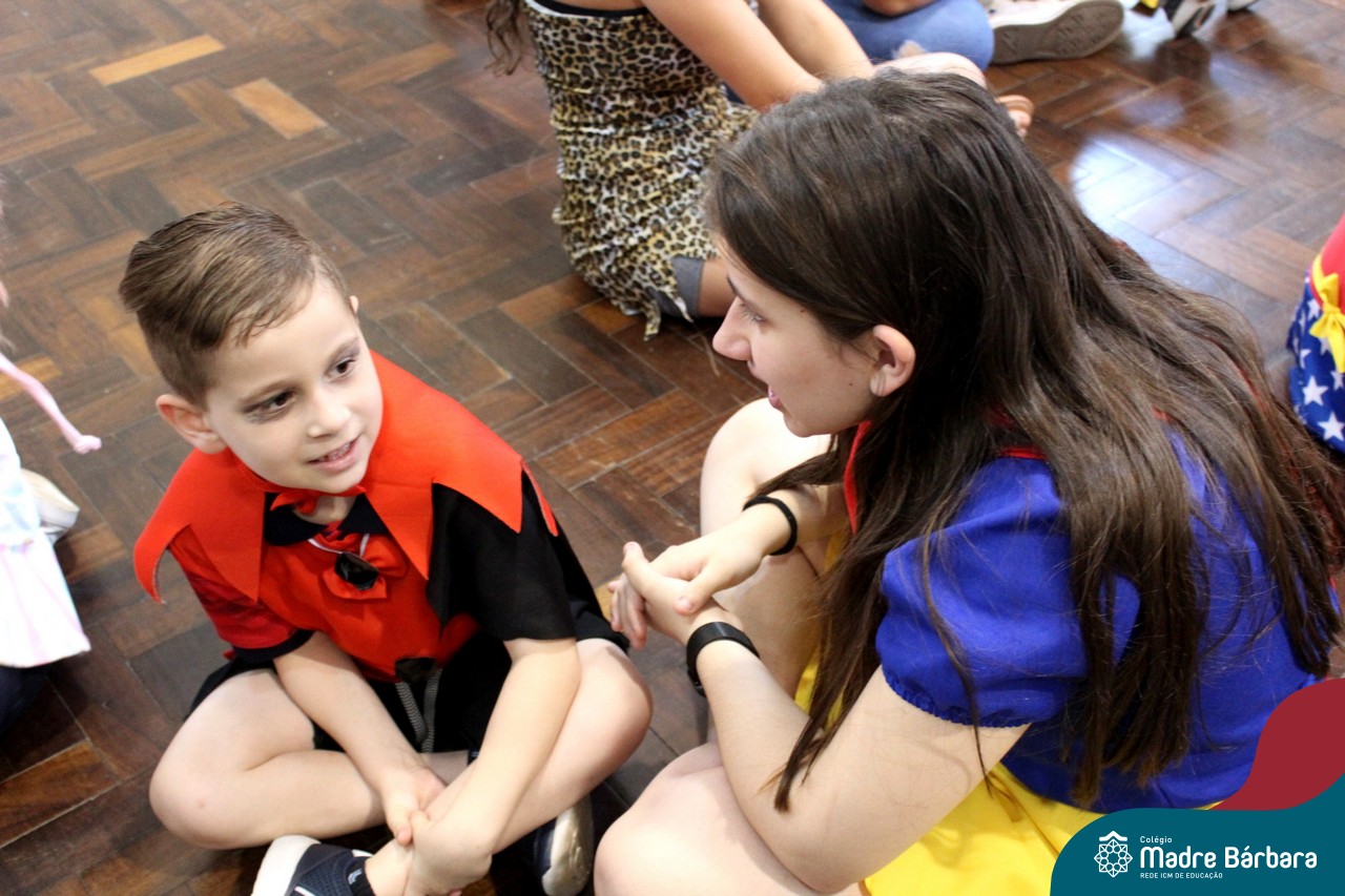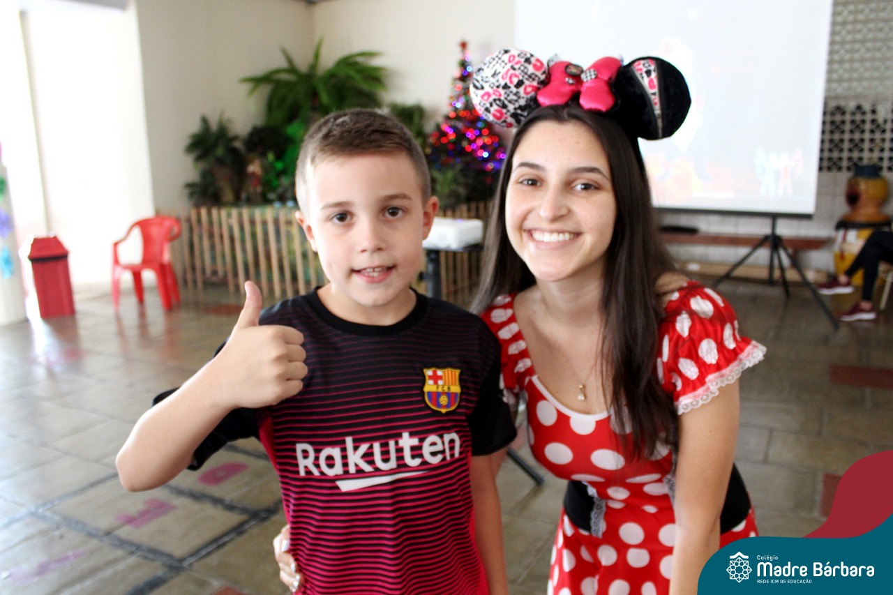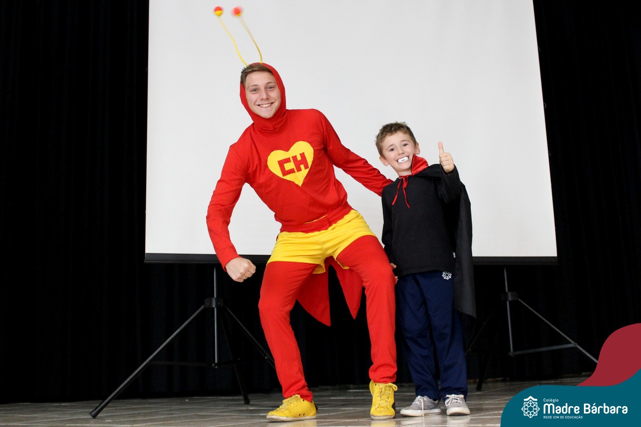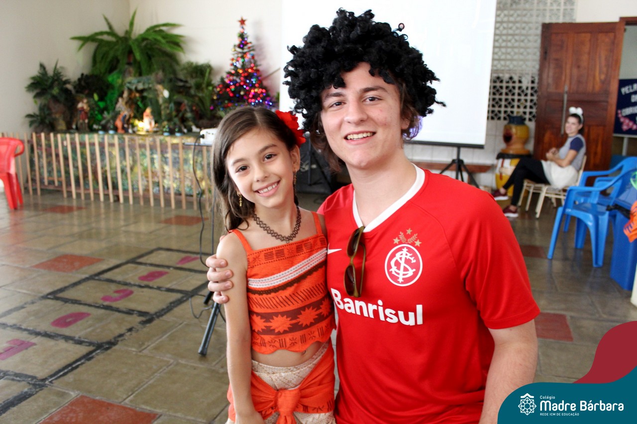 A despedida do Programa Laços Afetivos 2019 não poderia ser mais divertida! Os dindos do Terceirão e os afilhados do 1º ano do Ensino Fundamental – Anos Iniciais podiam ser aquilo que quisessem nessa segunda-feira (25.11). Foi realizada no turno da manhã e da tarde a Festa à Fantasia com desfile, muita música e dança para animar todos! As atividades do Laços Afetivos encerraram, mas ainda tem diversos dias antes do término das aulas para esmagar o afilhado e curtir muito o dindo. O Programa Laços Afetivos é realizado pelo Serviço de Orientação Educacional (SOE). Ano que vem tem mais!