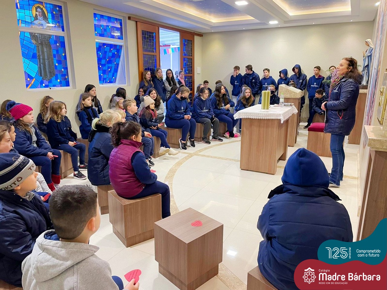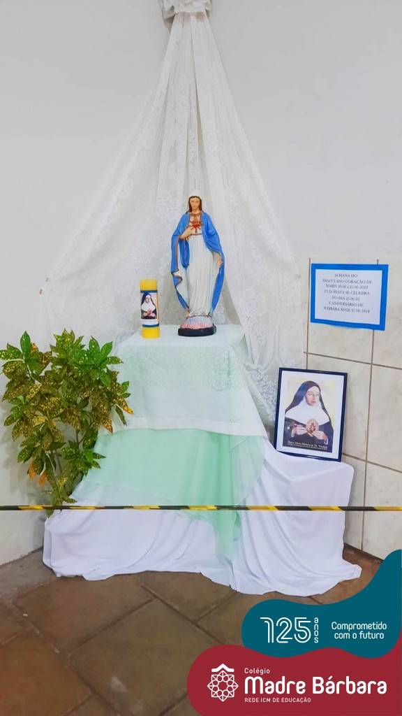 Nesta semana, todas as turmas do Colégio Madre Bárbara – Rede ICM estão convidadas a participar da Semana do Imaculado Coração de Maria e Aniversário de Bárbara Maix. A Pastoral Escolar organizou ambientes para que os estudantes possam participar de um momento significativo. Está sendo realizada uma caminhada passando pelos ambientes da Educação Infantil, área coberta e entrada do Ensino Fundamental – Anos Iniciais, além da capela para aqueles estudantes que quiserem realizar um momento de reflexão e oração.