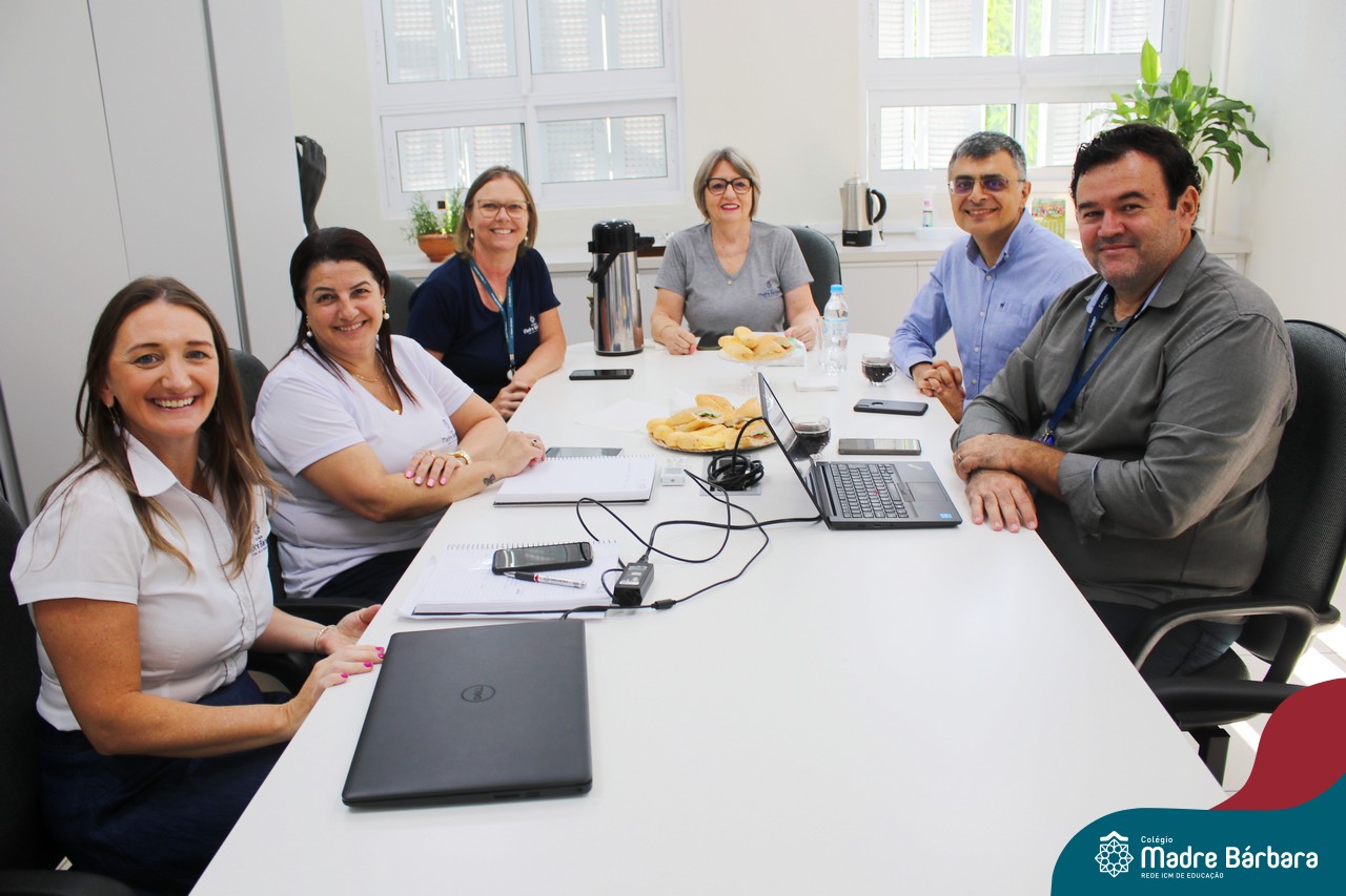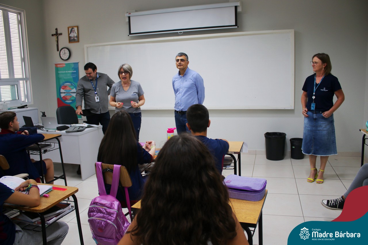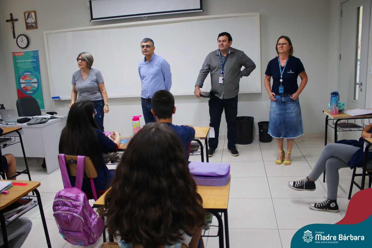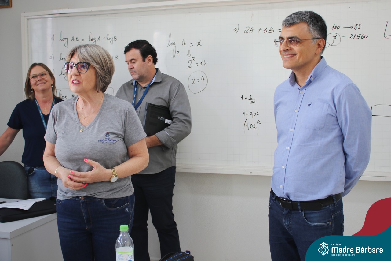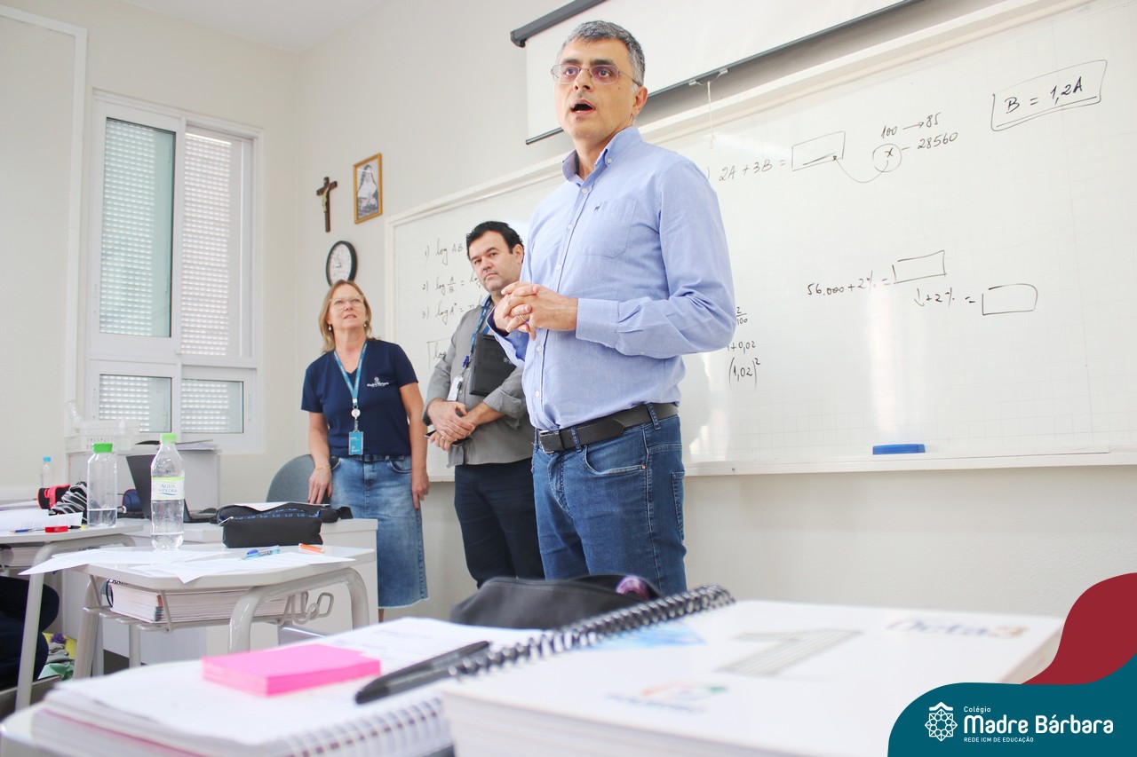 Na manhã desta terça-feira (28.03) o Colégio Madre Bárbara – Rede ICM recebeu a visita do Fundador/mantenedor das unidades Poliedro e Sistema de Ensino, Nicolau Sarkis e do coordenador pedagógico do Sistema de Ensino, Mateus Duarte. Acompanhados da diretora Maria Elena Jacques e da coordenadora pedagógica Justine Thomas, puderam conhecer a estrutura do Madre Bárbara e também algumas turmas para conversar com os estudantes sobre o Sistema, escutando os adolescentes sobre a visão que tem do Poliedro.