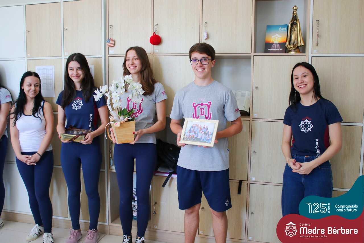 Na quinta-feira (15.12) o Grêmio Estudantil do Colégio Madre Bárbara – Rede ICM (Gembar) prestou uma homenagem para a coordenadora do grupo, Caroline Heberle, conhecida como Carola. A professora, que coordenou o grupo por sete gestões, estará se despedindo do Madre Bárbara neste fim de ano, mas promete seguir auxiliando o Gembar em 2023, de forma voluntária.