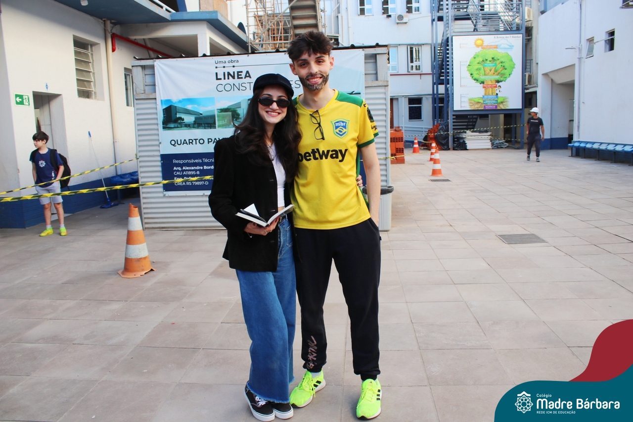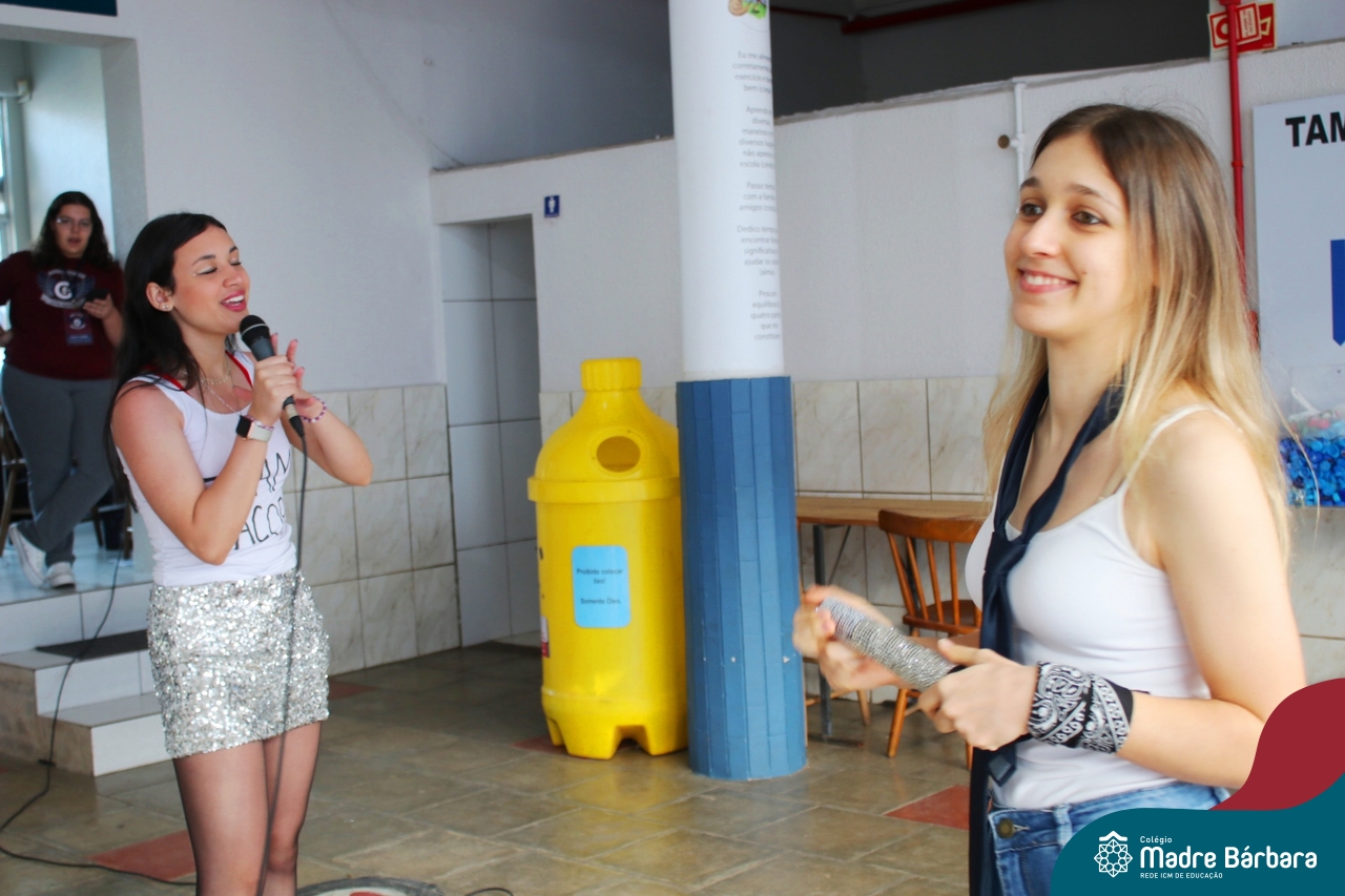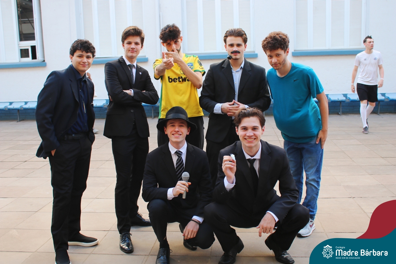 O Grêmio Estudantil do Madre Bárbara (Gembar) realizou o Trote Solidário para o Terceirão 2024 com a temática “Celebridades”. Os estudantes se vestiram dos famosos que admiram e puderam desfilar interpretando os ídolos. O Trote também contou com um Karaokê das Estrelas, para aqueles que se animavam a cantar no microfone suas músicas preferidas. Foi demais! Valeu Terceirão! E parabéns Gembar pela iniciativa.