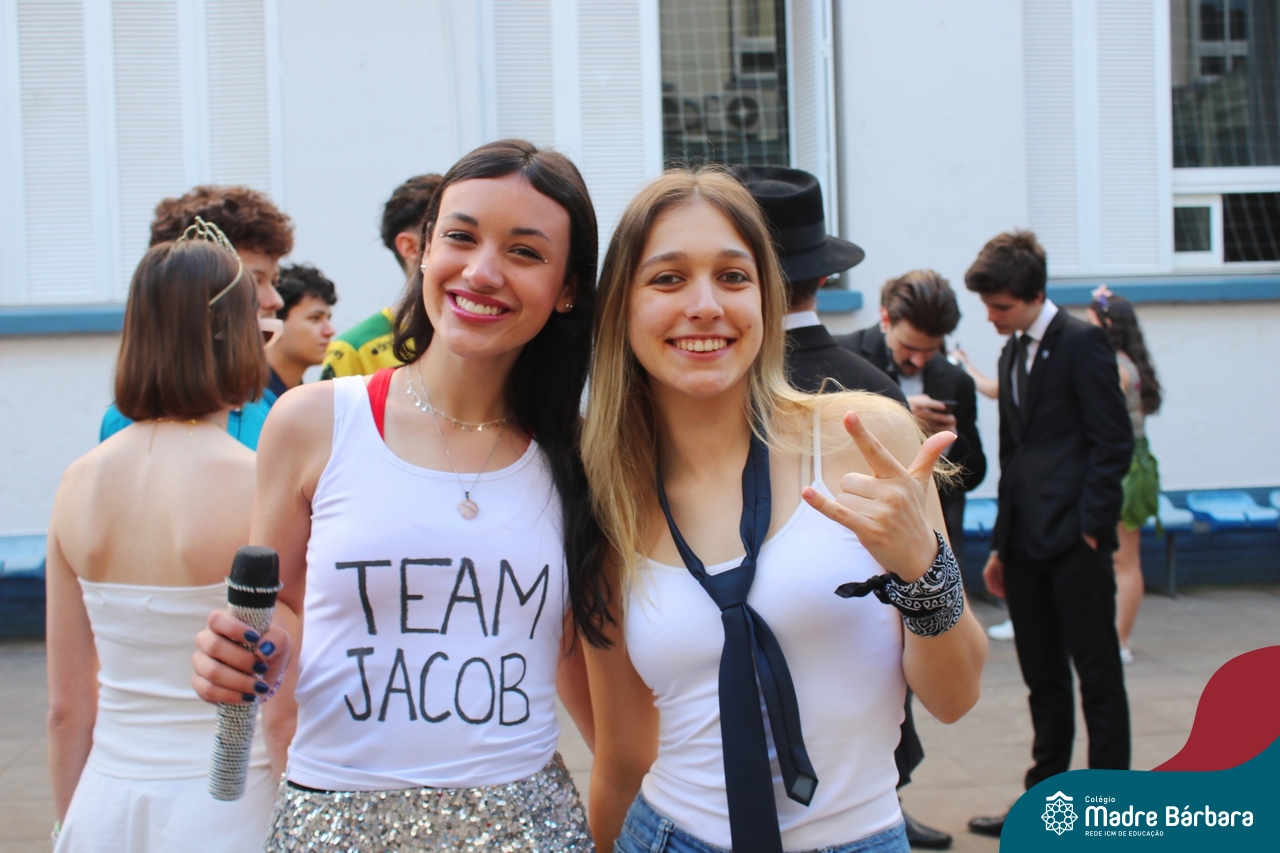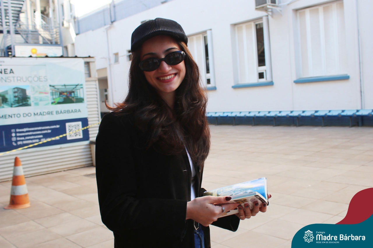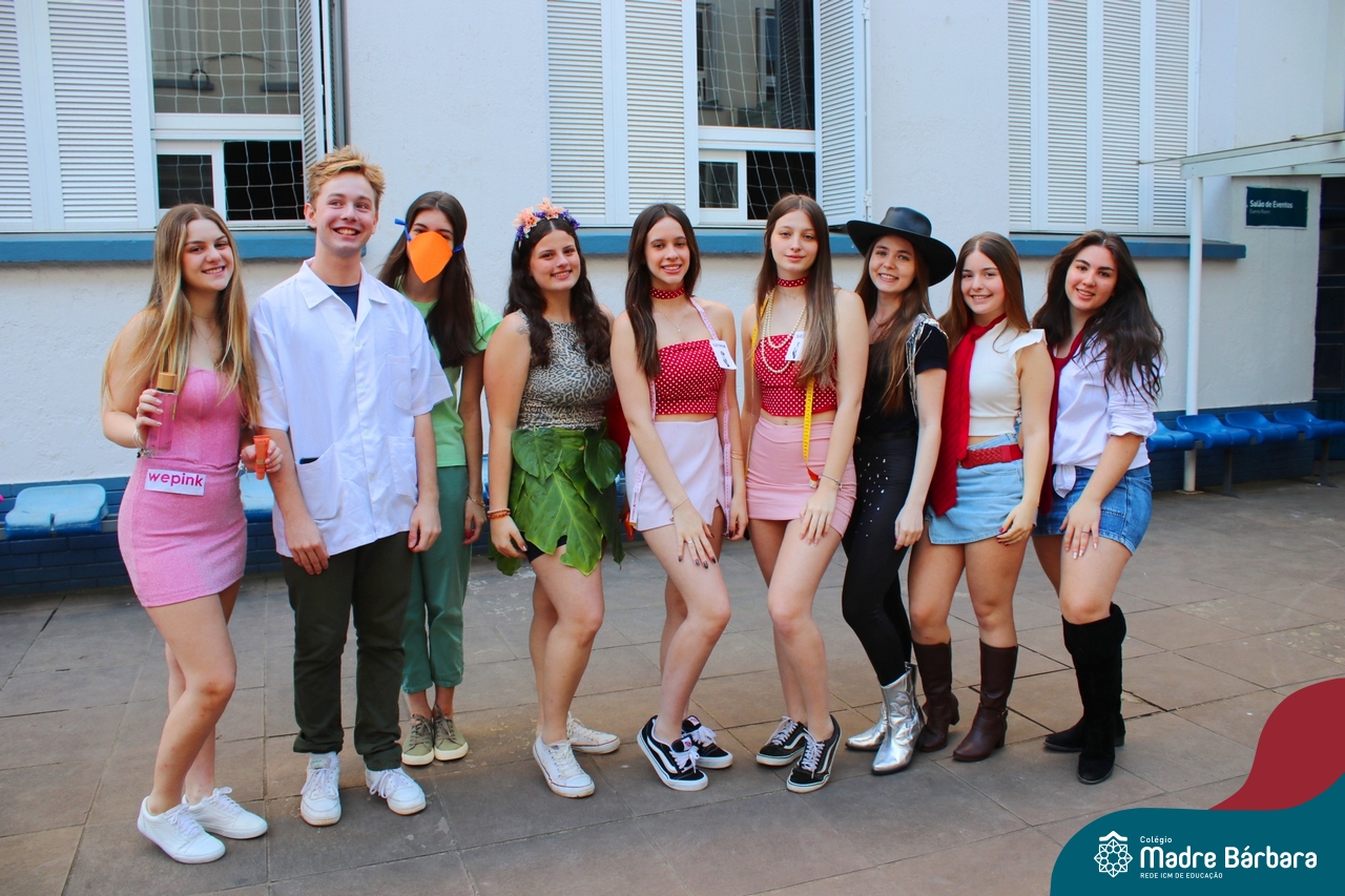 O Grêmio Estudantil do Madre Bárbara (Gembar) realizou o Trote Solidário para o Terceirão 2024 com a temática “Celebridades”. Os estudantes se vestiram dos famosos que admiram e puderam desfilar interpretando os ídolos. O Trote também contou com um Karaokê das Estrelas, para aqueles que se animavam a cantar no microfone suas músicas preferidas. Foi demais! Valeu Terceirão! E parabéns Gembar pela iniciativa.