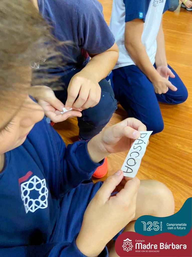As turmas 31, 32 e 34 estão vivenciando um período significativo, que inspira reflexão e para as crianças, alegria e comemoração! As professoras surpreenderam os alunos nesta terça-feira (12.04) com uma Gincana Pascal Pedagógica. Foram realizadas atividades pedagógicas para a retomada de conteúdos, bem como, lúdicas, alusivas à Páscoa. A atividade divertiu e marcou a Semana Santa, os alunos puderam exercitar o corpo, a mente e recordar o verdadeiro sentido da Páscoa!