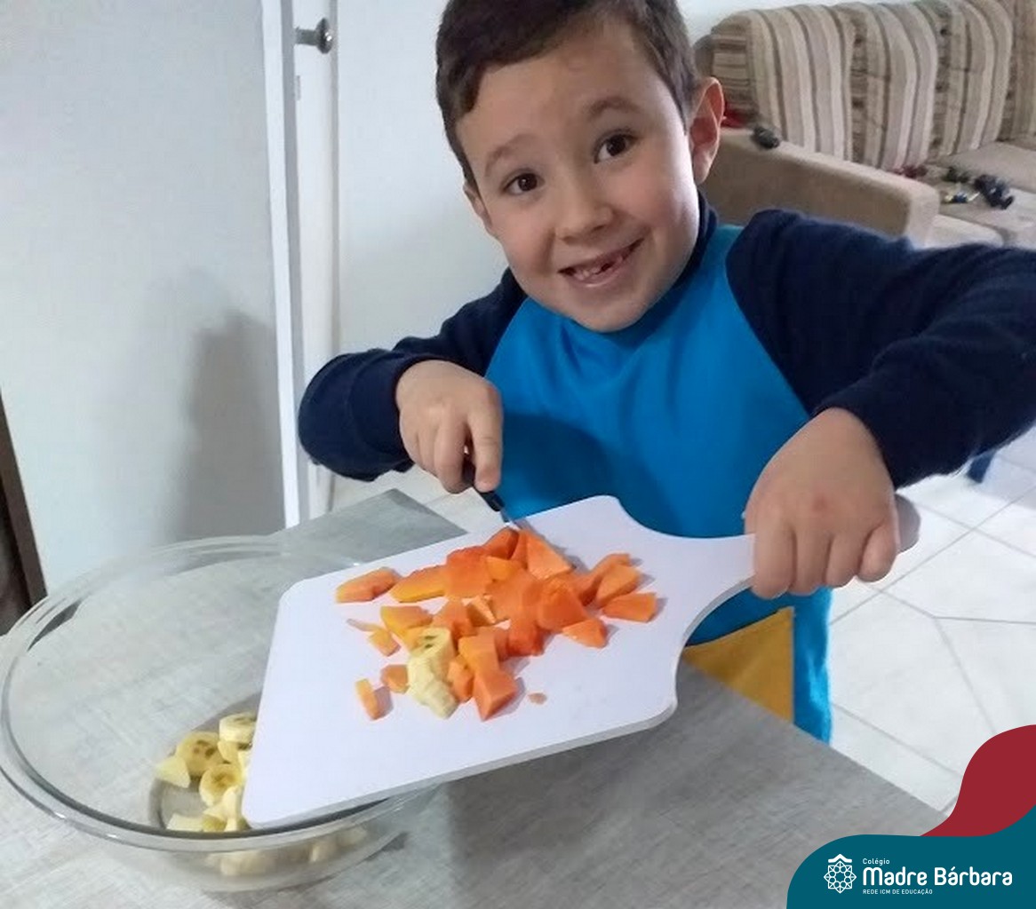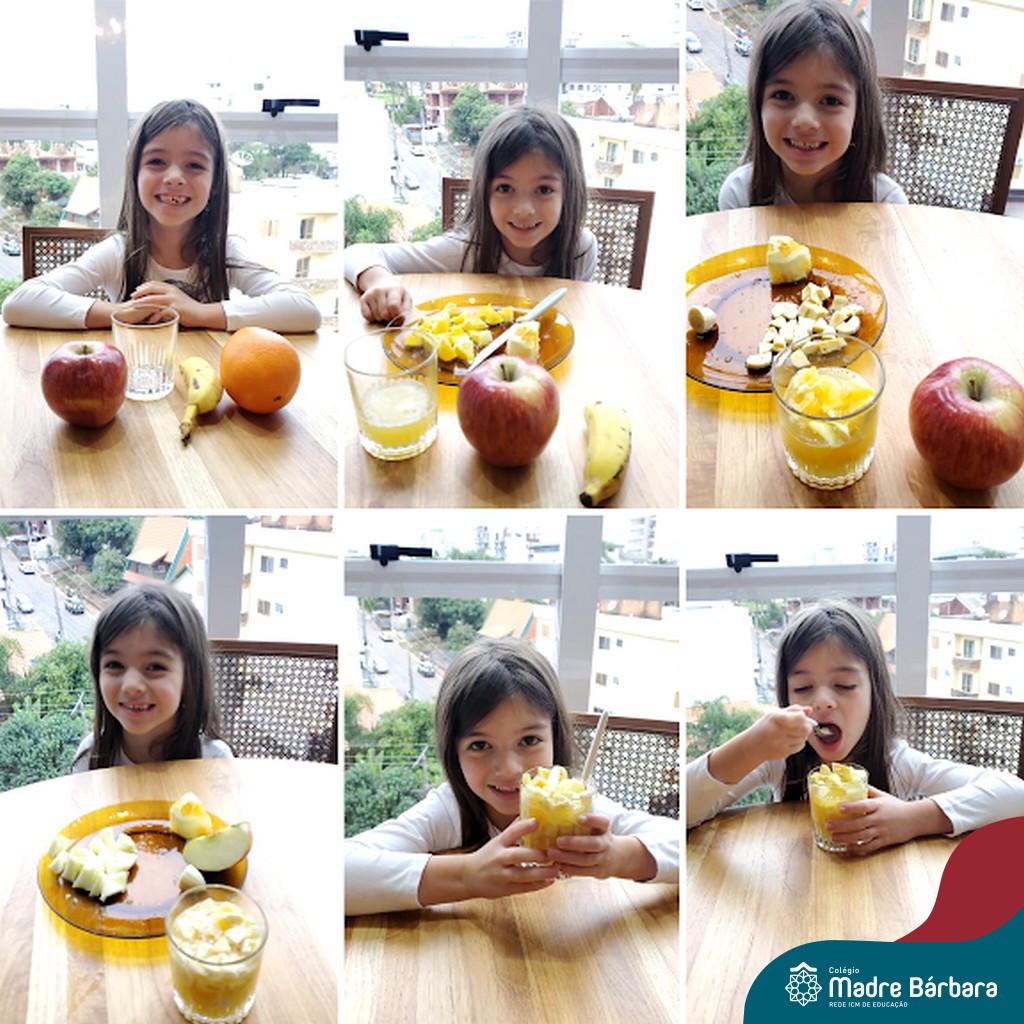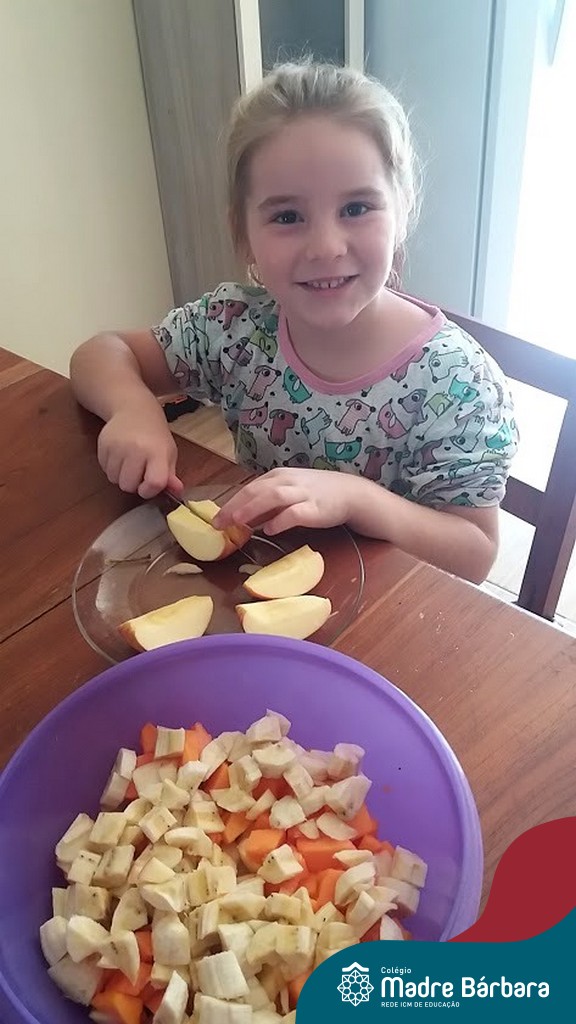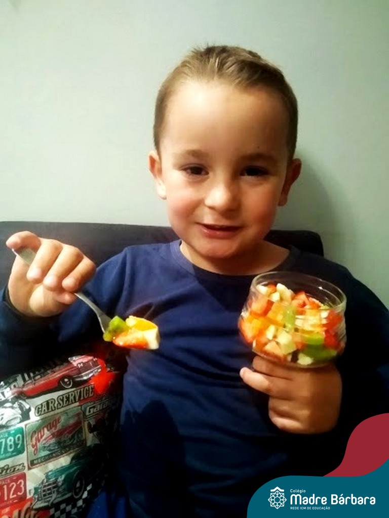 Para finalizar as atividades, relacionadas aos hábitos saudáveis de alimentação, as crianças foram para a cozinha desenvolver receitas com alimentos saudáveis para serem saboreados e compartilhado entre os colegas, incentivando uns aos outros e mostrando que existem inúmeras receitas saudáveis e deliciosas.