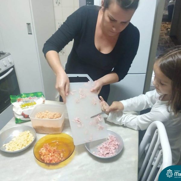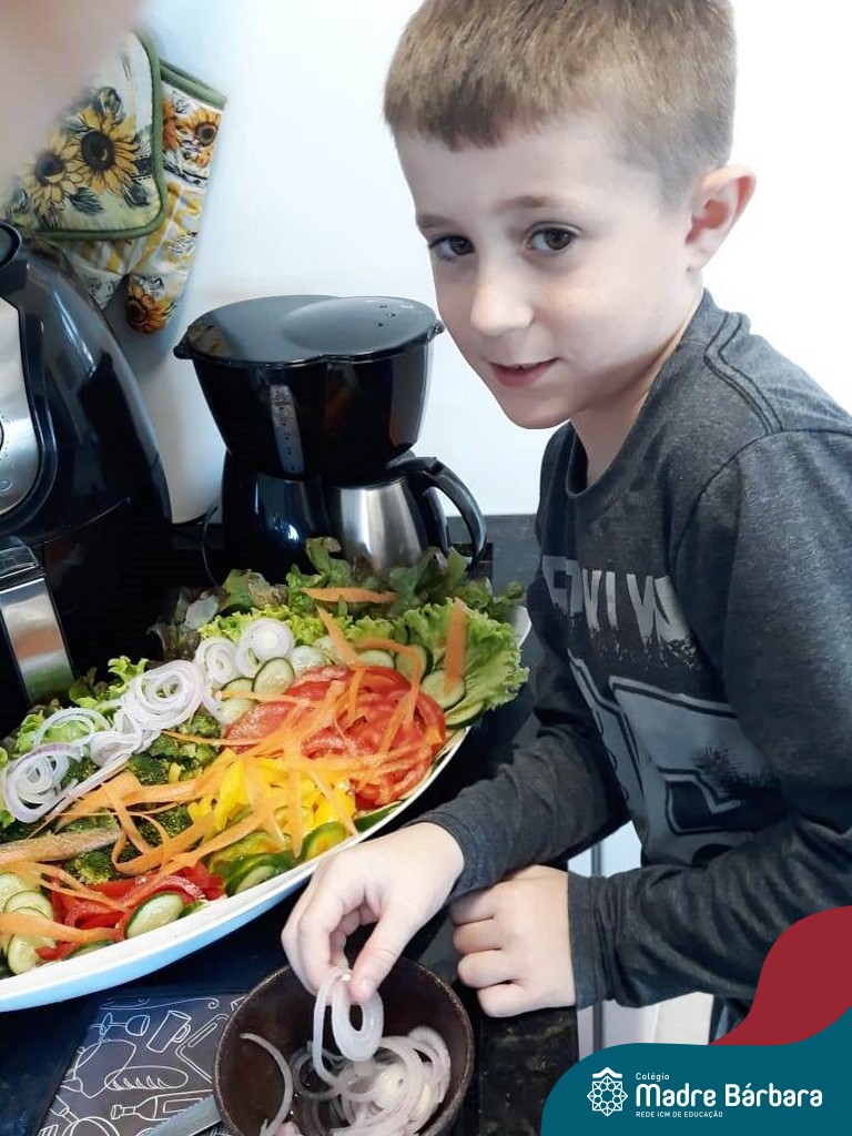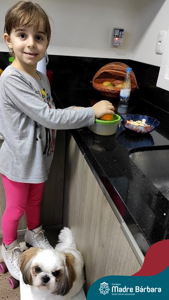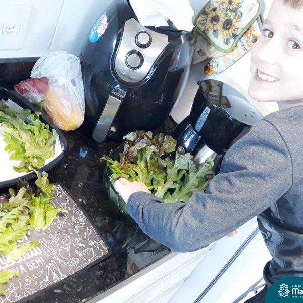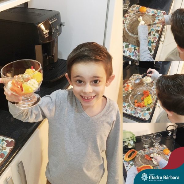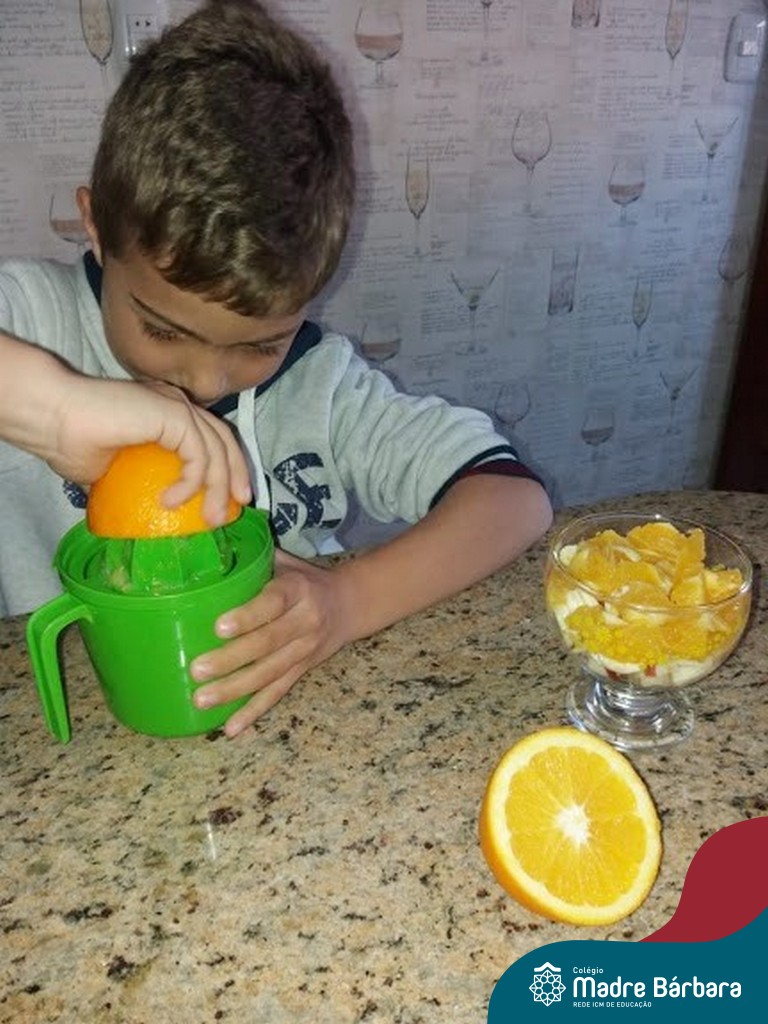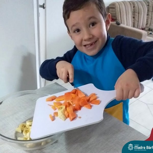 Para finalizar as atividades, relacionadas aos hábitos saudáveis de alimentação, as crianças foram para a cozinha desenvolver receitas com alimentos saudáveis para serem saboreados e compartilhado entre os colegas, incentivando uns aos outros e mostrando que existem inúmeras receitas saudáveis e deliciosas.