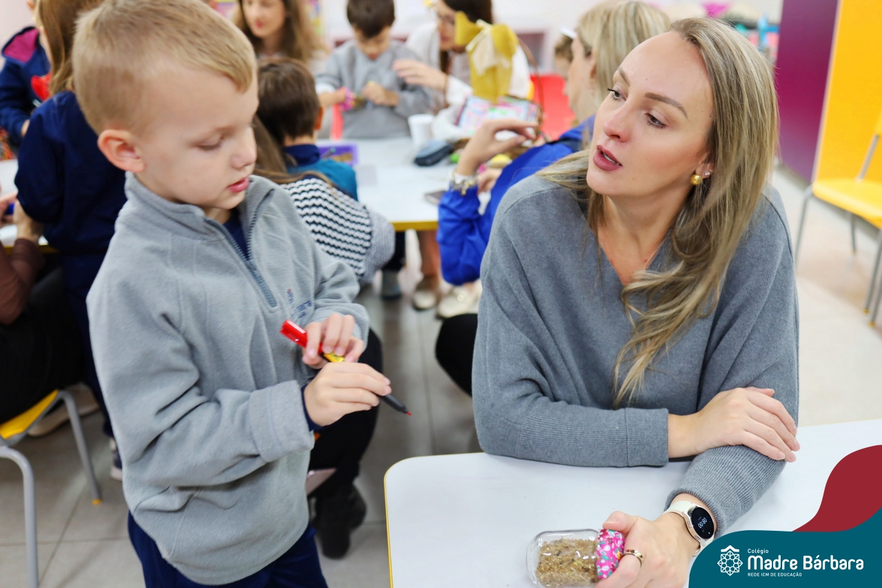 O Dia das Mães é uma data muito especial. É momento de celebrar com aquelas que são brincalhonas, amigas, cuidadosas, protetoras e muito carinhosas. Nossa semana iniciou com homenagem para as mamães da Educação Infantil. A programação dividida entre segunda (12.05) e terça-feira (13.05) contou com muito afeto e criatividade por parte das professoras, que não mediram esforços para tornar aquele momento de união em algo único e marcante. As mamães e crianças puderam juntinhas curtirem e realizarem uma atividade, confeccionando lembranças, cada turma do seu jeito. Agradecemos a presença e a parceria constante das mamães e famílias. Esperamos que tenha sido um momento especial, que fique guardado com muito carinho nas lembranças de vocês!