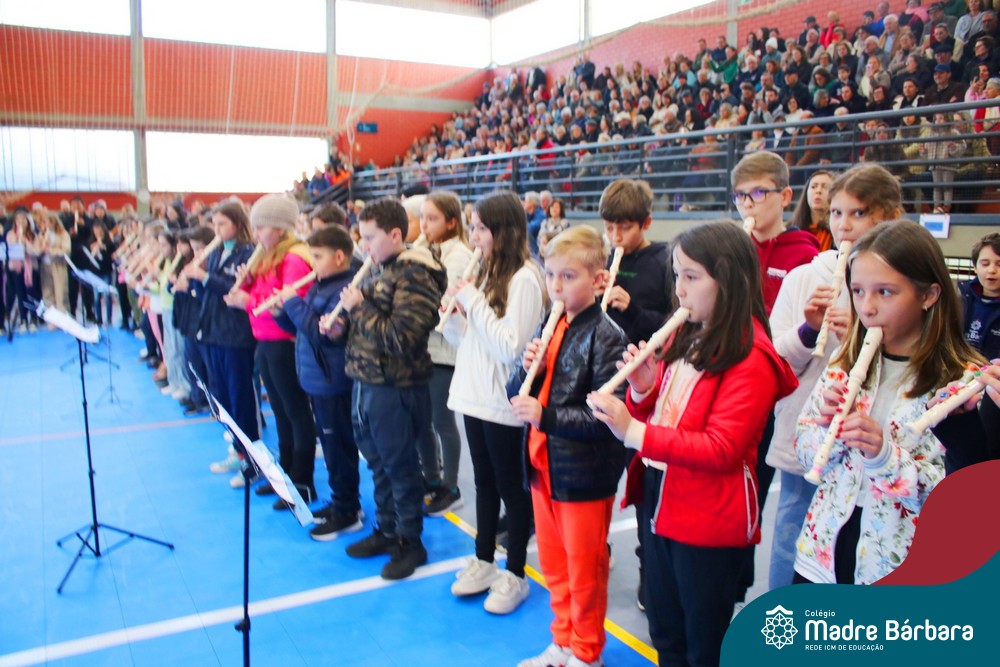No sábado (06.07) as crianças do Ensino Fundamental – Anos Iniciais organizaram uma linda homenagem para o Dia dos Avós, celebrado em 26 de julho. O momento foi preparado pelos estudantes, professoras e a professora de música Taina Dullius. Na abertura do evento, o Serviço de Pastoral Escolar, representado pelo professor David Orling e professora Carla Markus estiveram fazendo um momento de reflexão e oração, e, após, os estudantes iniciaram cantando músicas. Os 4ºs e 5ºs anos tocaram também flauta. Foi um momento muito especial para homenagear esses grandes seres humanos que são tão importantes e essenciais na vida dos netos e famílias! Feliz Dia, vovôs e vovós, que Deus e Bárbara Maix estejam sempre abençoando vocês. É sempre um prazer recebê-los em nossa escola!