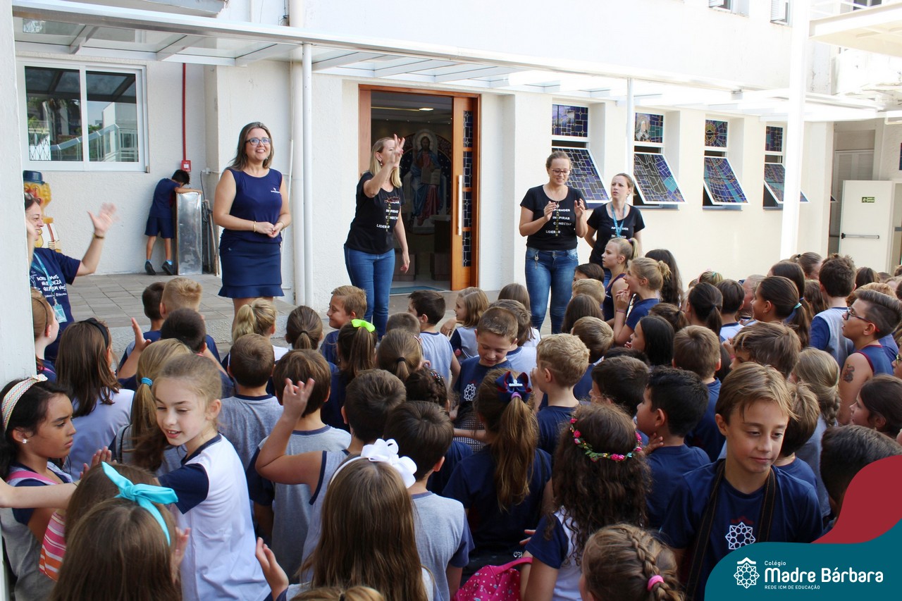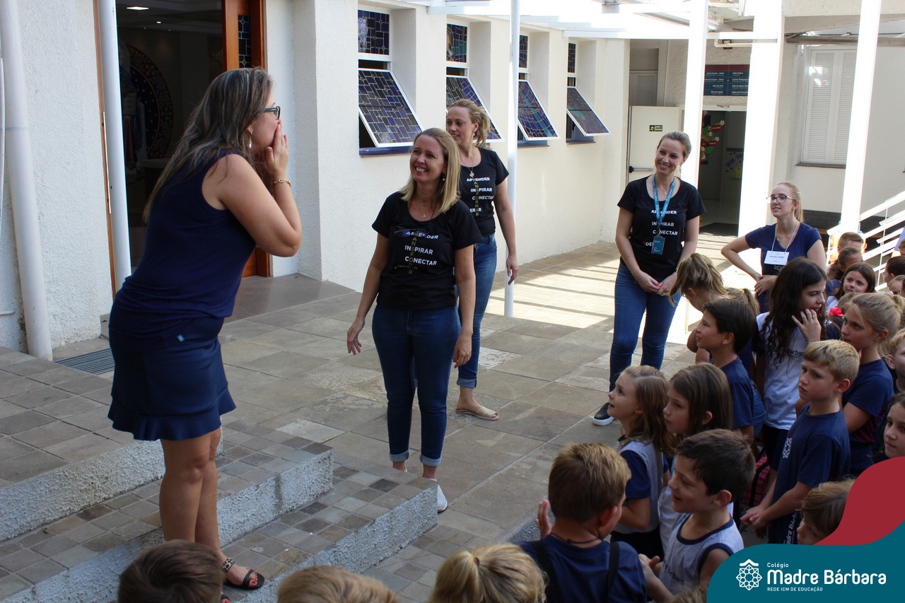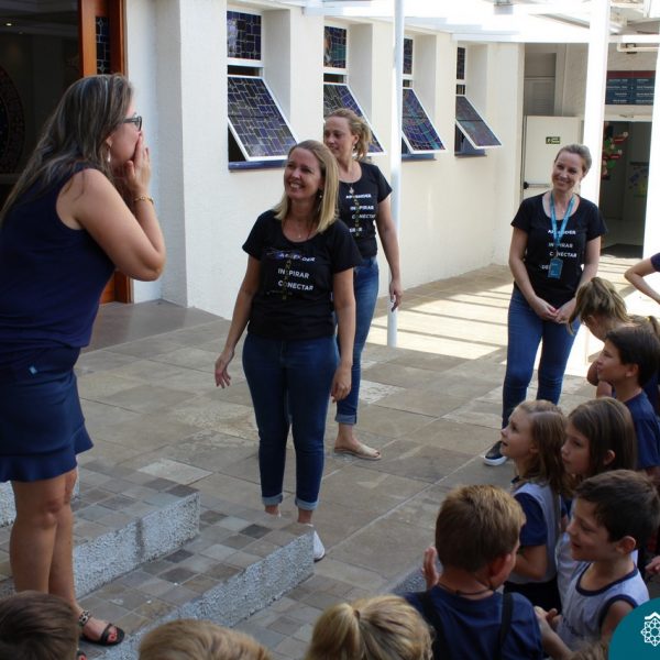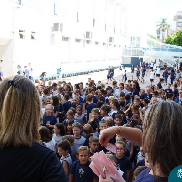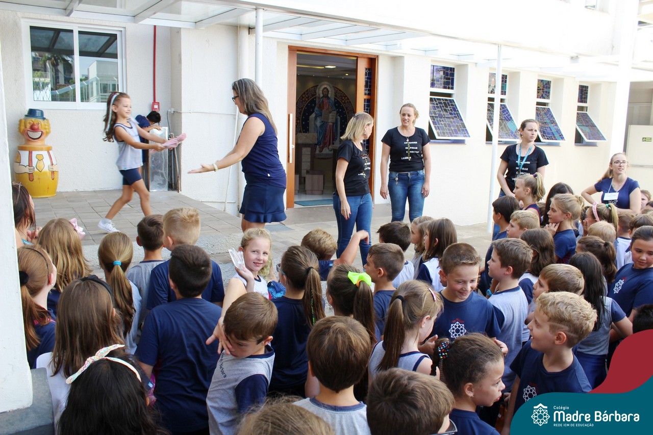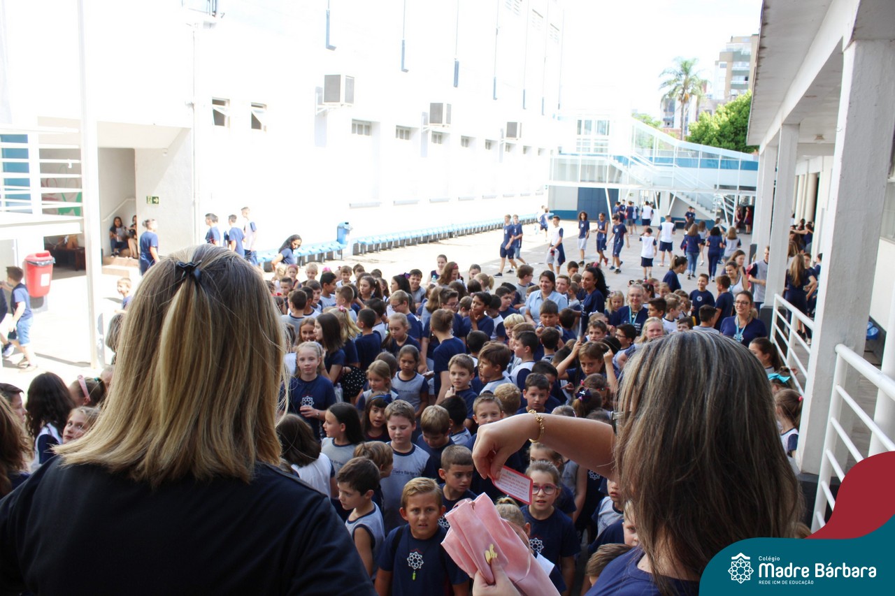 Além de ser o Início do Ano Letivo de 2020, o 17 de fevereiro contou com outra celebração. Era dia do aniversário da coordenadora pedagógica Simone Elisa Faleiro. Os alunos e professores a homenagearam no pátio do Colégio Madre Bárbara – Rede ICM com um parabéns especial e belos cartões.