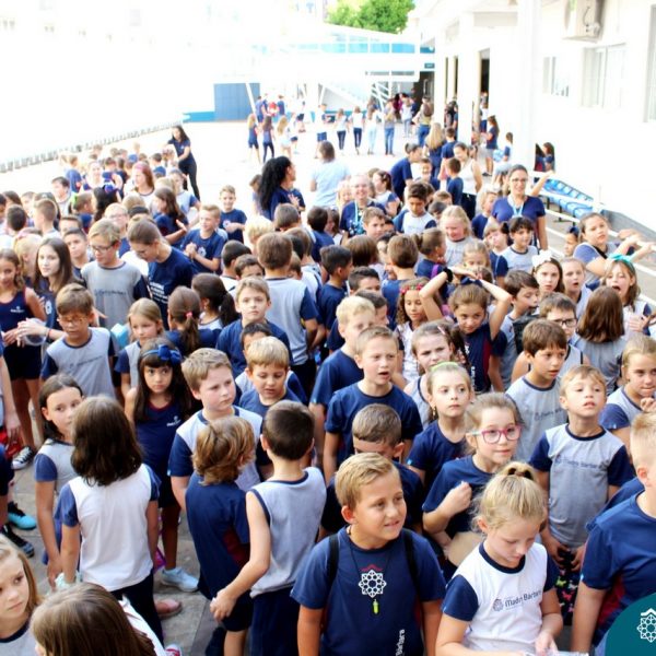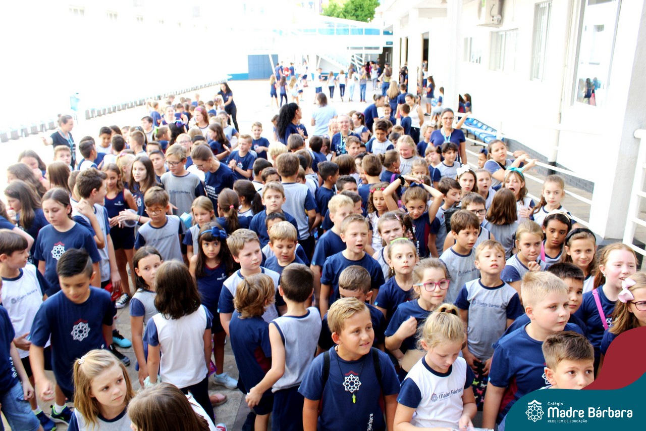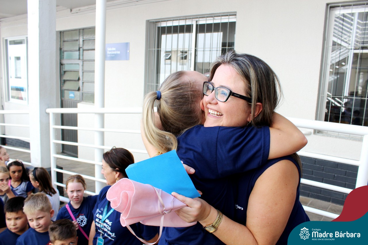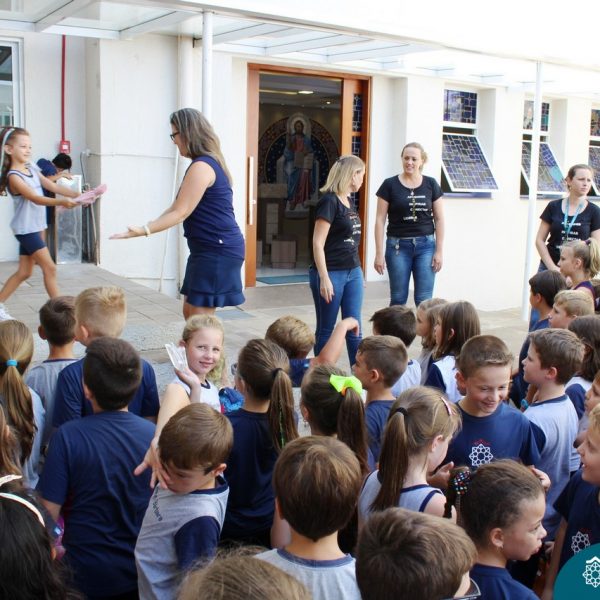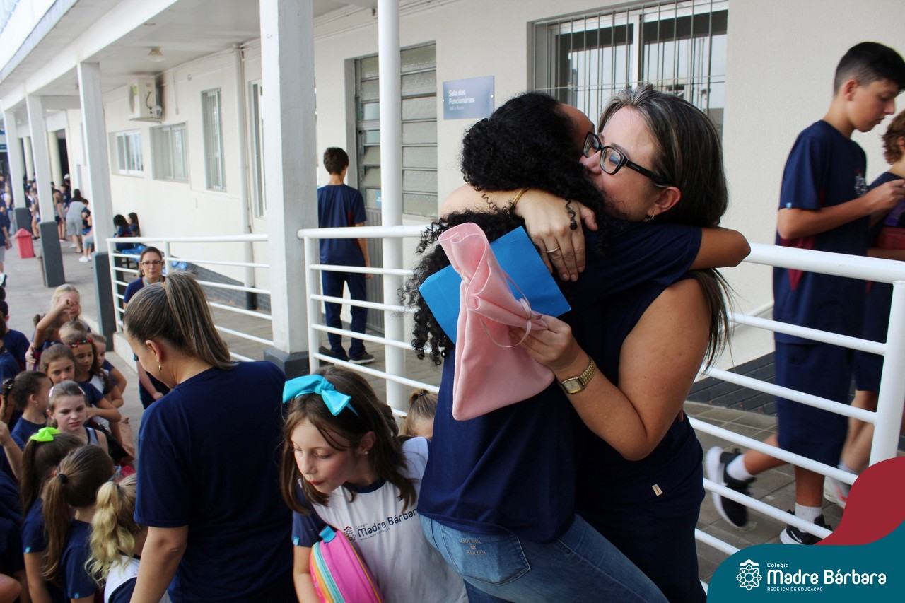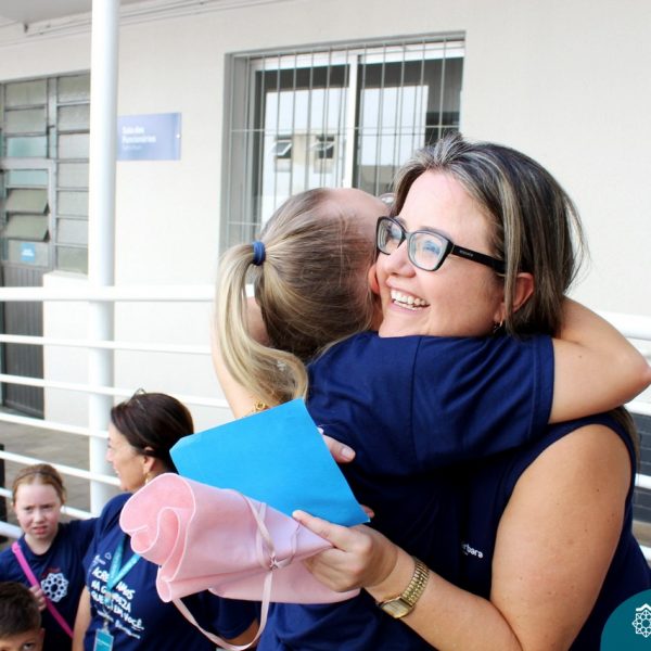 Além de ser o Início do Ano Letivo de 2020, o 17 de fevereiro contou com outra celebração. Era dia do aniversário da coordenadora pedagógica Simone Elisa Faleiro. Os alunos e professores a homenagearam no pátio do Colégio Madre Bárbara – Rede ICM com um parabéns especial e belos cartões.