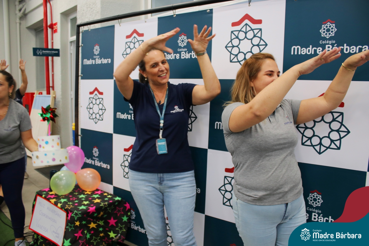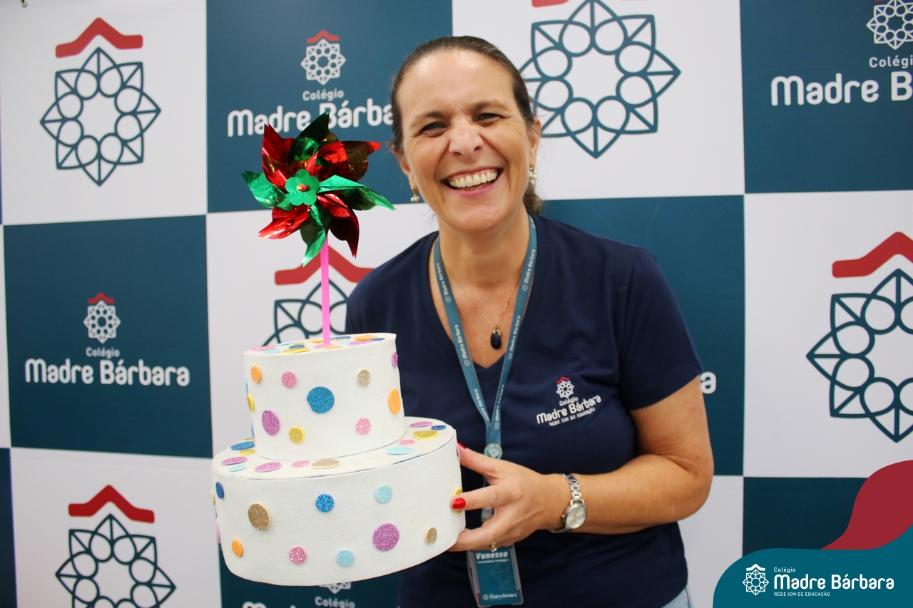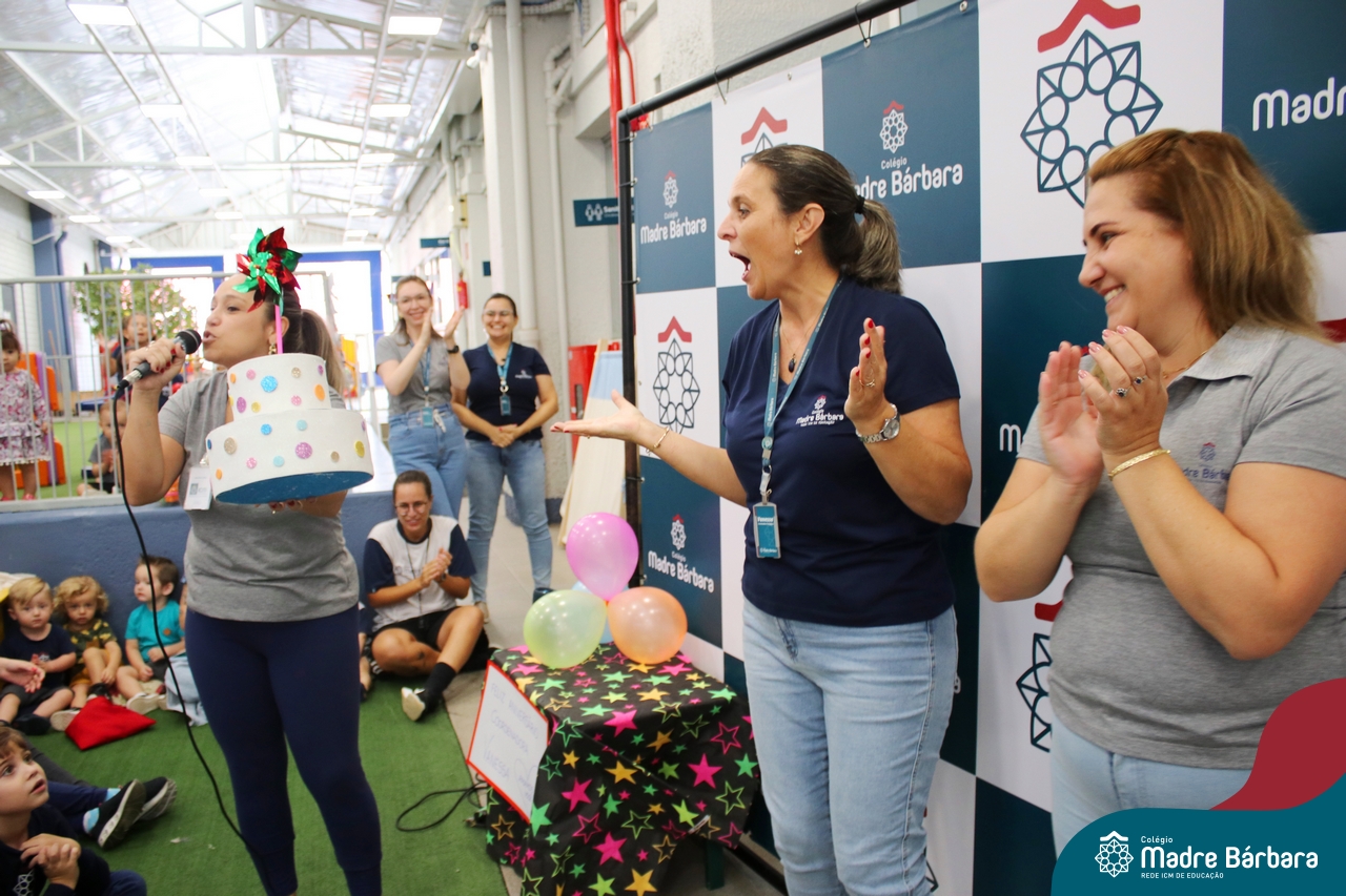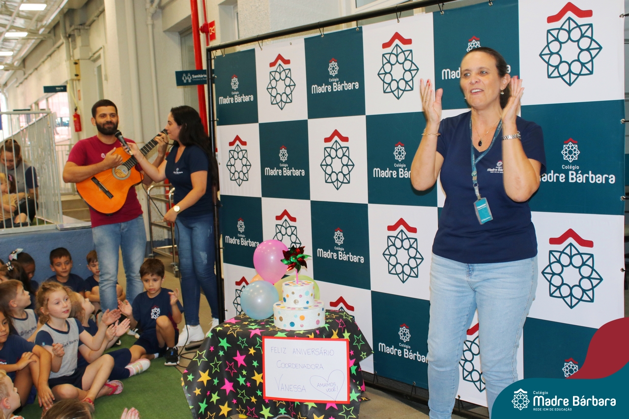 Hoje foi dia de festa na Educação Infantil. Nesta terça-feira, dia 5 de março, a Coordenadora Pedagógica, Vanessa Ely, comemorou seu aniversário com as crianças da Educação Infantil. Todos reunidos para as surpresas, tanto no turno da manhã quando da tarde, para um parabéns especial e entrega de mimos personalizados, cheios de carinho e amor. No turno da manhã, a professora Marta Lorde esteve junto recebendo parabéns e o carinho das crianças, pois também comemora seu aniversário neste dia! Feliz aniversário, que Bárbara Maix e Deus abençoe sempre a vida de vocês com muita saúde! Sigam amando o que fazem em nosso Colégio Madre Bárbara!