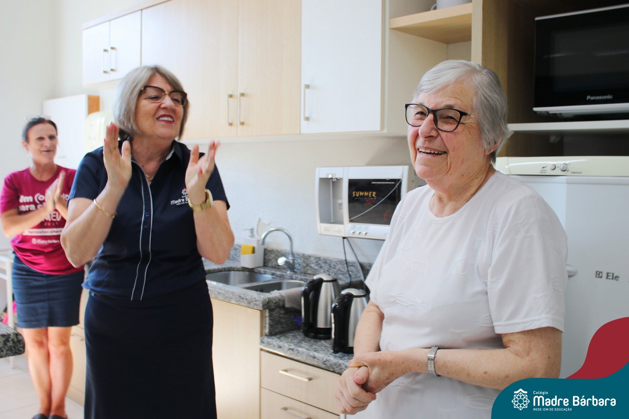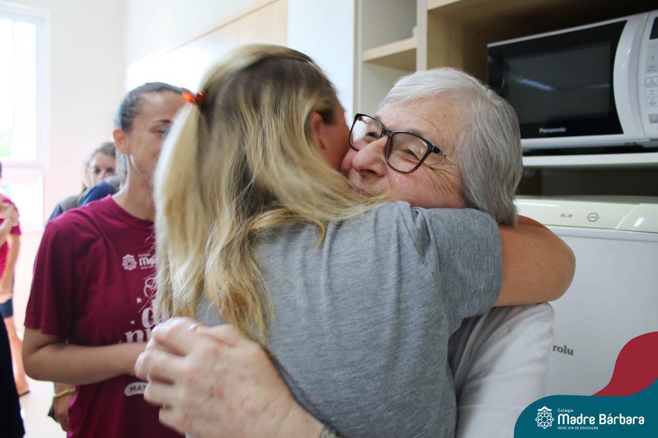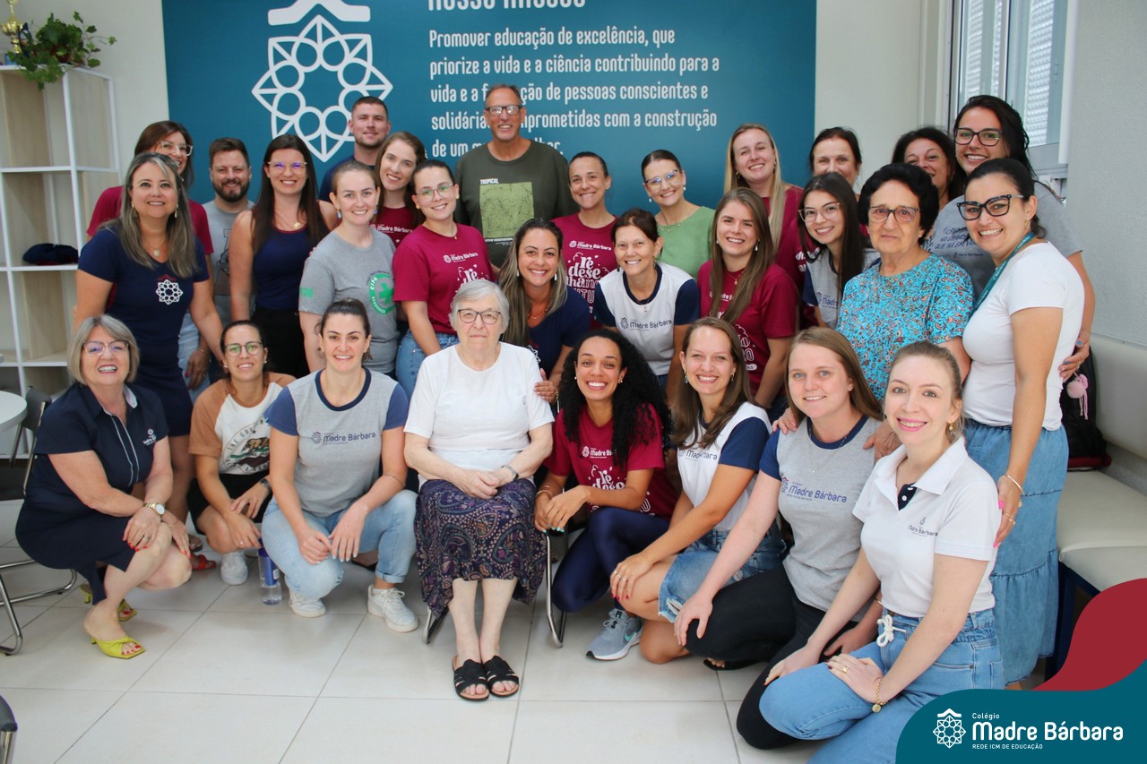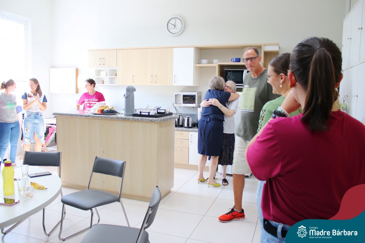Na manhã desta terça-feira (07.02) a Irmã Lorena Rachele foi homenageada pela equipe diretiva e professores, que cantaram parabéns pela passagem do aniversário, assim como a abraçaram e desejaram palavras de carinho. Parabéns, Irmã Lorena! Que Deus e Bárbara Maix sempre estejam com a senhora, lhe dando muita saúde.