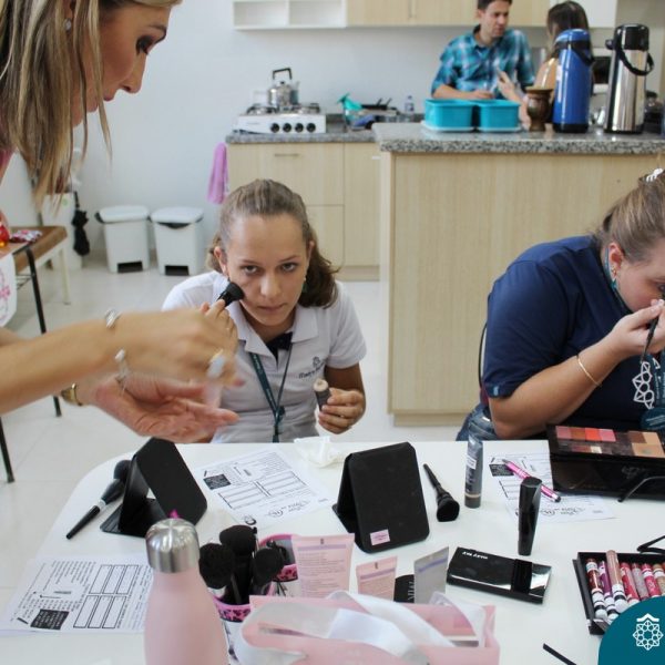 Nesta segunda-feira (09) a Associação dos Professores e Funcionários (APF) homenageou as colaboradoras pelo Dia Internacional da Mulher, comemorado ontem. Em seus intervalos, puderam fazer uma sessão de limpeza de pele e maquiagem, valorizando o cuidado e a autoestima. A ação foi desenvolvida para as associadas.