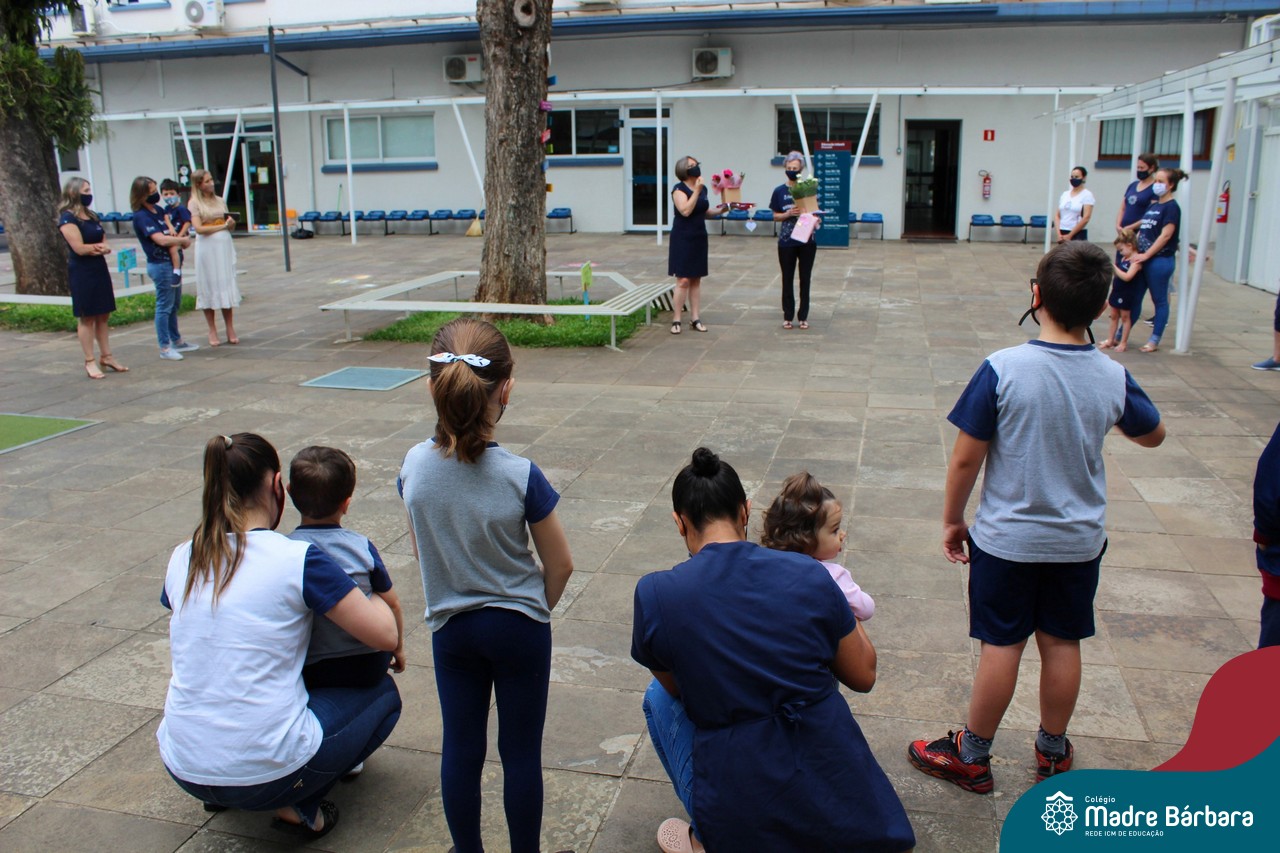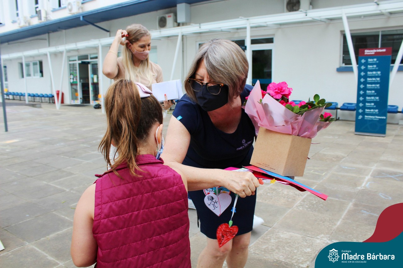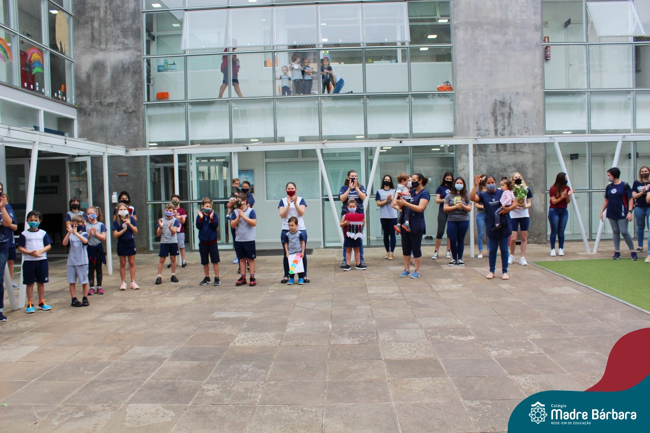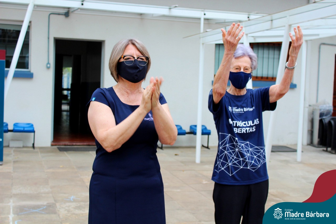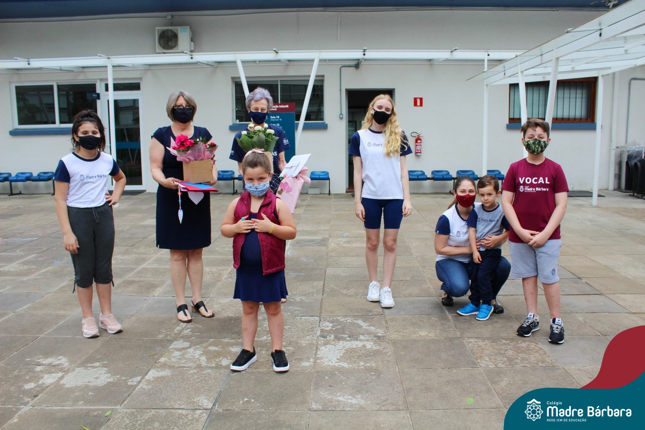 Nesta quinta-feira (12) representantes de alunos, pais, professores, funcionários e equipe diretiva estiveram homenageando a diretora Maria Elena Jacques e a vice-diretora Irmã Anita Dal Piva pelo Dia do Diretor. A ação ocorreu no pátio da educação infantil, de forma reduzida devido a pandemia e também com todos os protocolos de segurança. Parabéns diretora e vice-diretora! Obrigada por servirem ao Colégio Madre Bárbara – Rede ICM com tanto amor e dedicação.