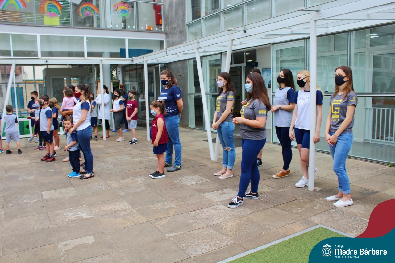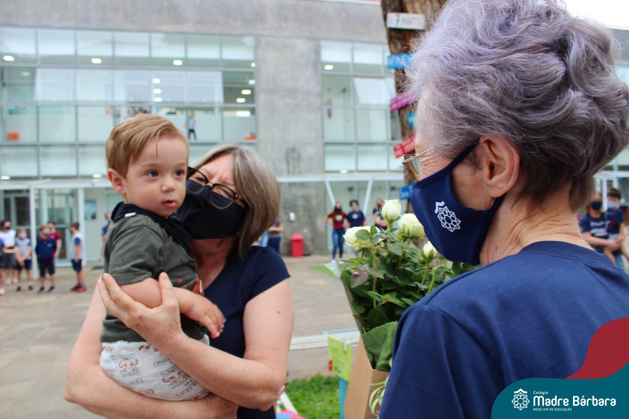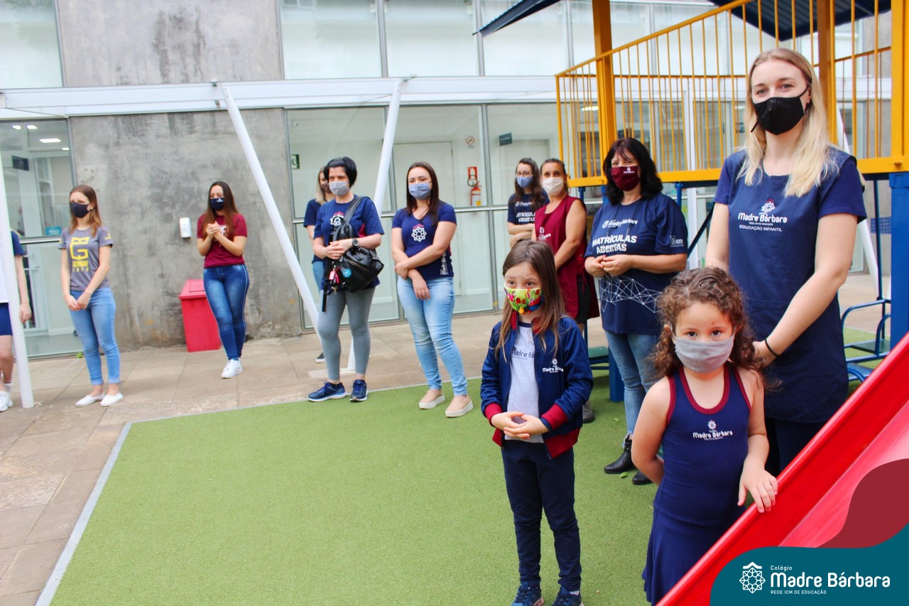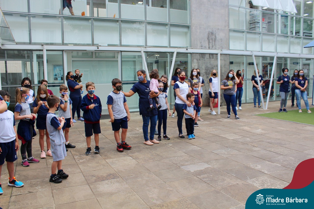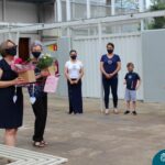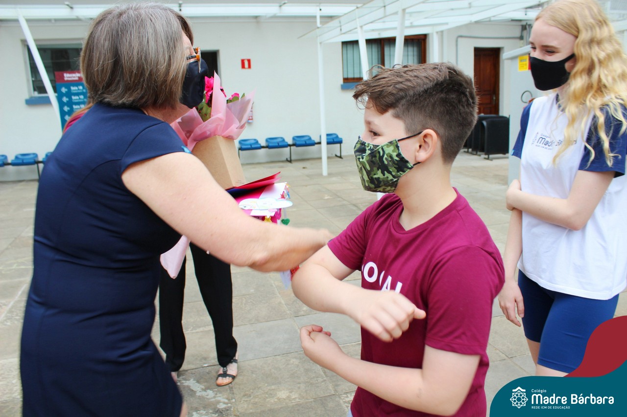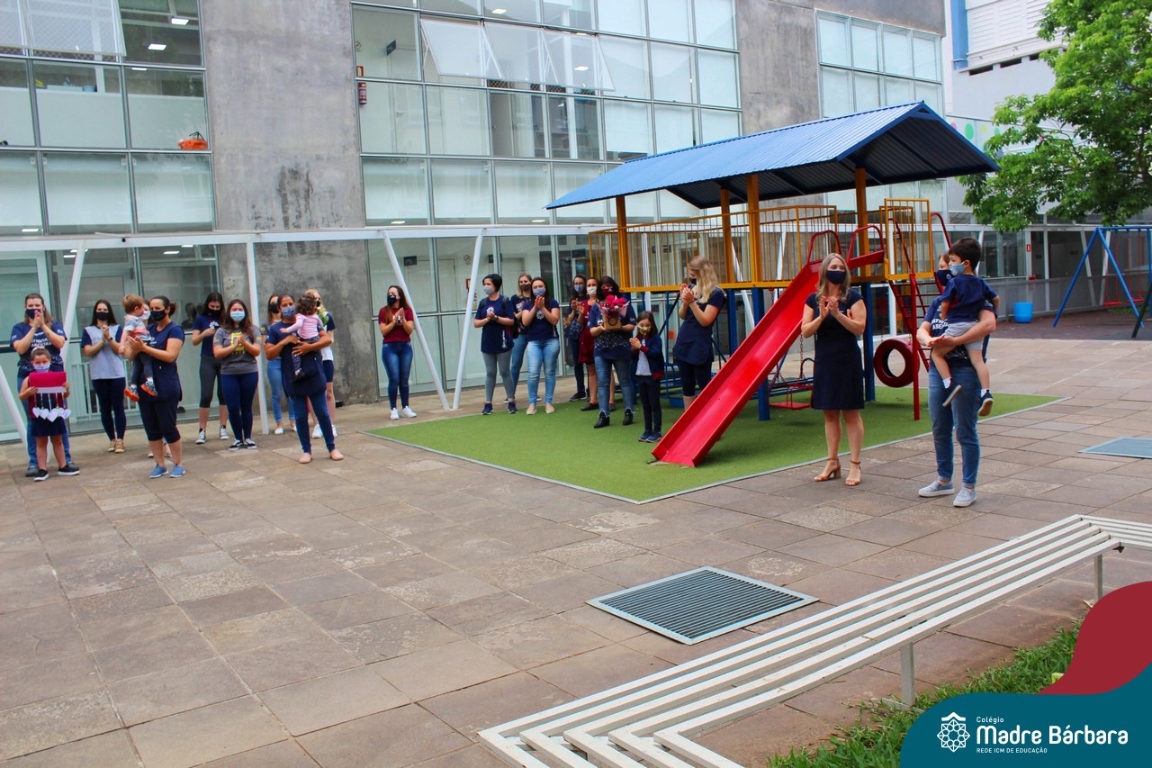 Nesta quinta-feira (12) representantes de alunos, pais, professores, funcionários e equipe diretiva estiveram homenageando a diretora Maria Elena Jacques e a vice-diretora Irmã Anita Dal Piva pelo Dia do Diretor. A ação ocorreu no pátio da educação infantil, de forma reduzida devido a pandemia e também com todos os protocolos de segurança. Parabéns diretora e vice-diretora! Obrigada por servirem ao Colégio Madre Bárbara – Rede ICM com tanto amor e dedicação.