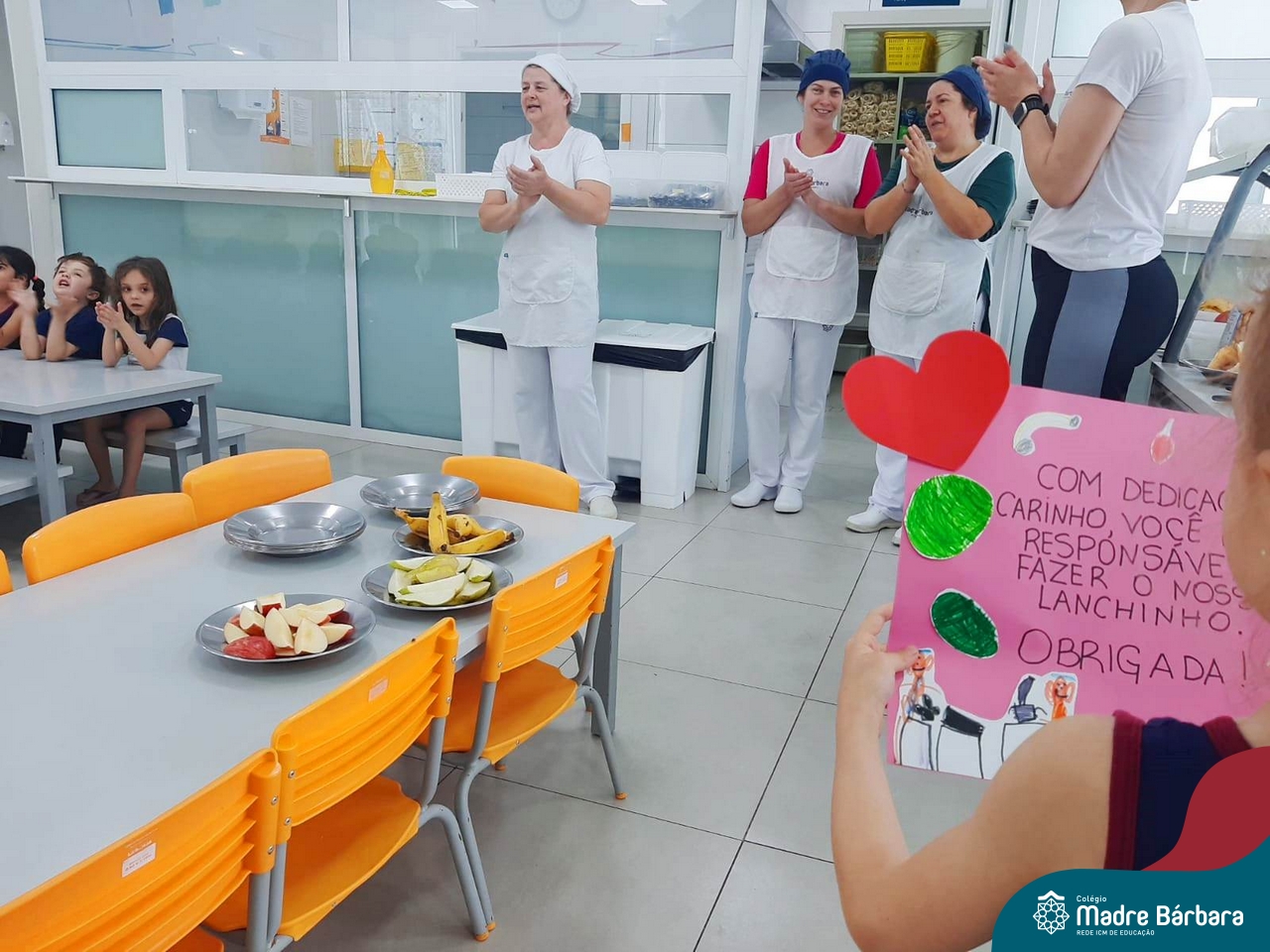 Neste dia 30 de outubro é celebrado o Dia da Merendeira e foram realizadas diversas homenagens para nossas amadas “tias da cozinha”, tanto no refeitório da Educação Infantil, quanto no Turno Extracurricular. Agradecemos por acrescentarem no tempero diário de vocês, muito carinho na hora do preparo dos almoços, lanches e jantas das nossas crianças. Elas simplesmente amam essas tias e nossa comunidade escolar também! Nosso muito obrigada por tudo!